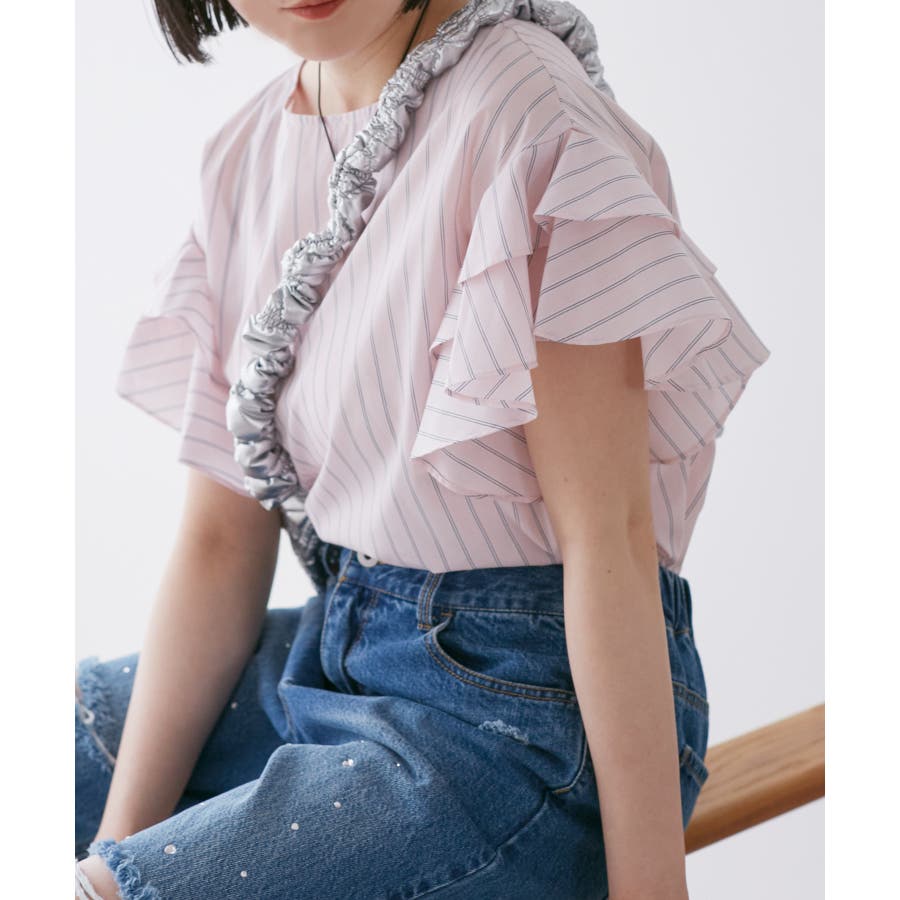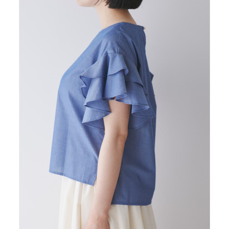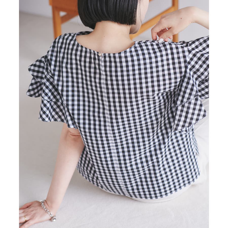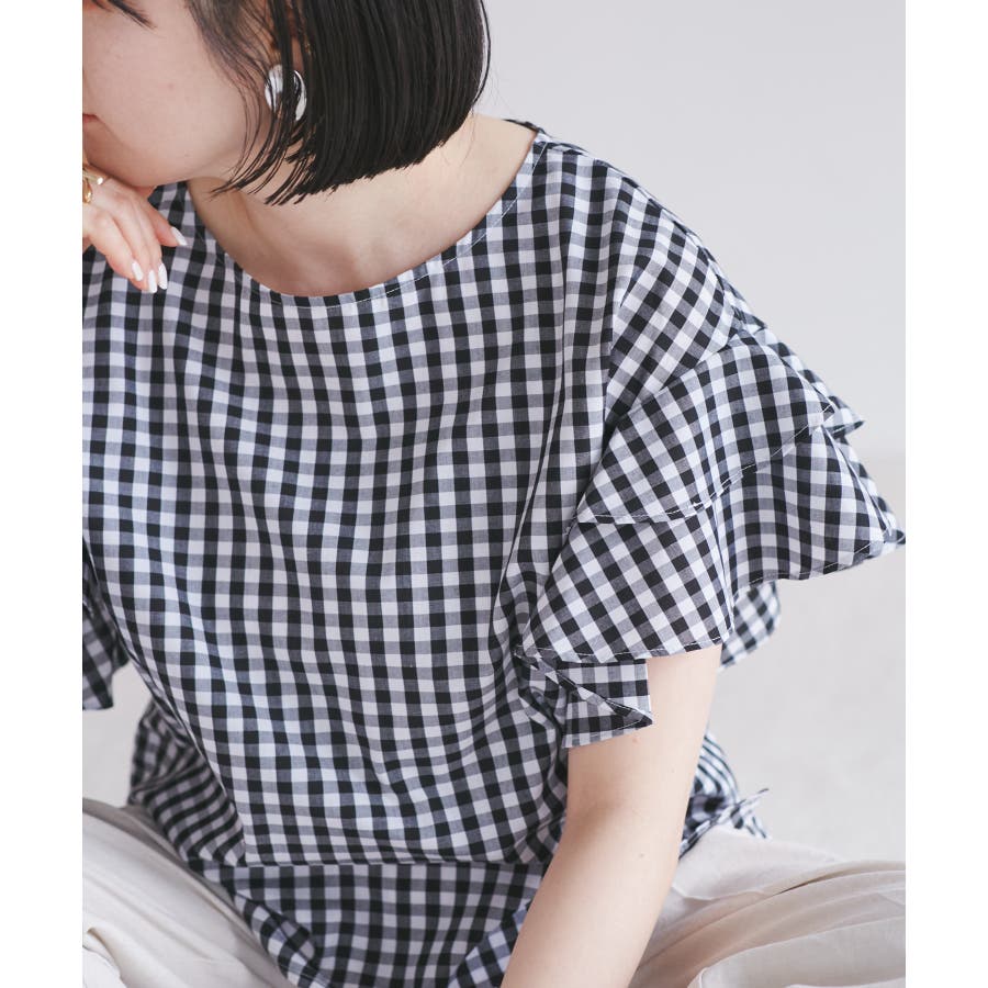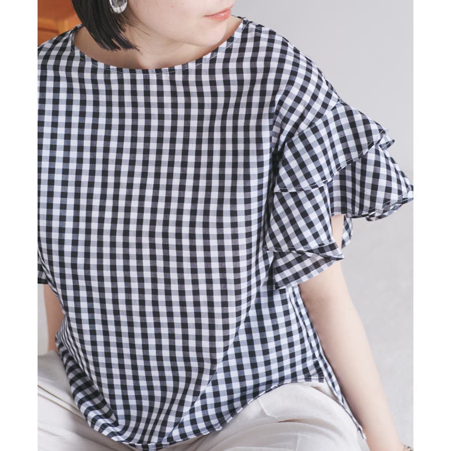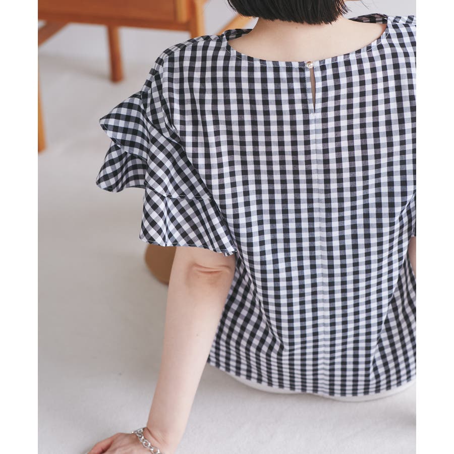 【WEB限定】袖フリルアソート柄半袖ブラウス【洗える】
