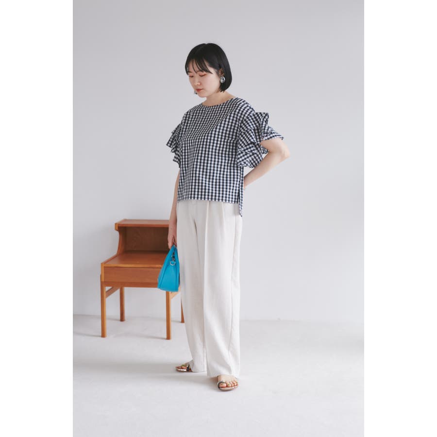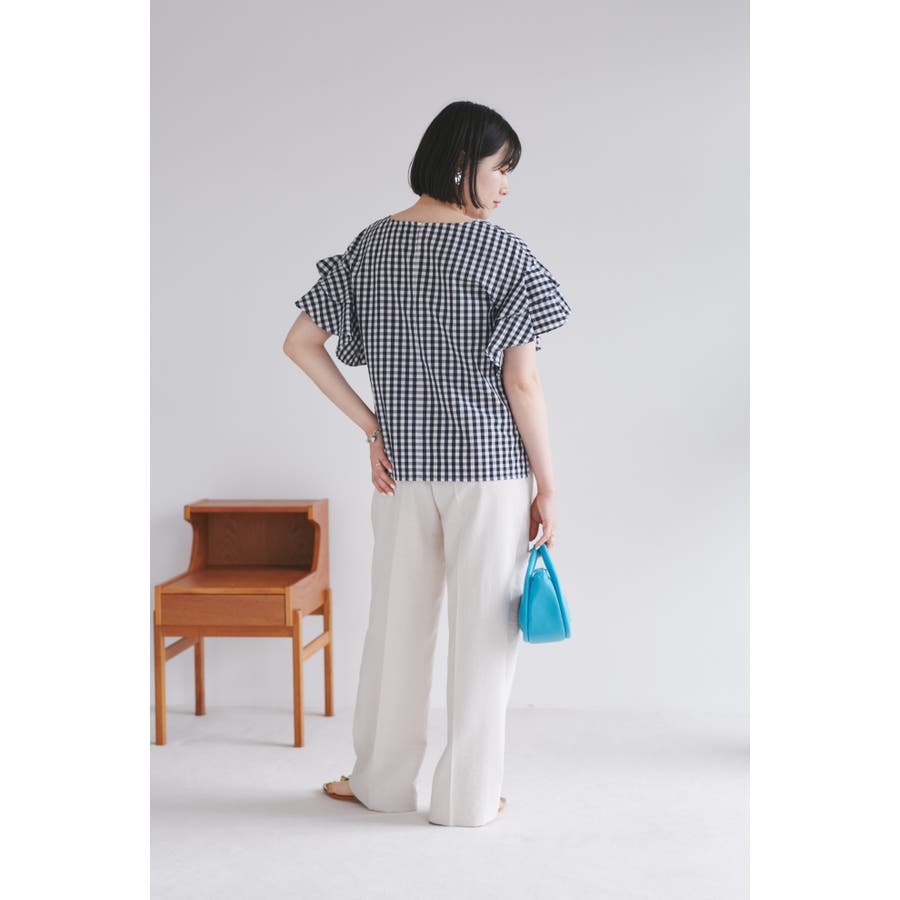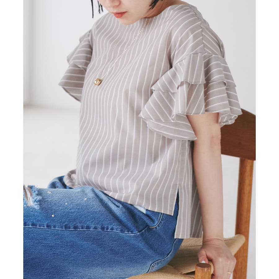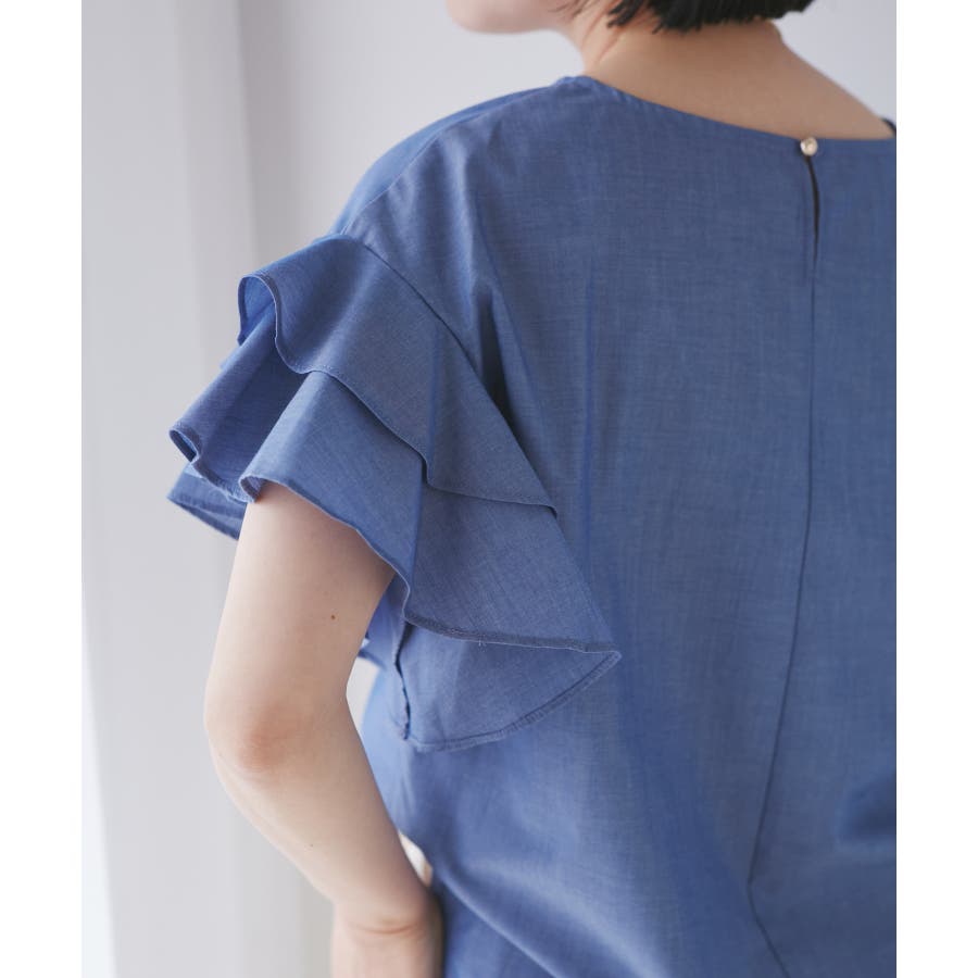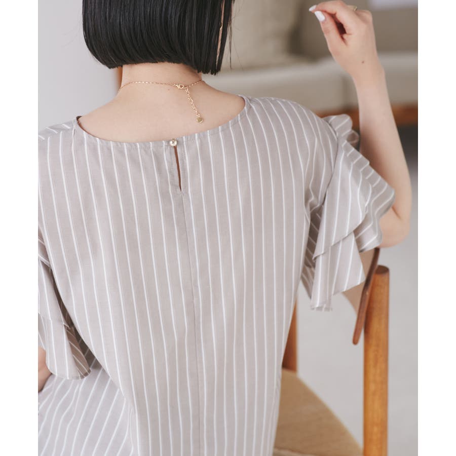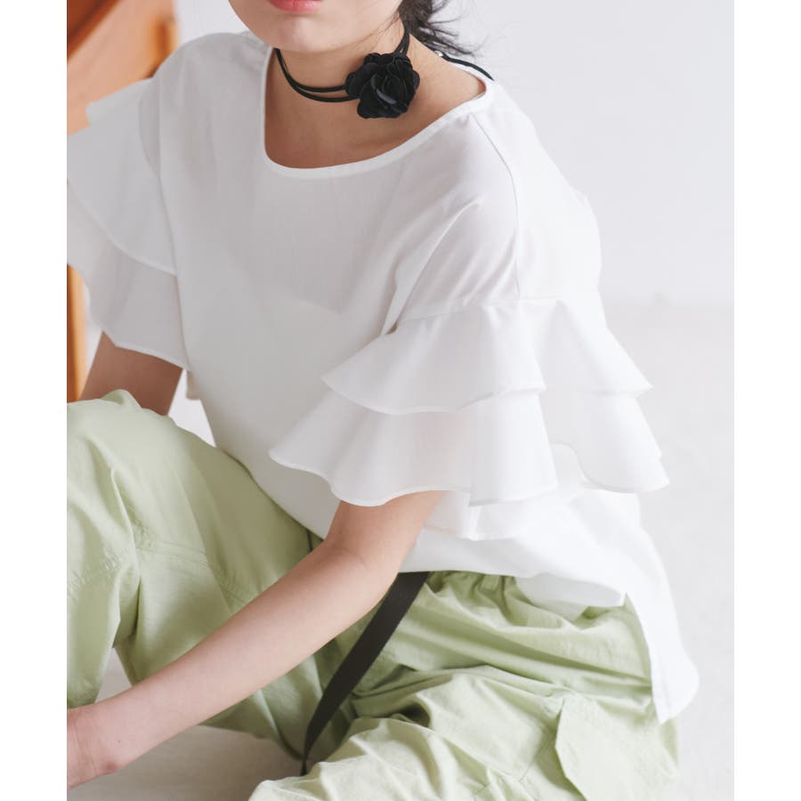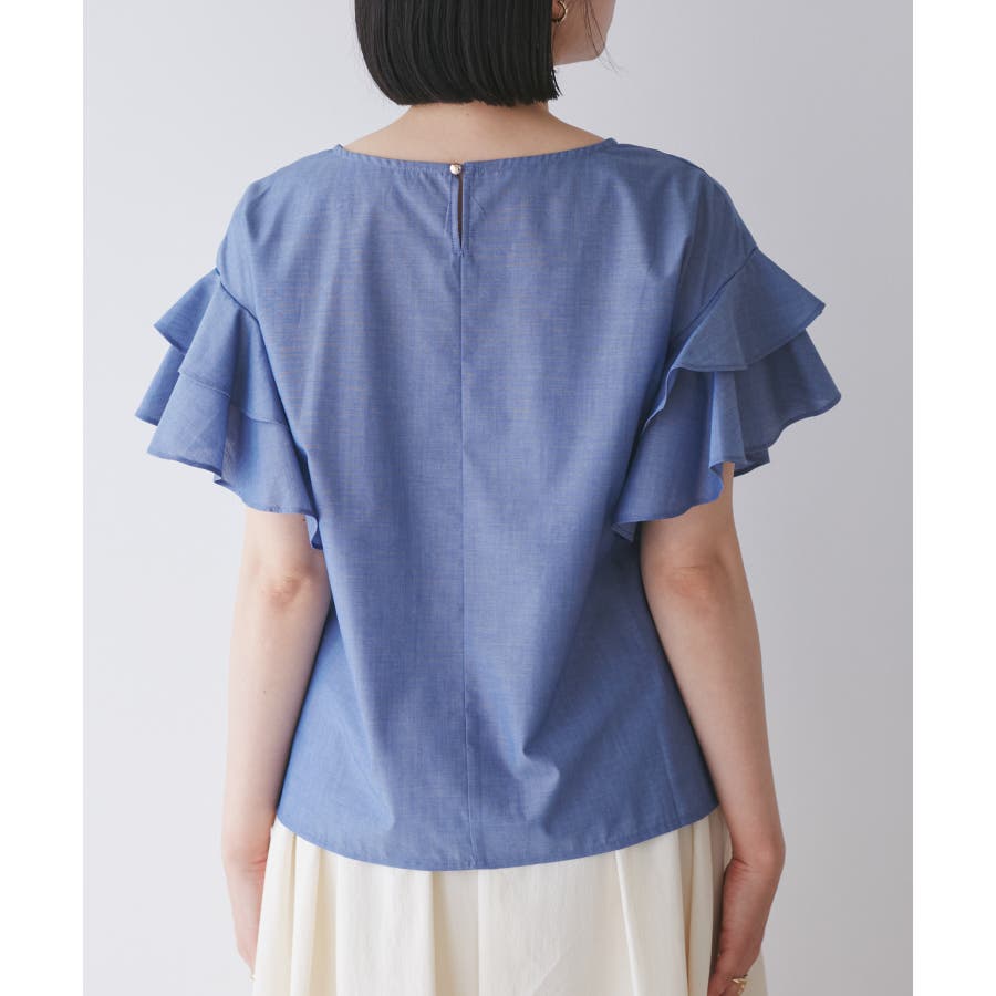 【WEB限定】袖フリルアソート柄半袖ブラウス【洗える】