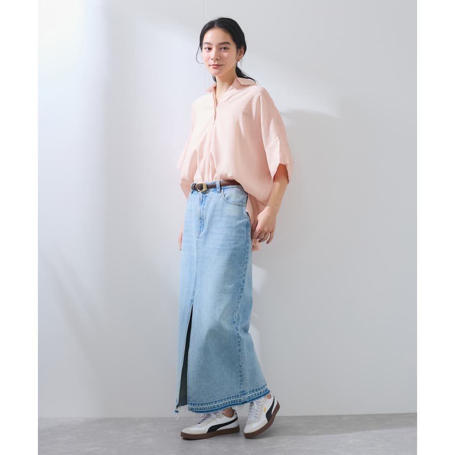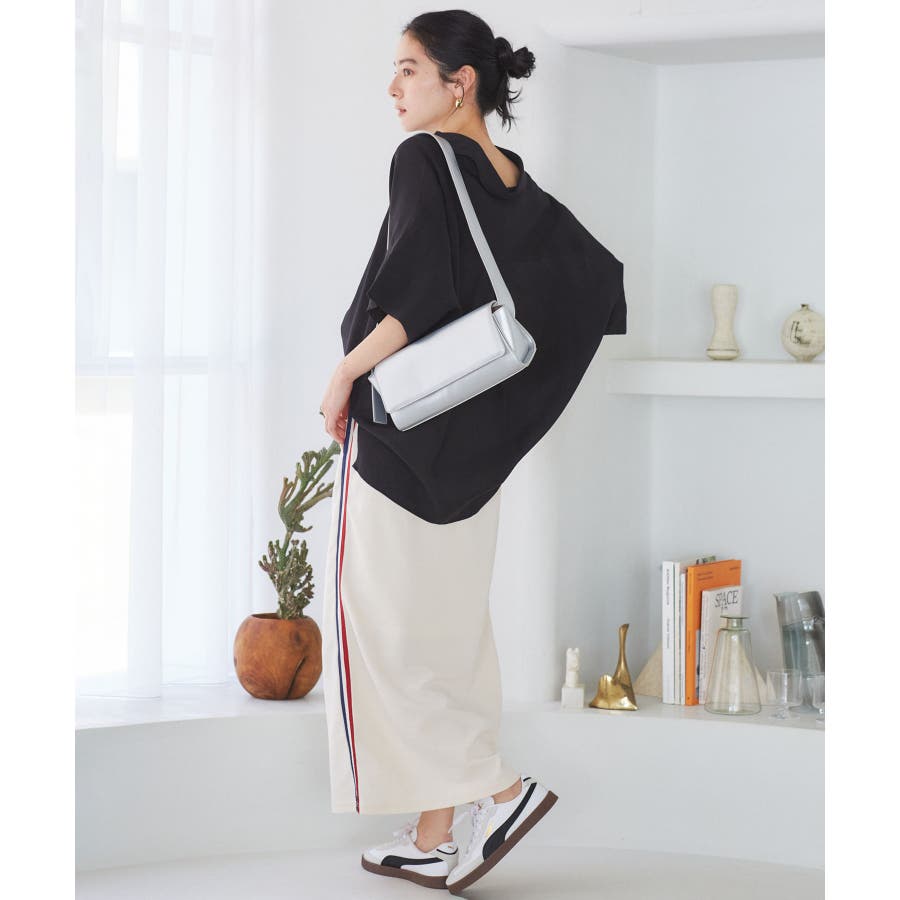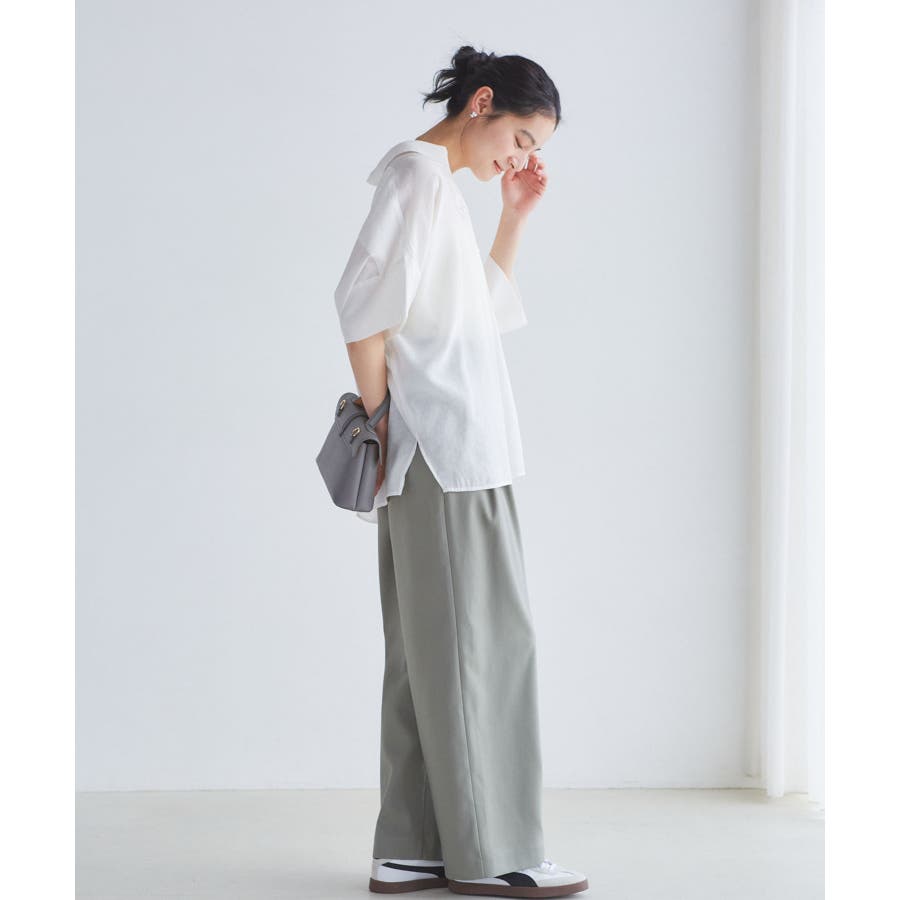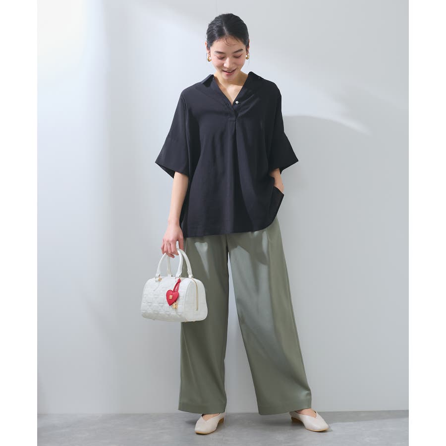 全体的にゆったりとしたサイズ感ですが、首元のヘルシーさと落ち感のある素材でスッキリと女性らしく着用できます。