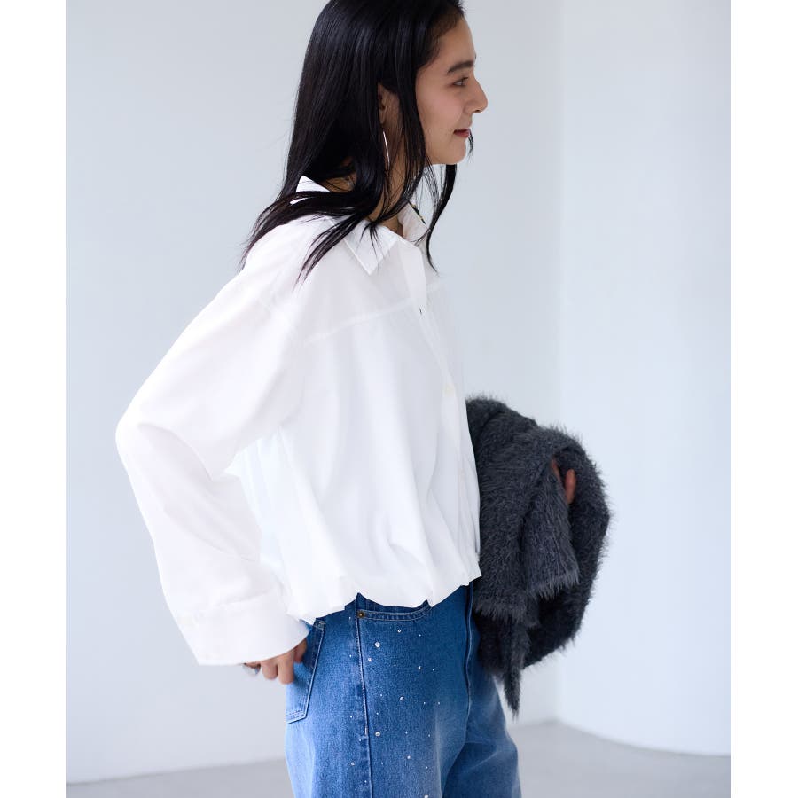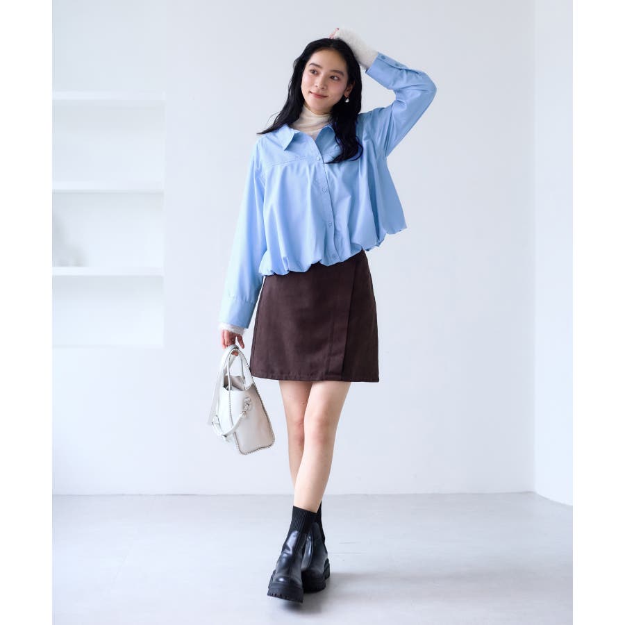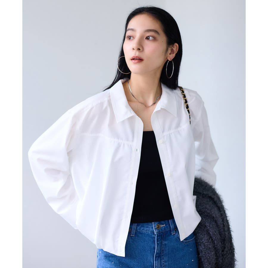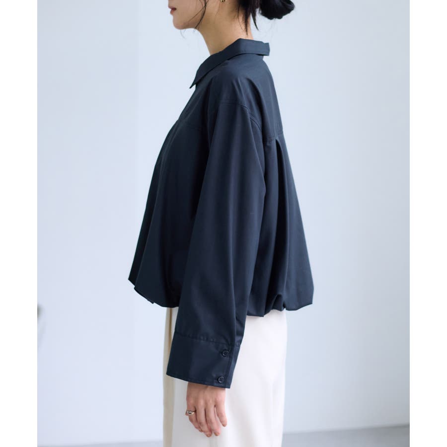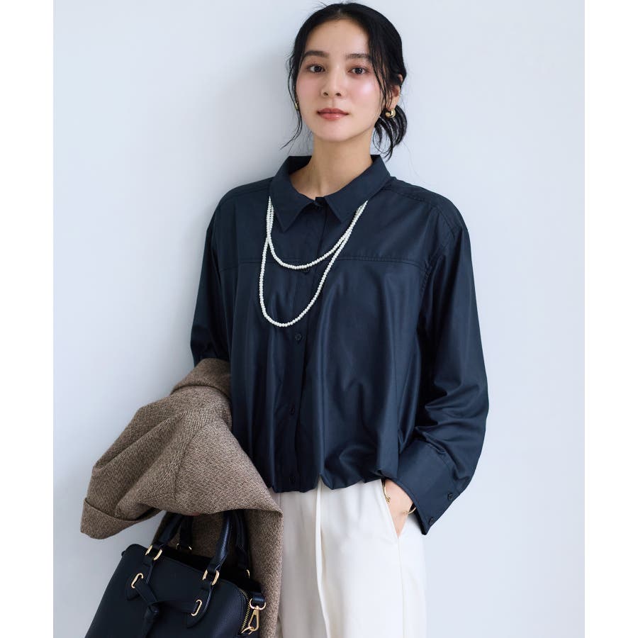 ボタンを閉めてプルオーバー風に着れば一枚で着映える主役ブラウスに。