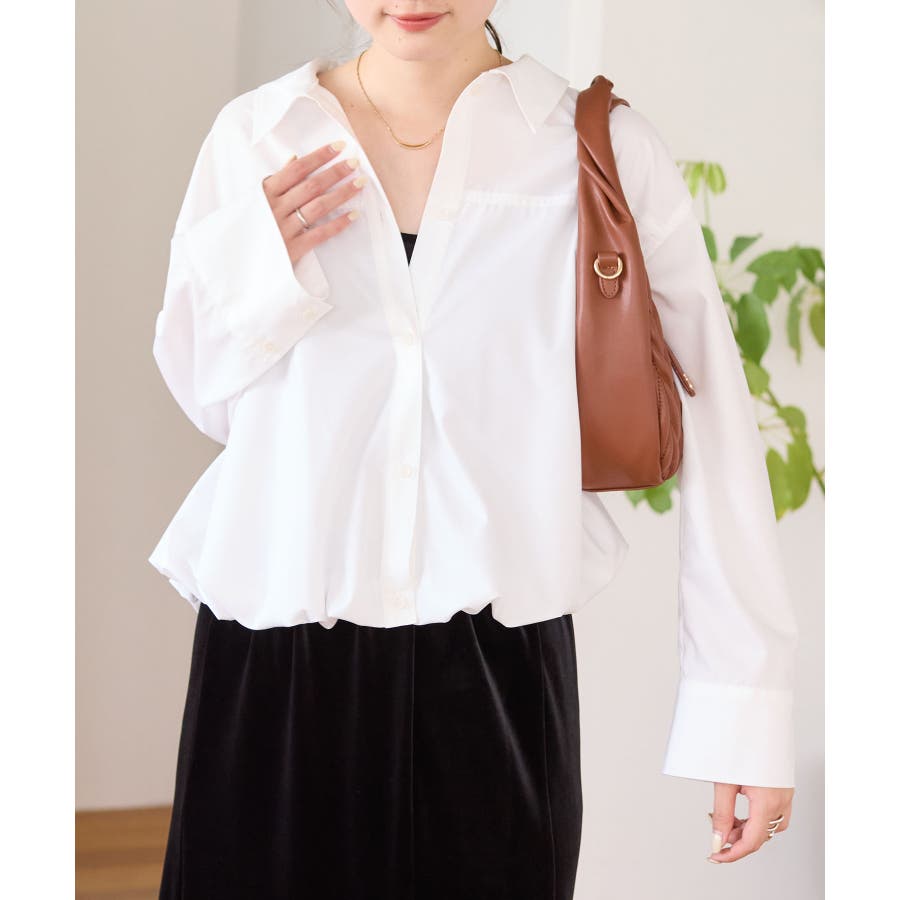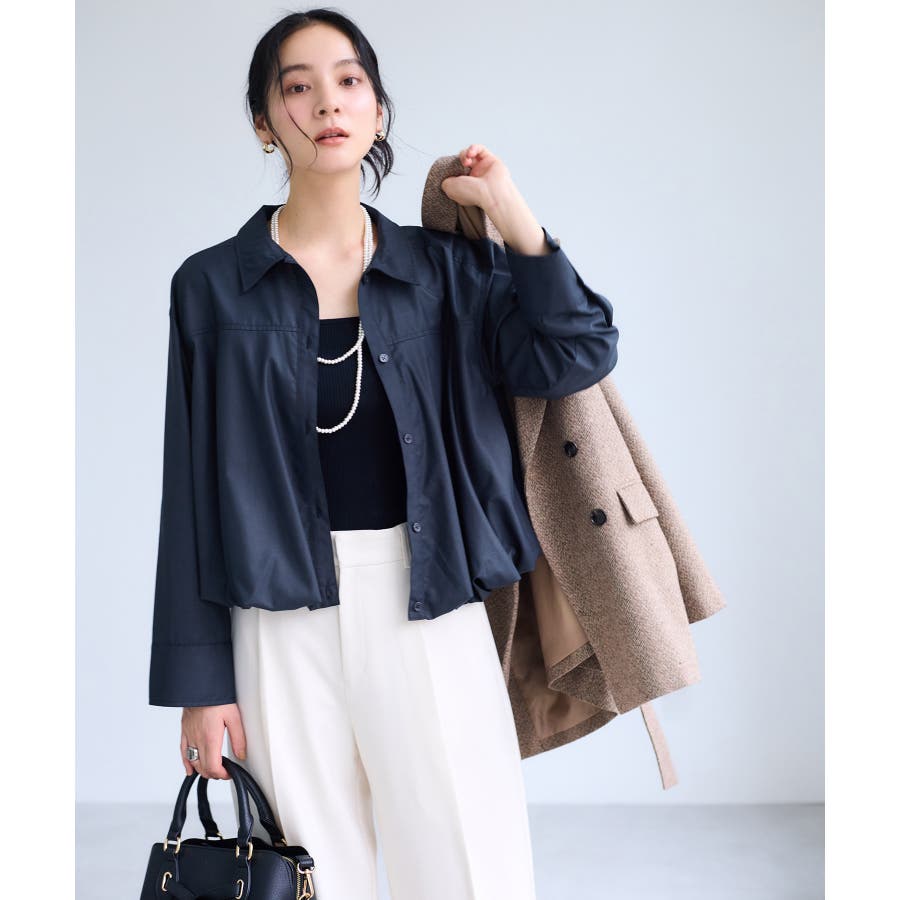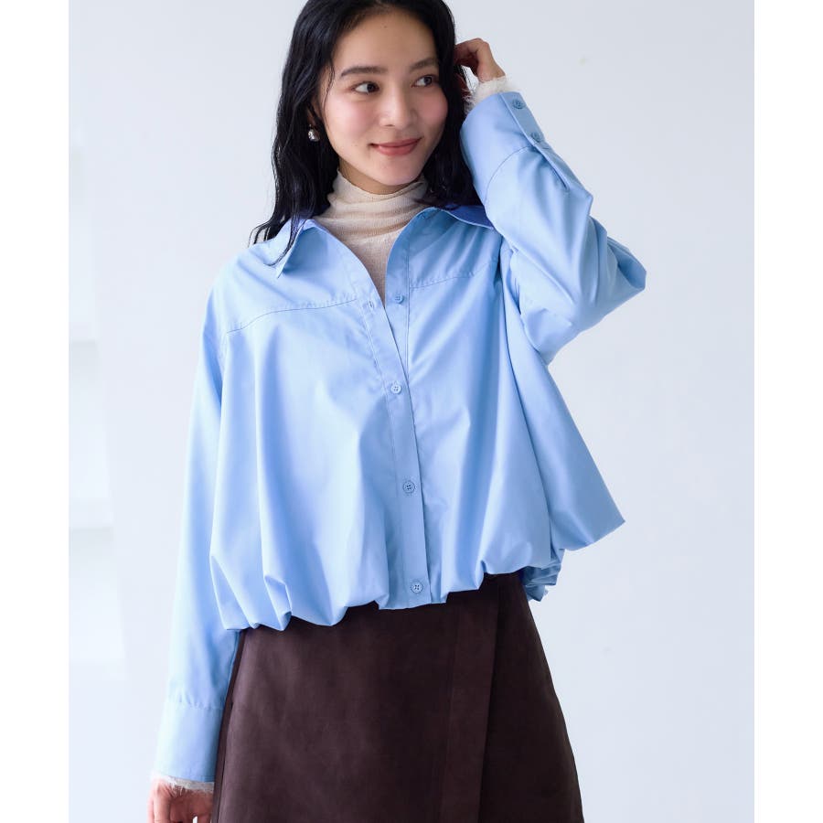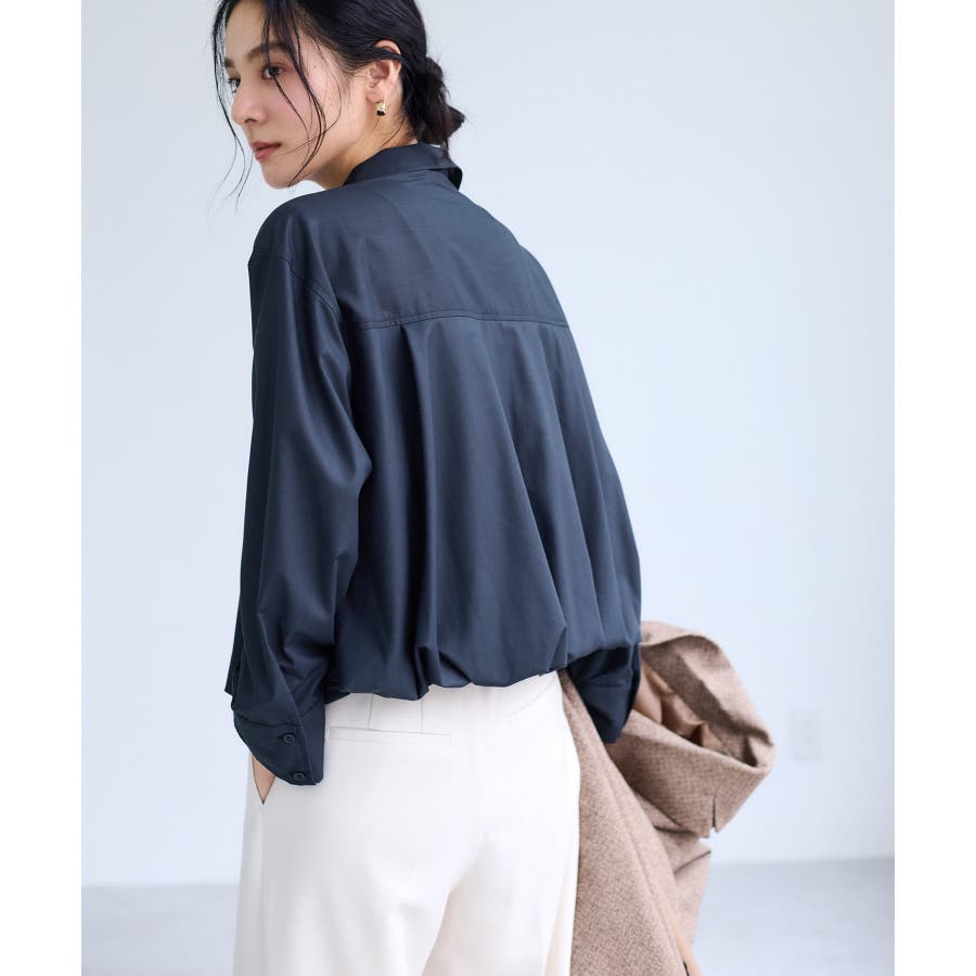 裾に向かってふんわり広がるバルーンペプラムが華やかなブラウス。