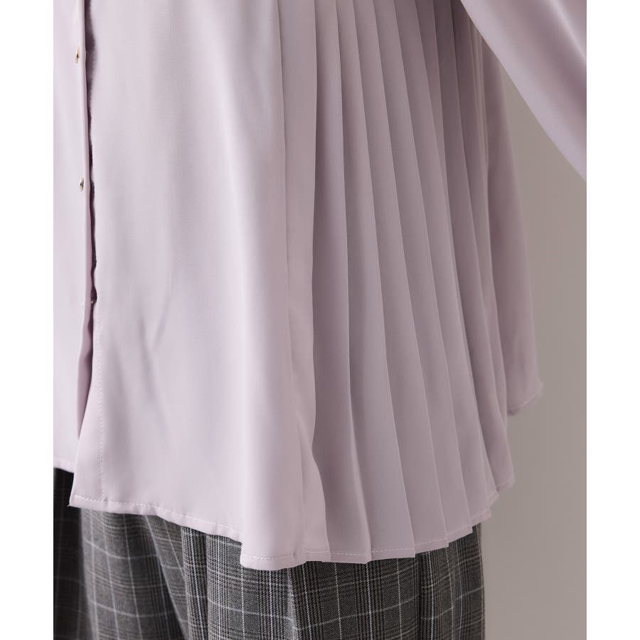 すっきりとしたフロントに、サイドへプリーツを施したデザイン。歩くたびに軽やかに揺れ、上品さと華やかさをプラス。フロントのゴールドボタンがアクセントとなり、シンプルな中にも女性らしい印象を引き立てます。
