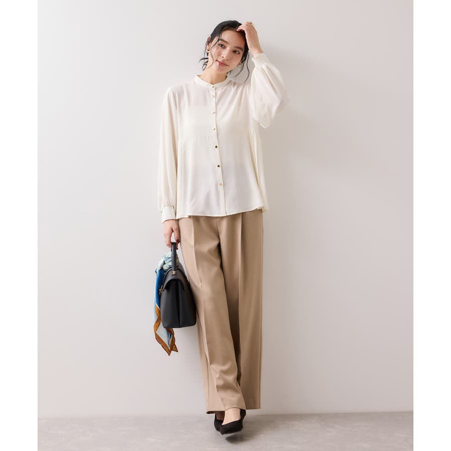 さらりと着やすい布帛素材。軽やかでシワになりにくく、デイリーに使いやすい質感です。