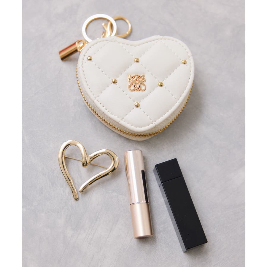 スタッズキルティングハートポーチチャーム