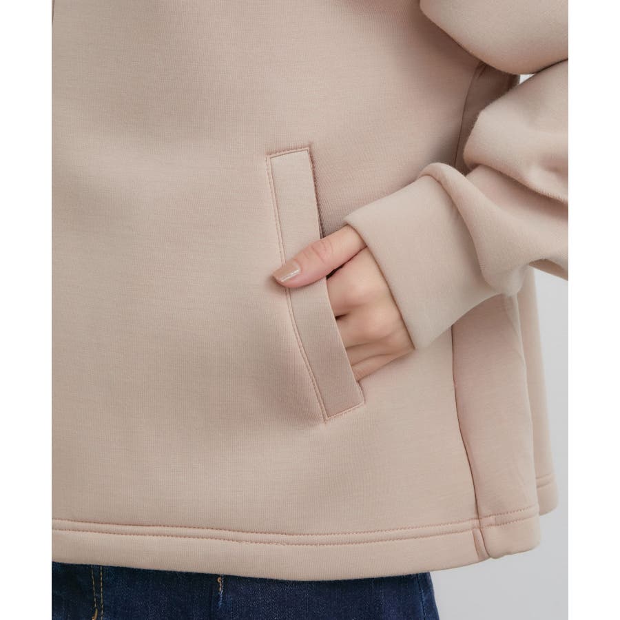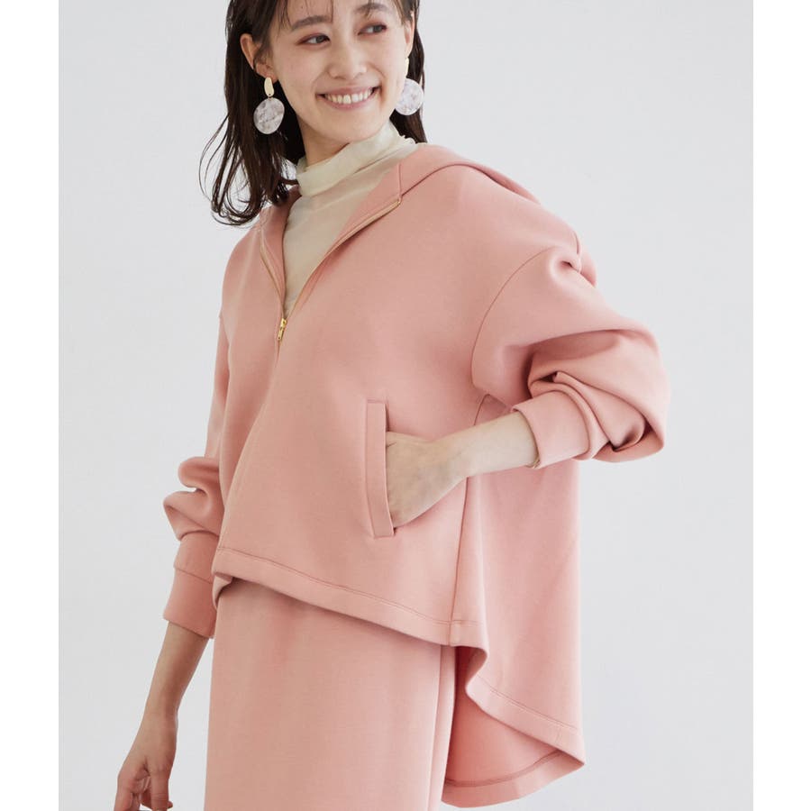 ー モイスト スフレタッチ ー もちっとふわふわした触感はまるでスフレのよう。 アルガンオイル加工でさらにしっとりとした、やさしい着心地を体験できます。 貼り感があり、立体的な上品シルエットを叶えます。 【デザイン・シルエット】 ハリ感を活かした女性らしいテントラインで仕上げたジップアップパーカー。 羽織としてはもちろん、トップスとしてもお使いいただけます。 日中の暖かさと夜の寒さが共存する季節にはもってこいのアイテム。 お尻にかけて丈を長めに設定し、袖も少し長めに女の子らしく作っています。 【素材】 スフレタッチのふっくら素材にアルガンオイル加工を施しました。 ジャージ素材なのでお洗濯も楽ちんで、お家時間にもお出かけにも使えるアイテムです。 【カラー】 優しさ溢れるカラーを取りそろえました。 ※ピンク系(65)はWEB店舗限定カラーです。 【おすすめのスタイリング】 シンプルなデザインなのでどんなお洋服にも合わせやすいデザインとなっています。 パンツ合わせで大人カジュアルに仕上げるのがおすすめ。 同シリーズのスカート(BVC11010)やパンツ(BVS11070)とセットアップで着用できます。 ----------------------------- 透け:なし 裏地:なし 伸縮性:あり 光沢感:なし 生地の厚さ:普通 ポケット:あり 季節:秋~春 ----------------------------- 【モデル着用サイズ】 ベージュ・ラベンダー・イエロー着用モデル身長:160cm、着用サイズ:F キナリ・ブルー・ピンク系着用モデル身長:164cm、着用サイズ:F ※画像の商品はサンプルです。 実際の商品と仕様、加工、サイズが若干異なる場合がございます。