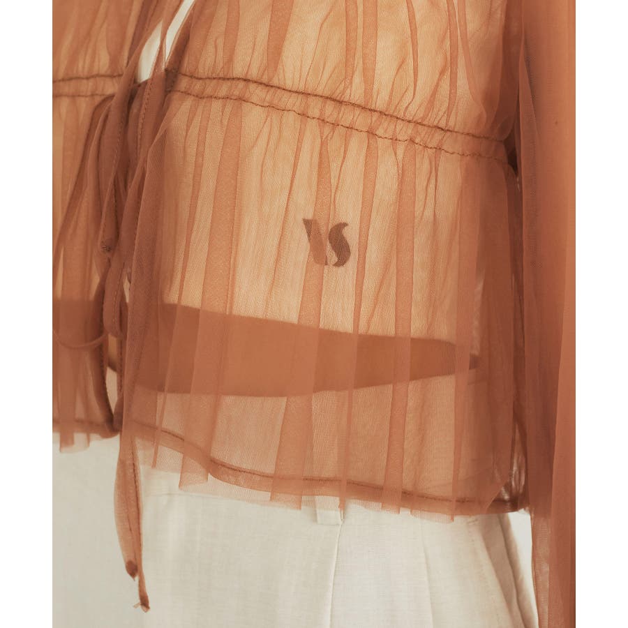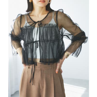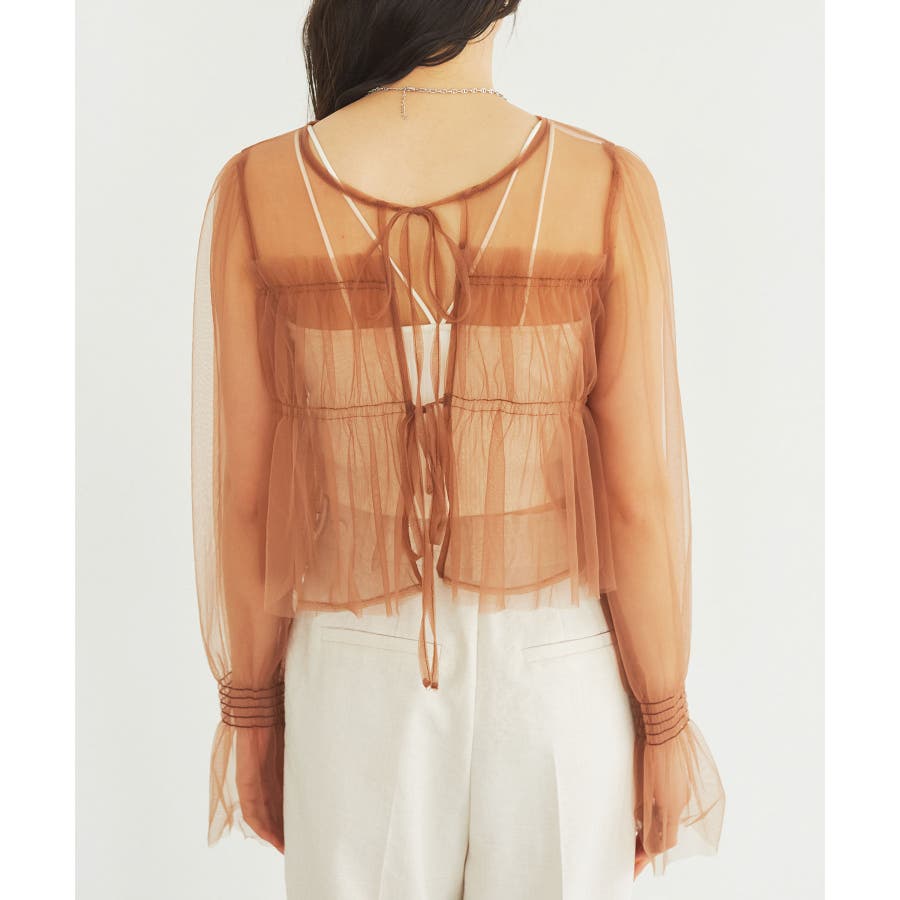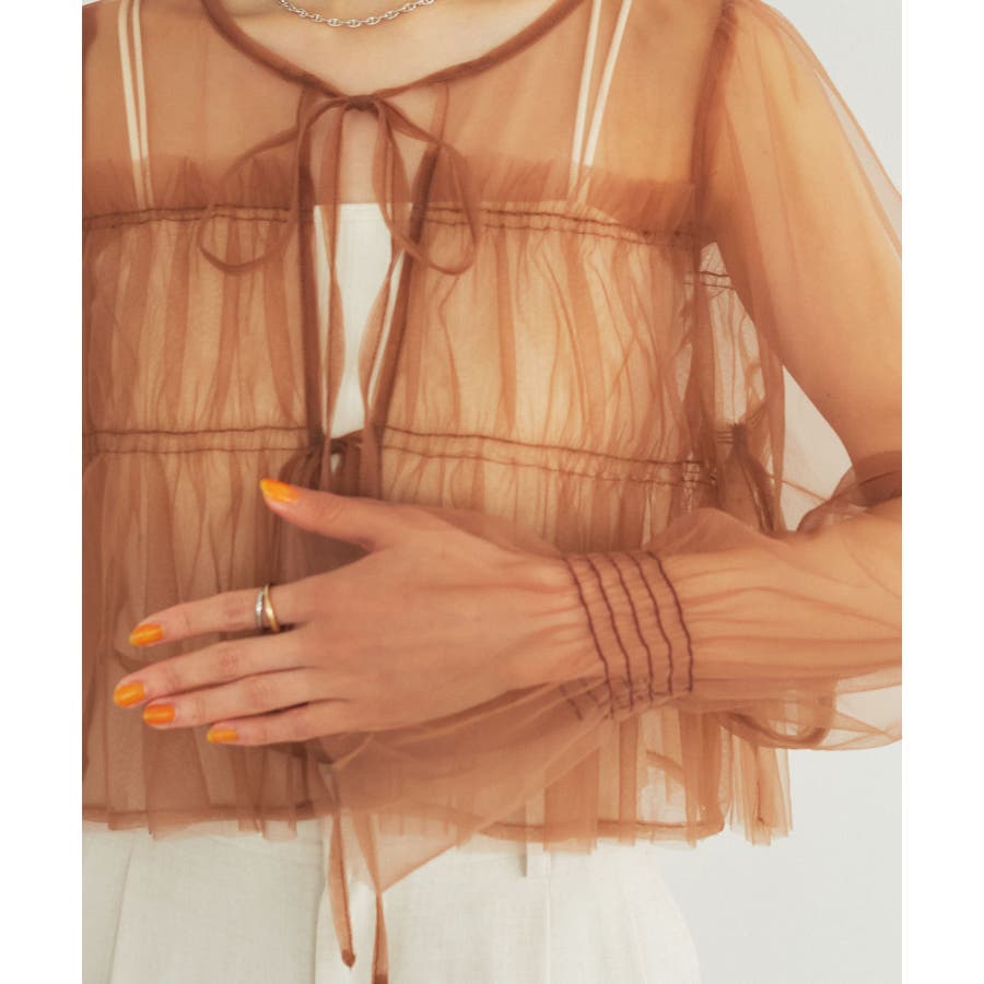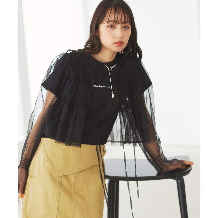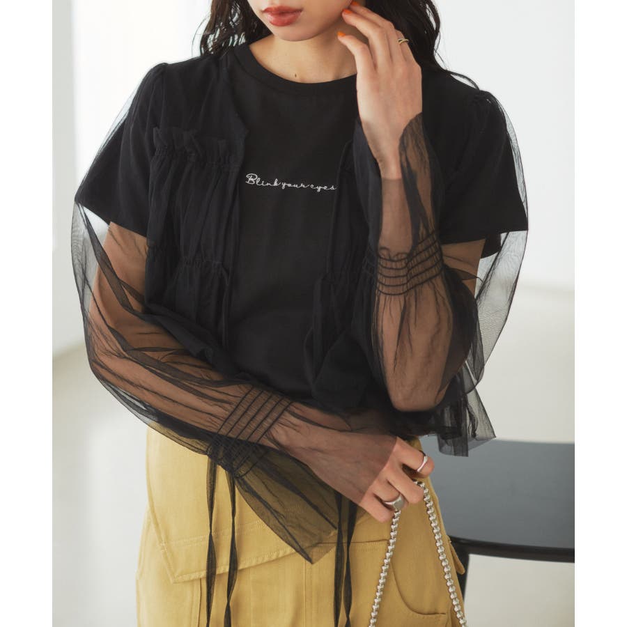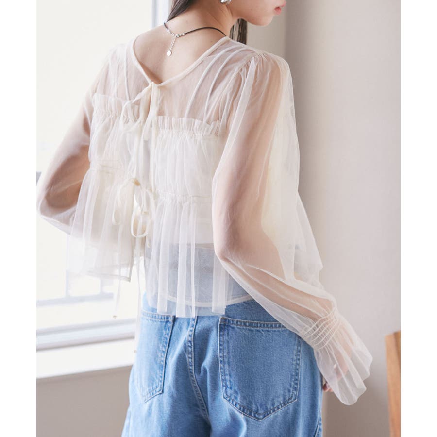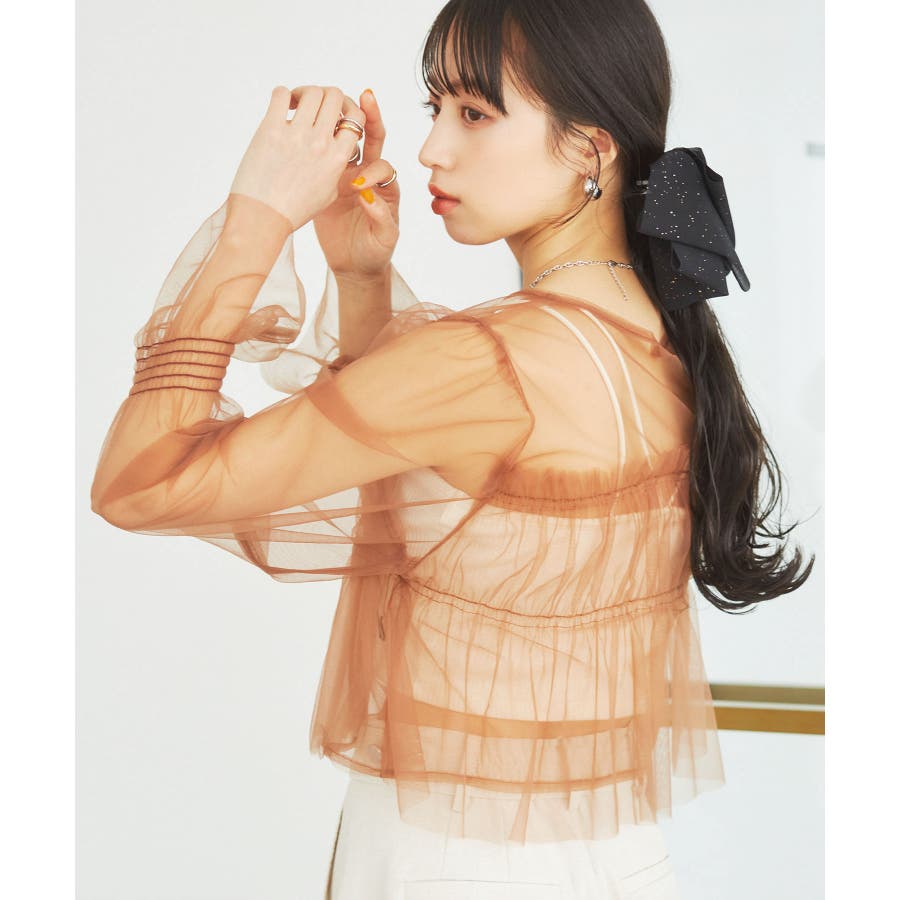 【前後2WAY】袖シャーリングチュールリボンブラウス