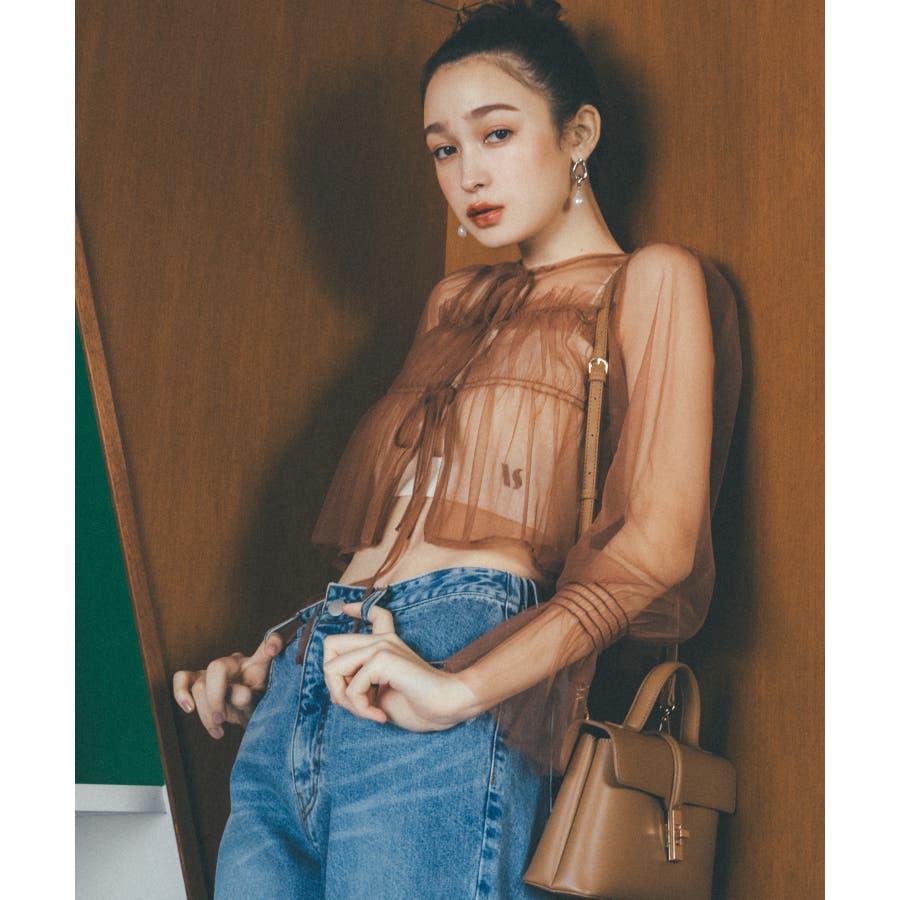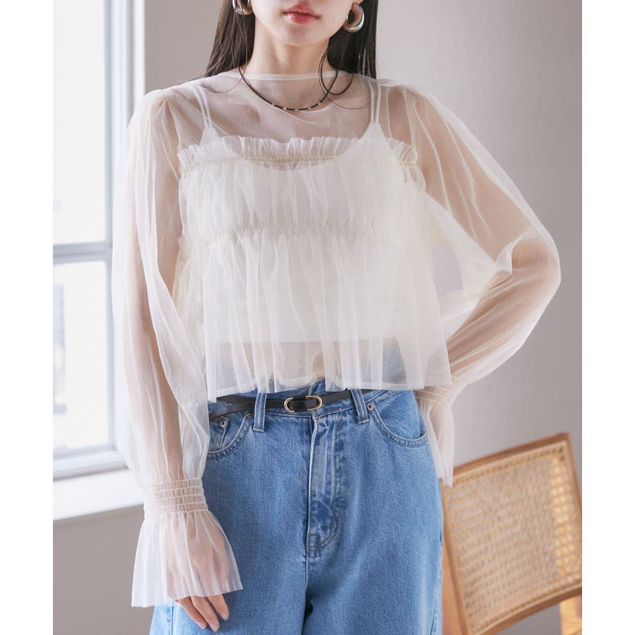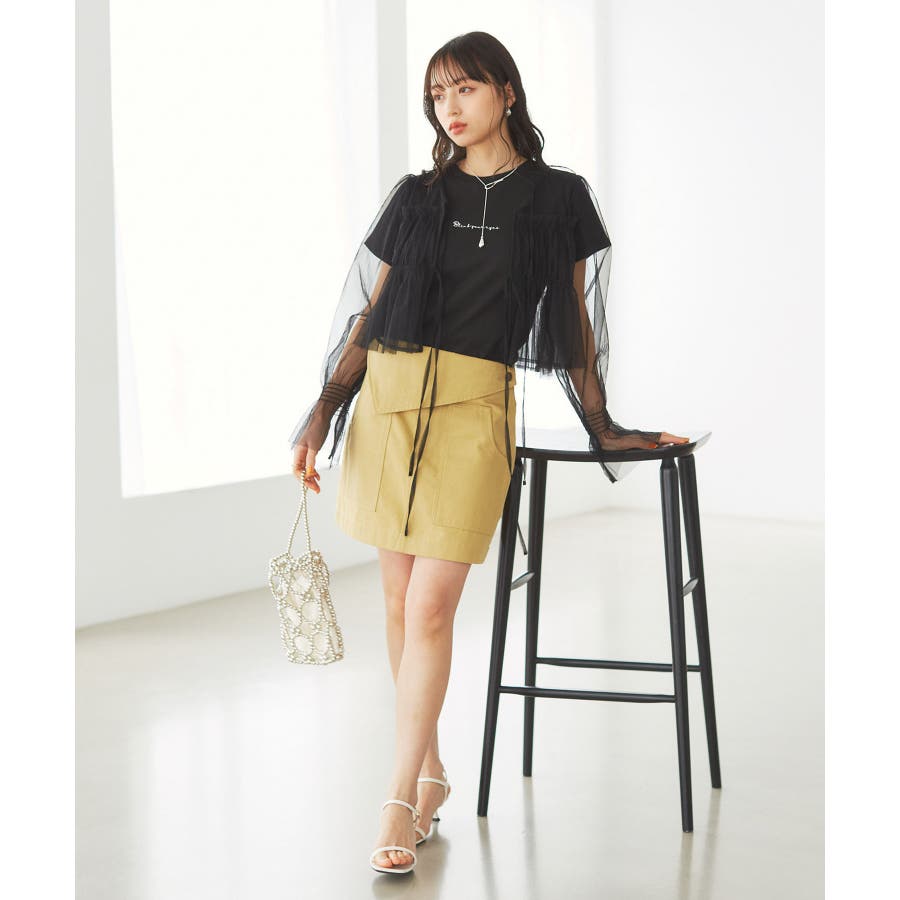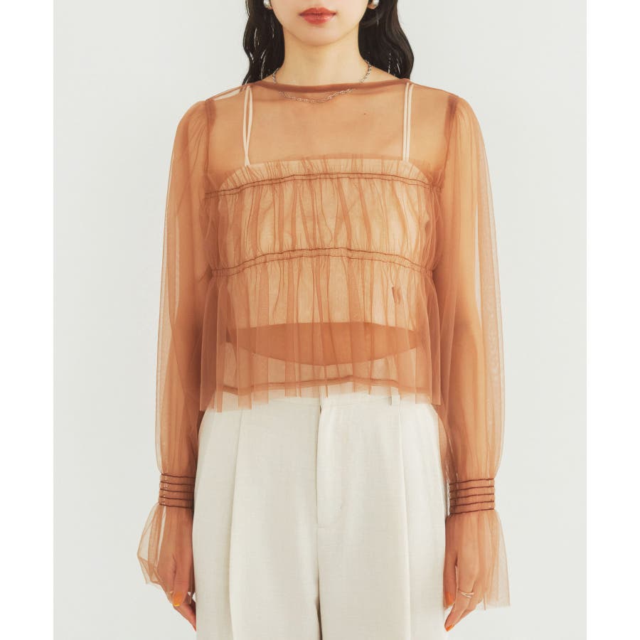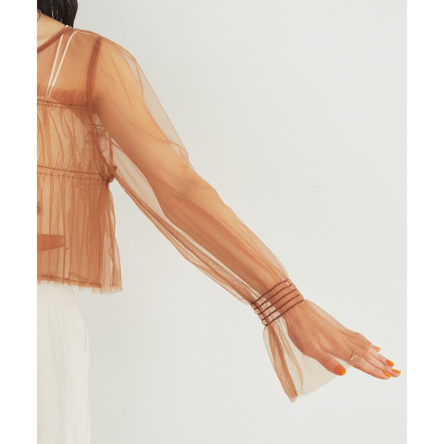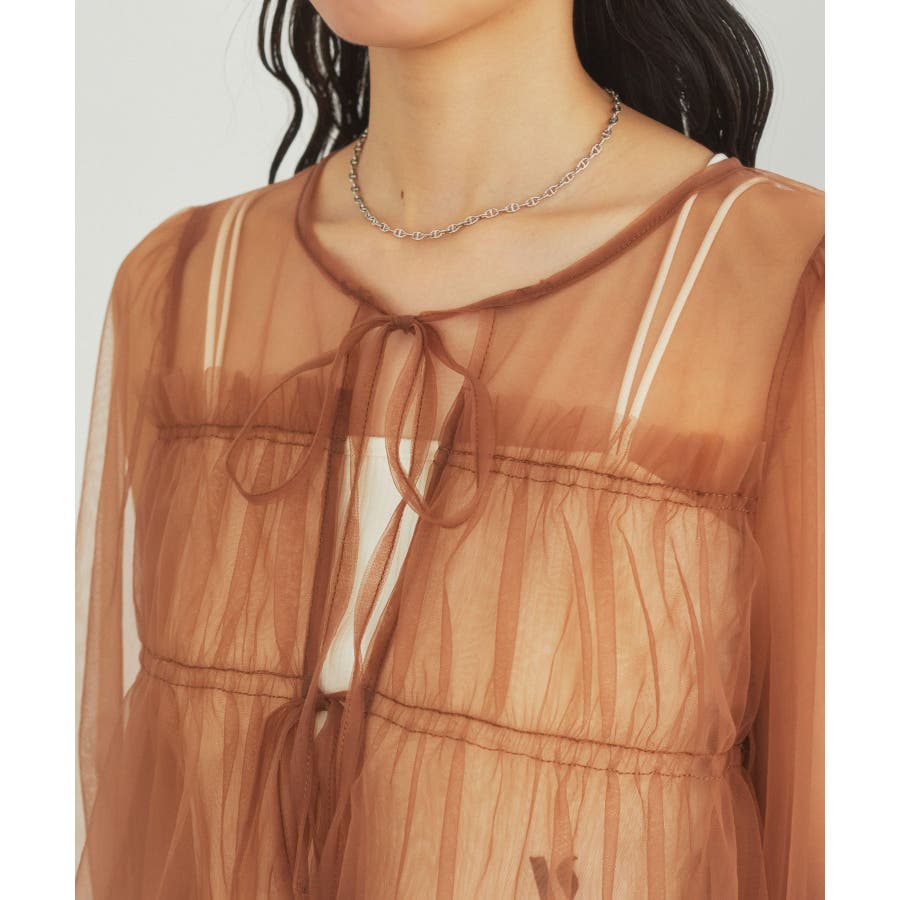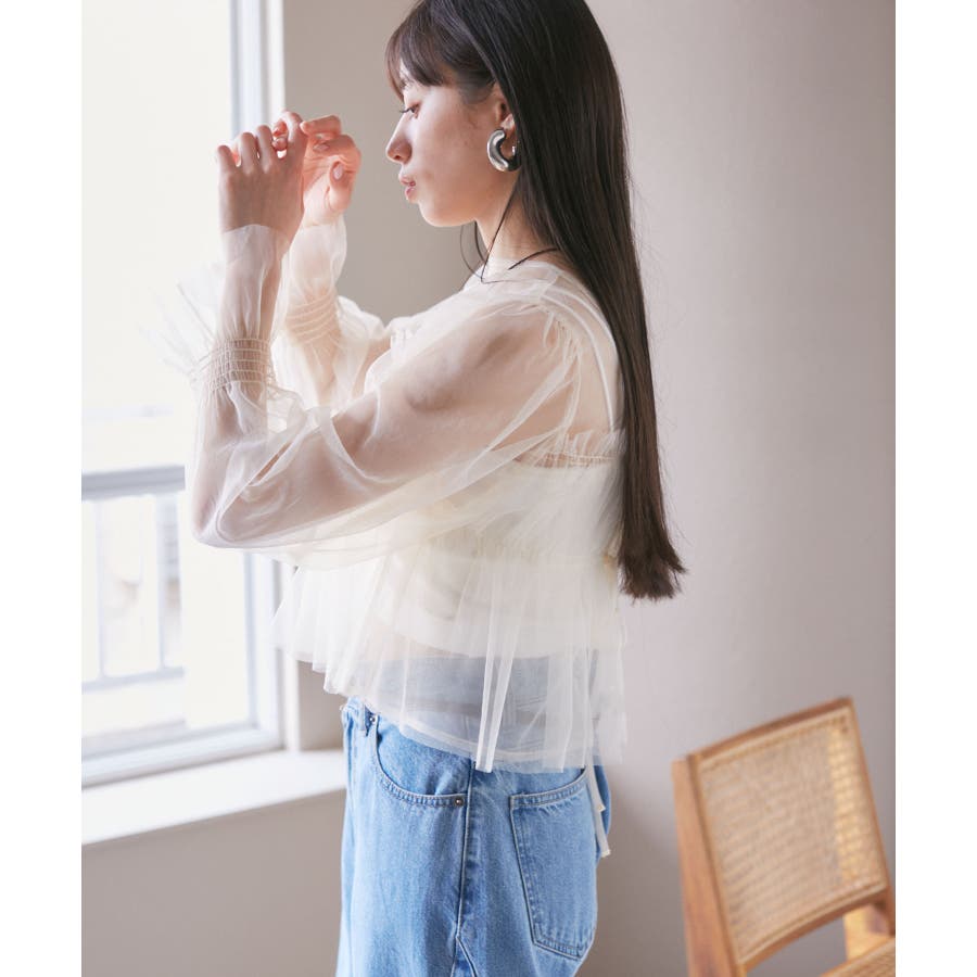 【前後2WAY】袖シャーリングチュールリボンブラウス