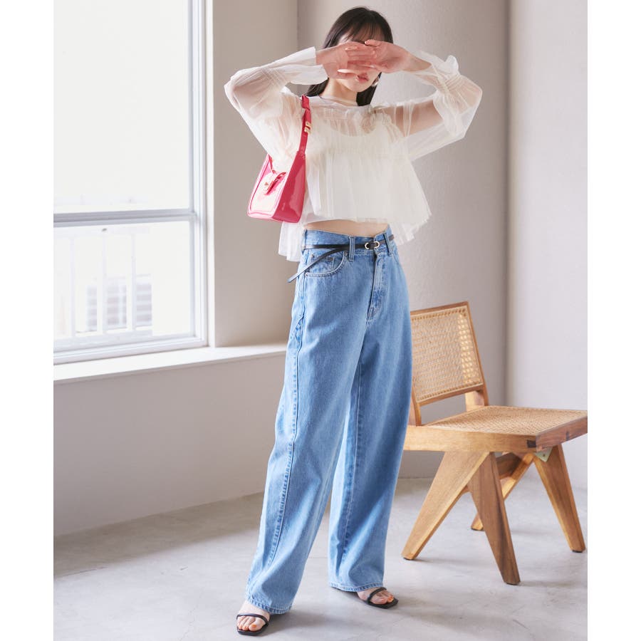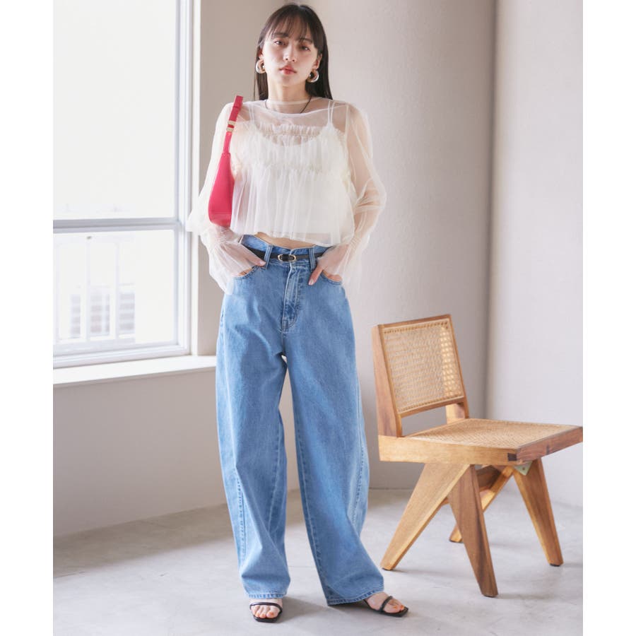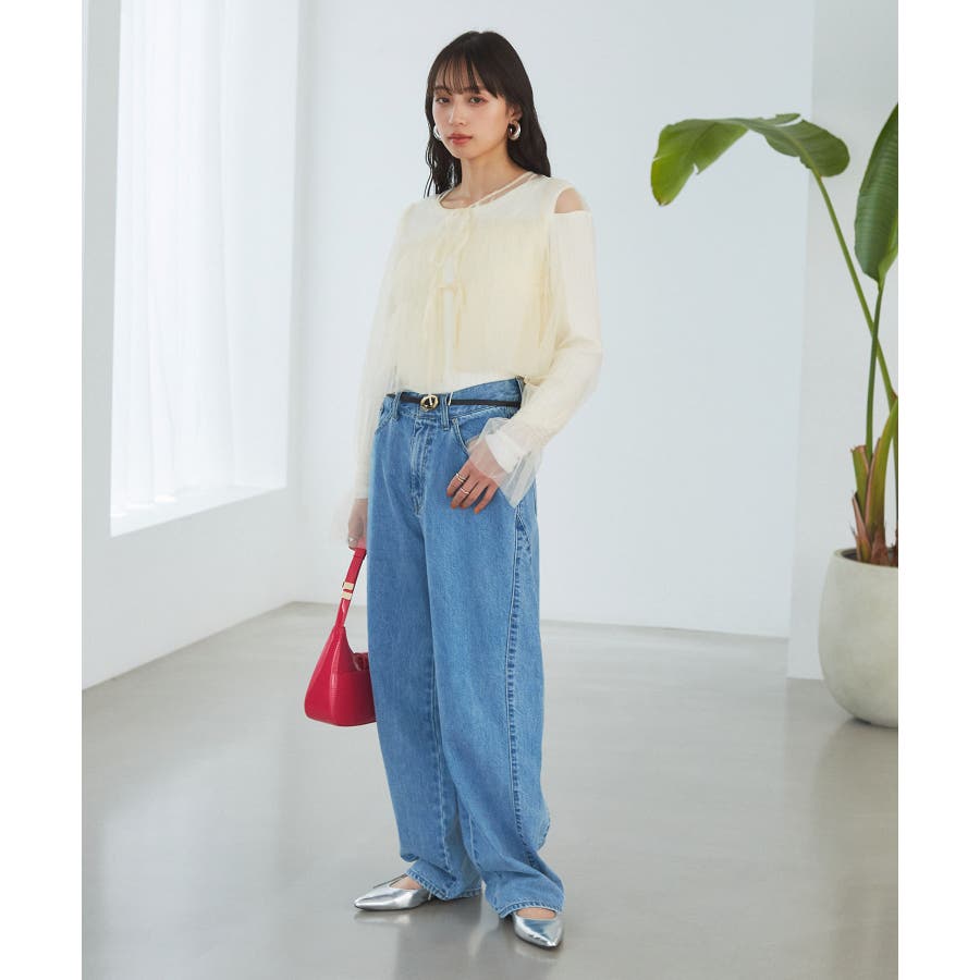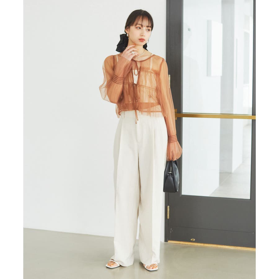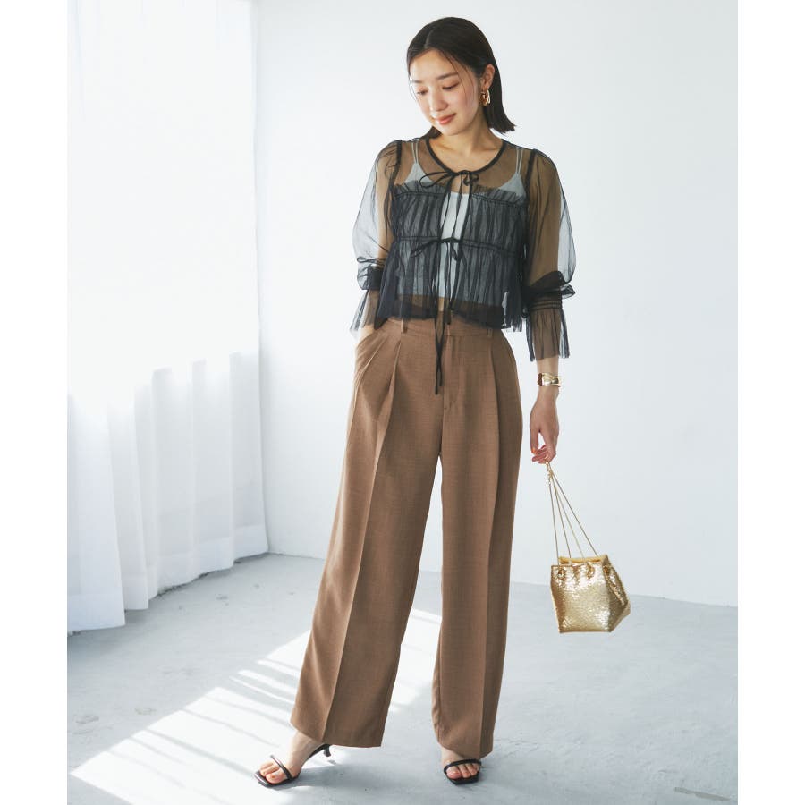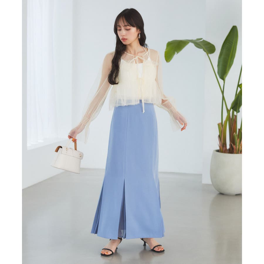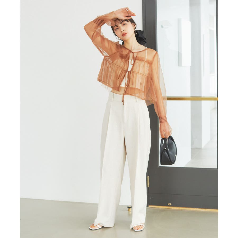 【前後2WAY】袖シャーリングチュールリボンブラウス
