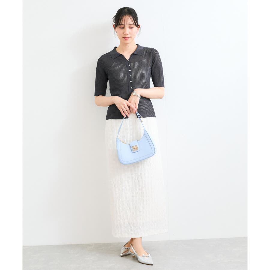 体に程よく沿うシルエットなので、ワイドなボトムやAラインスカートともバランス良く着用していただけます。ボリュームのあるパンツでカジュアルに着崩したり、スカートでキレイめにまとめたりと、旬なファッションが楽しめます。