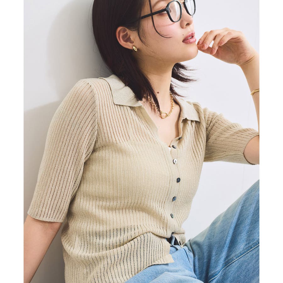 抜け感がありながらもコンパクトシルエットと、トレンドのポロ衿と多釦デザインで女性らしさを演出。