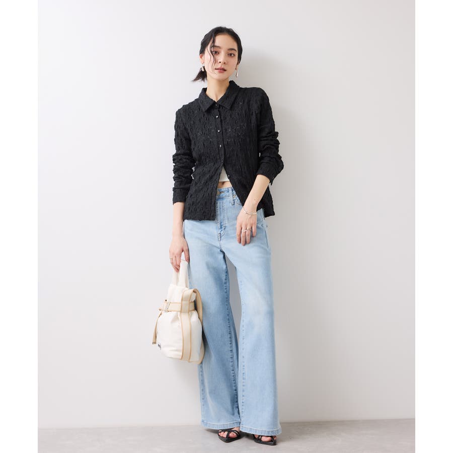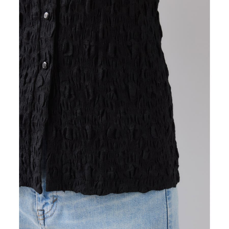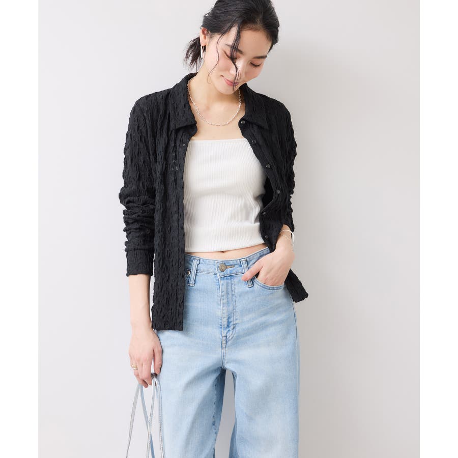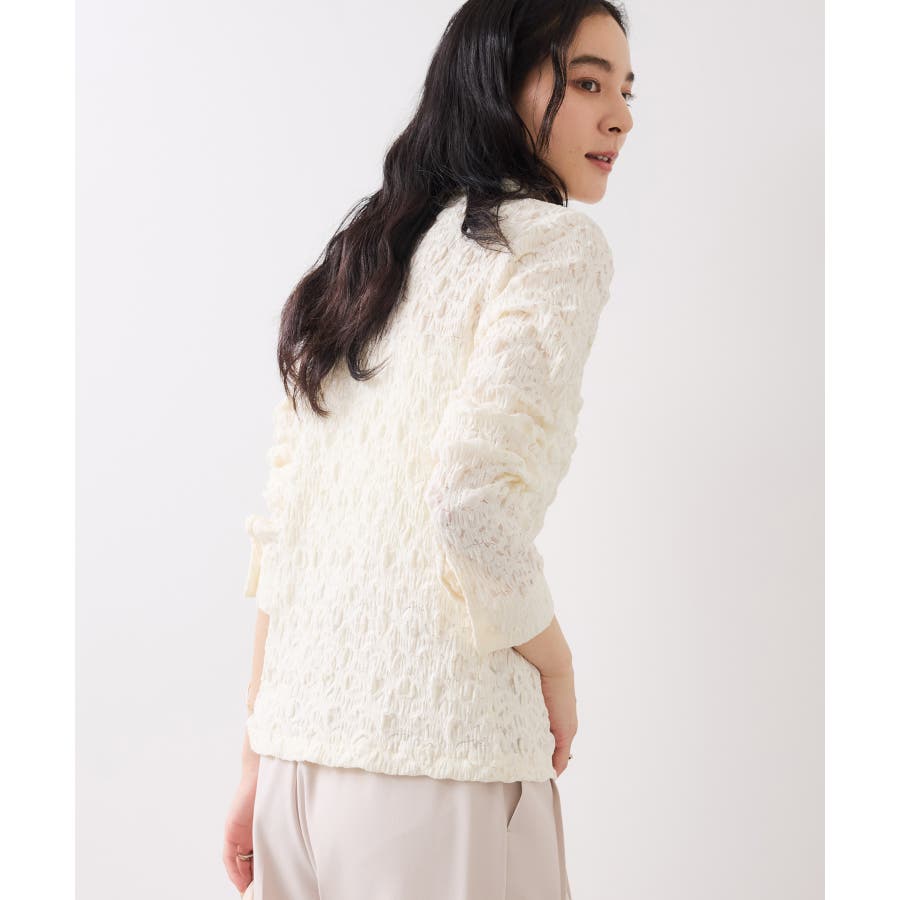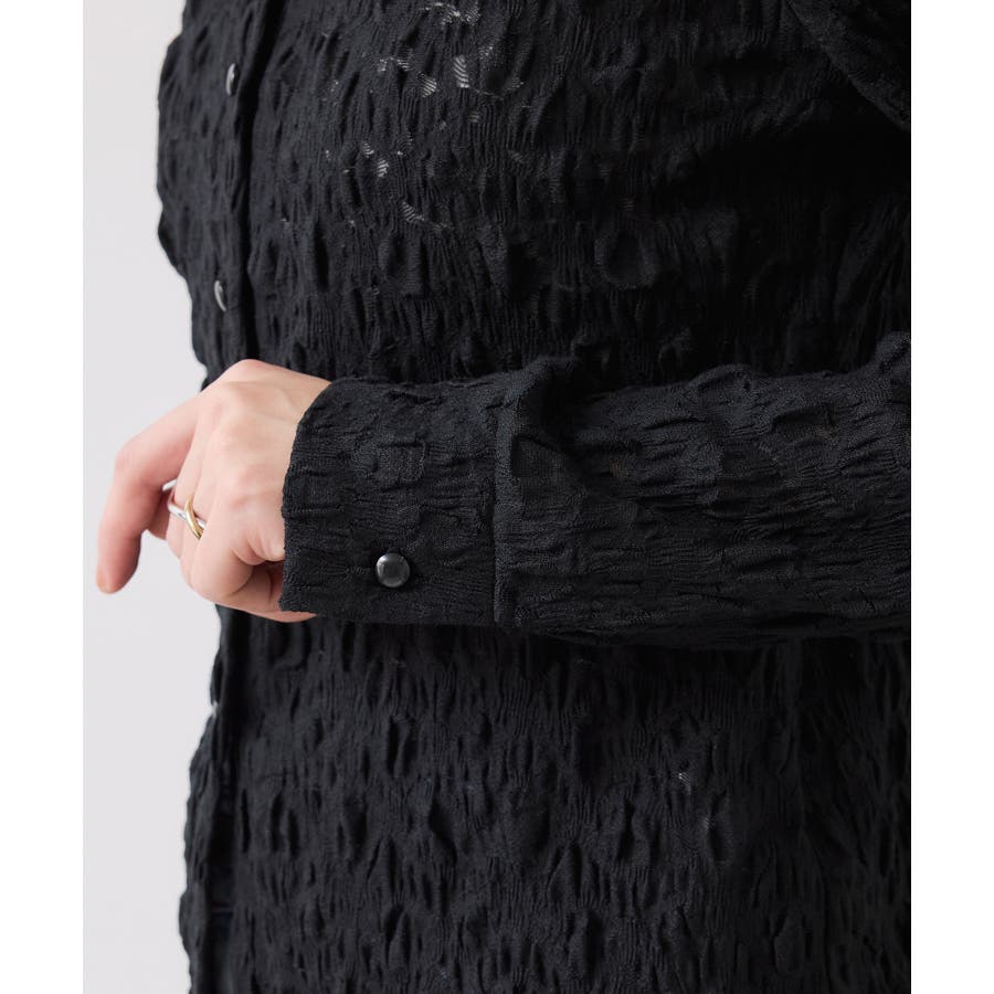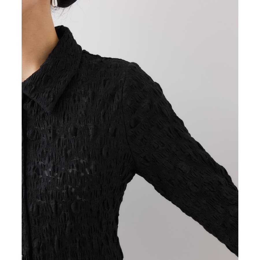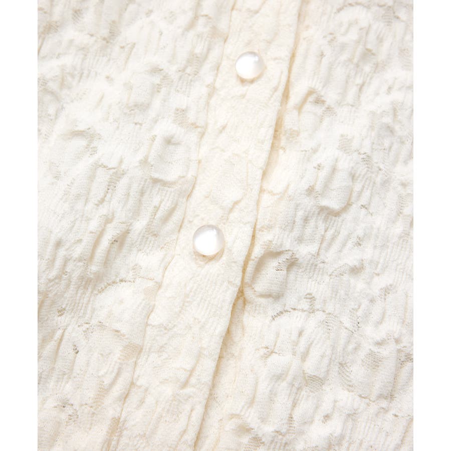 ストレッチレース素材を使用しているので、程良く体にフィットするシルエットに仕上げています。一枚着としてはもちろんですが、羽織りとしても使えるアイテム!