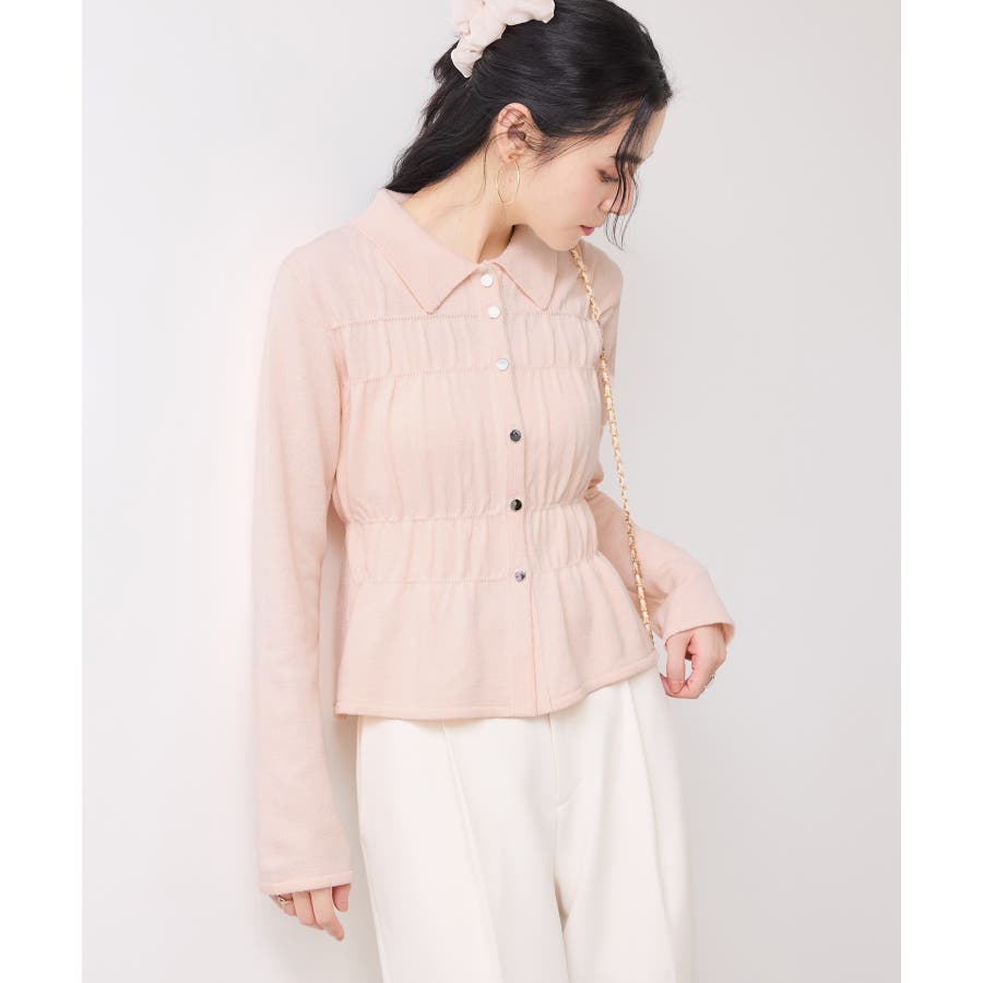 フロントのギャザーデザインがポイント!バックにも1本ゴムギャザーを入れているのですっきりした印象に。