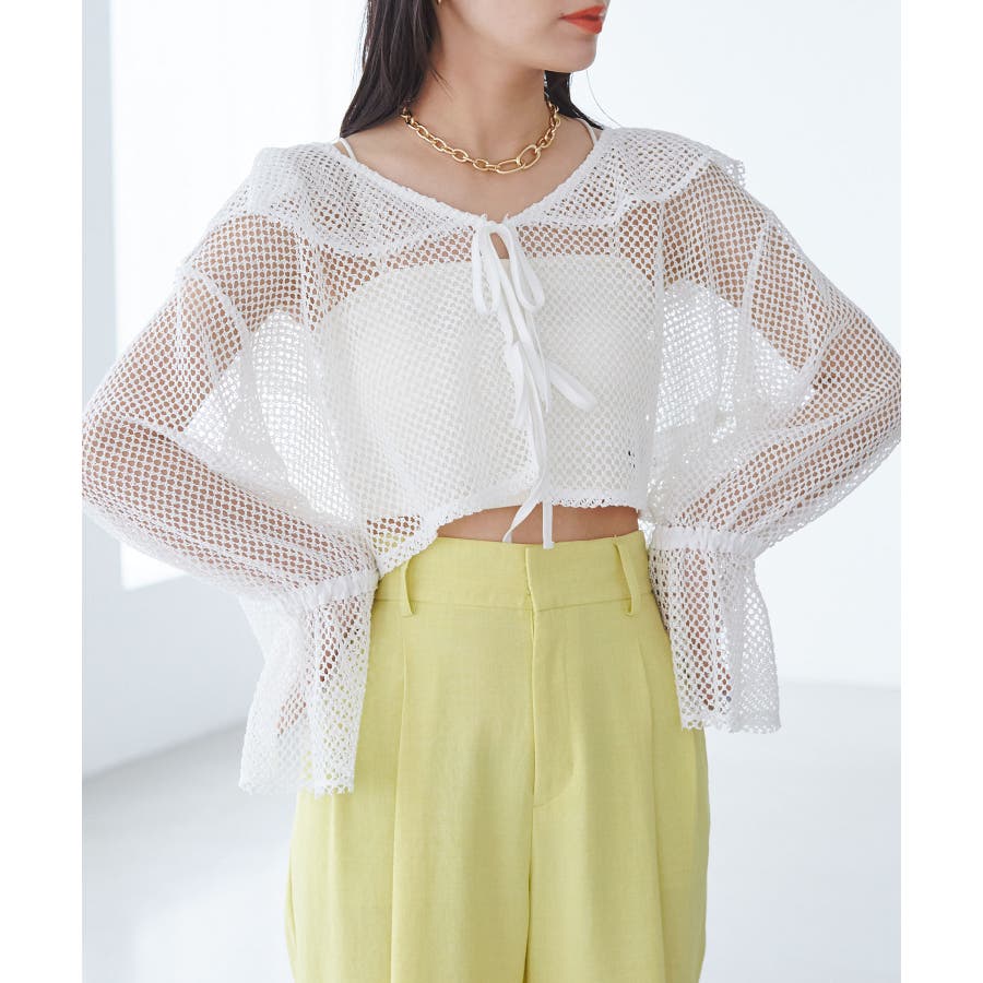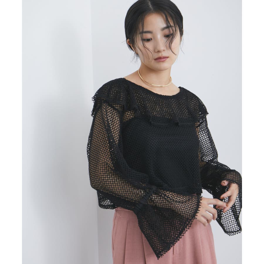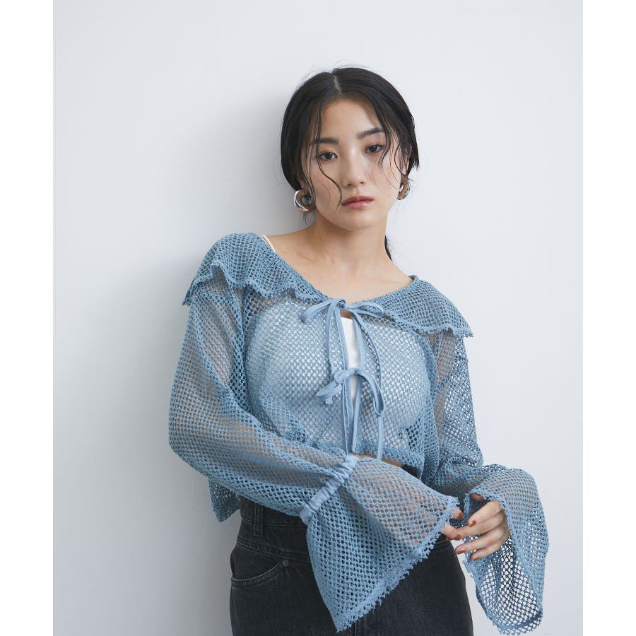 【前後2WAY】メッシュフリルカーディガン