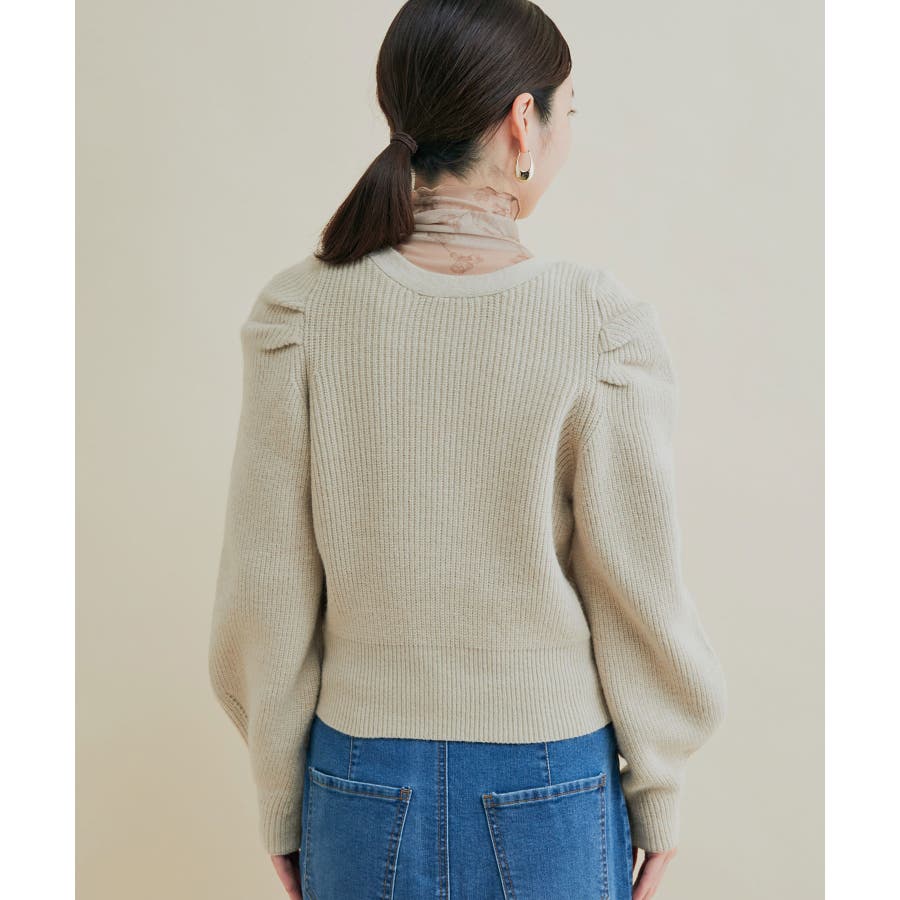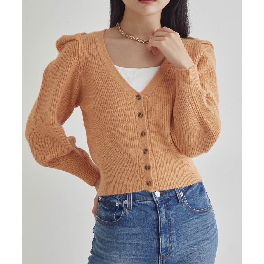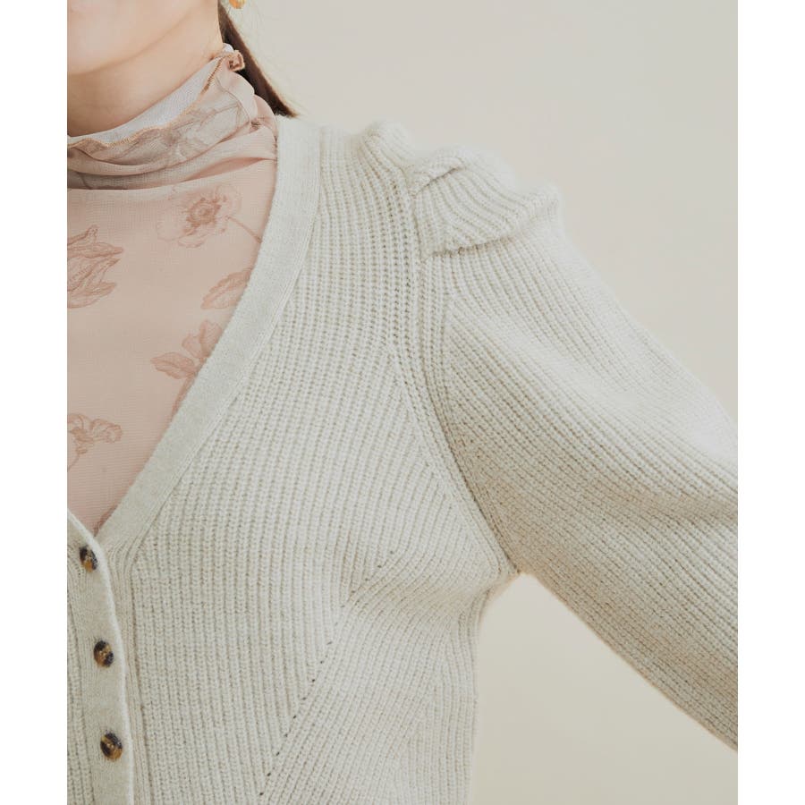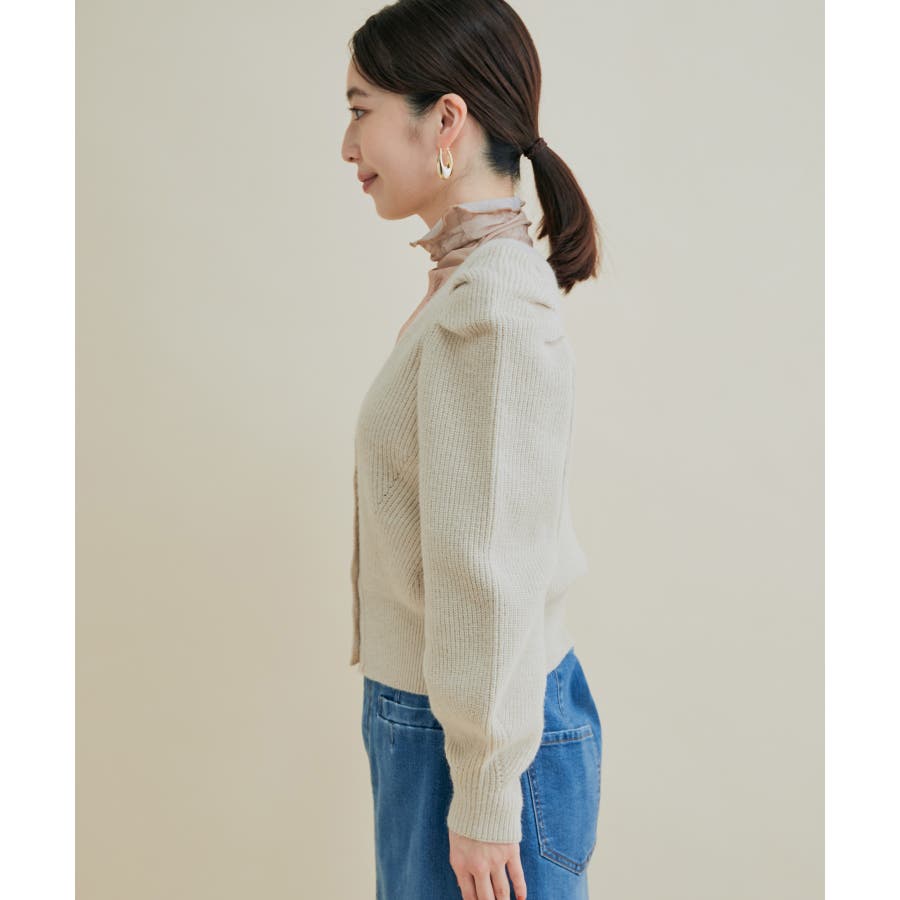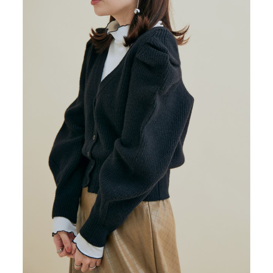 パワショルボリュームスリーブ片畦Vネックカーディガン