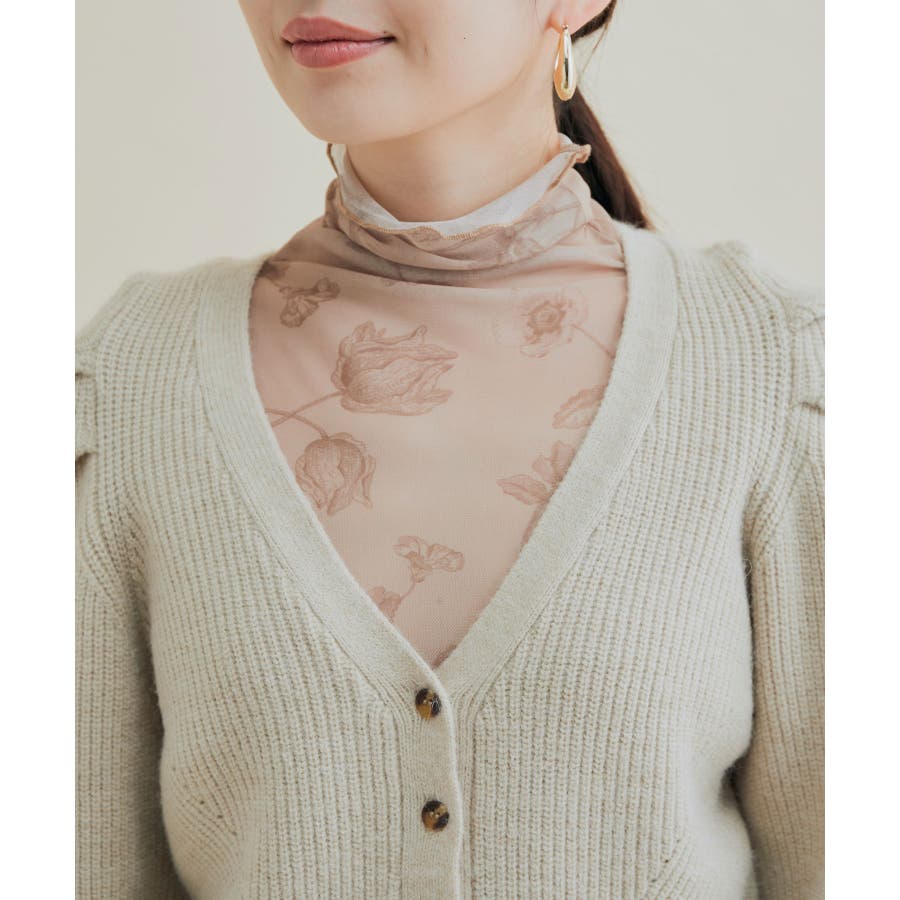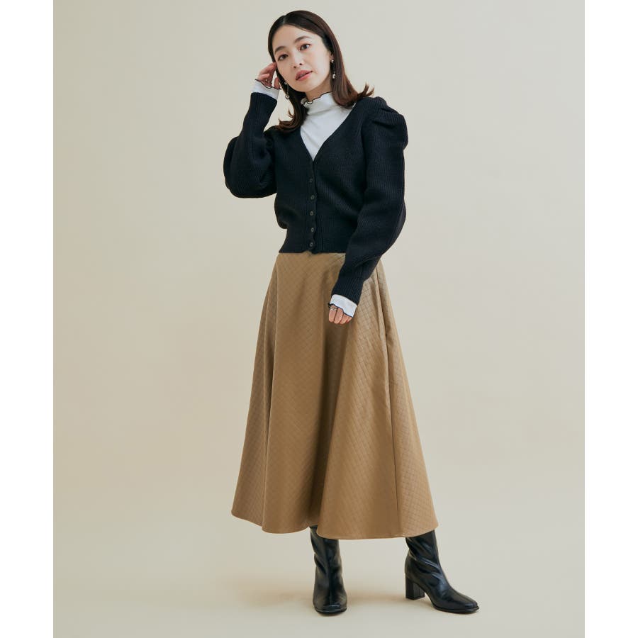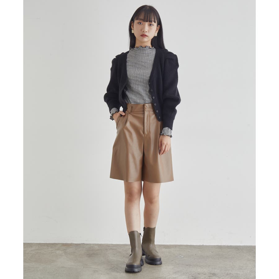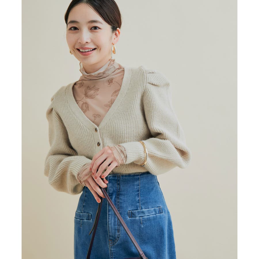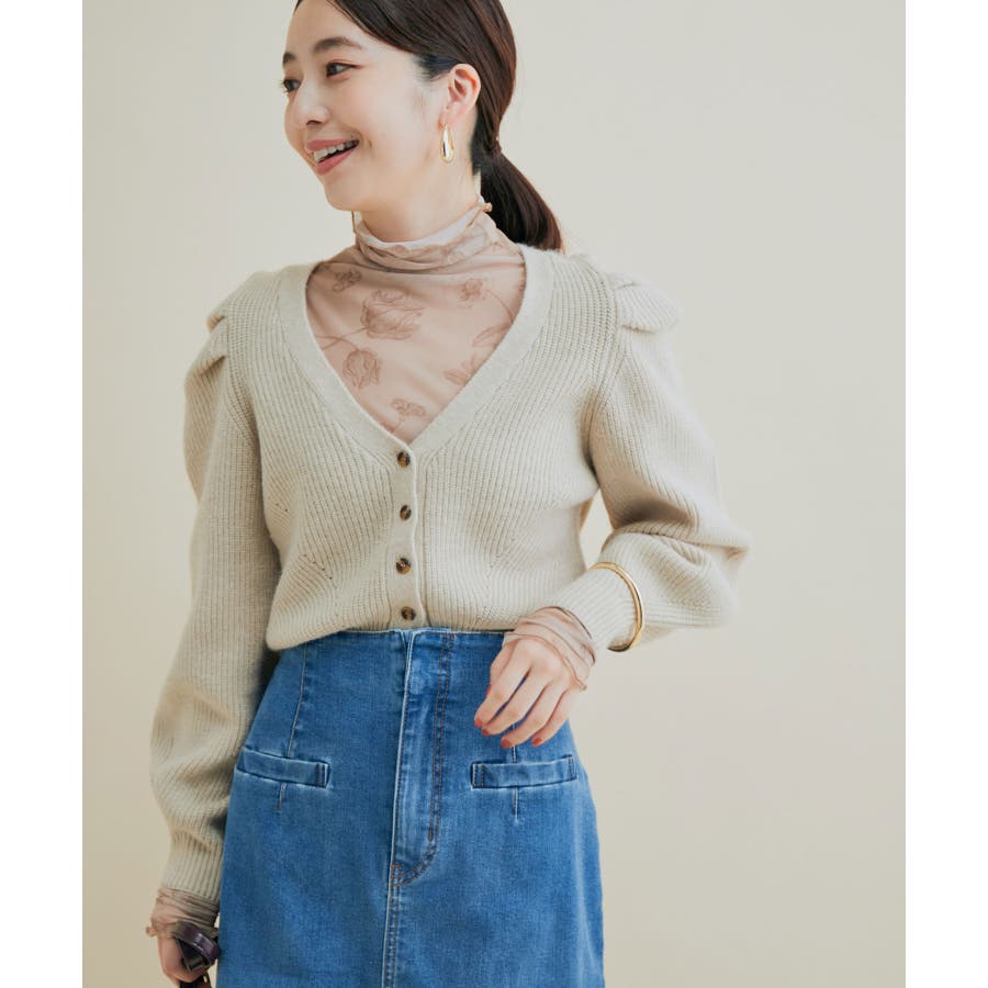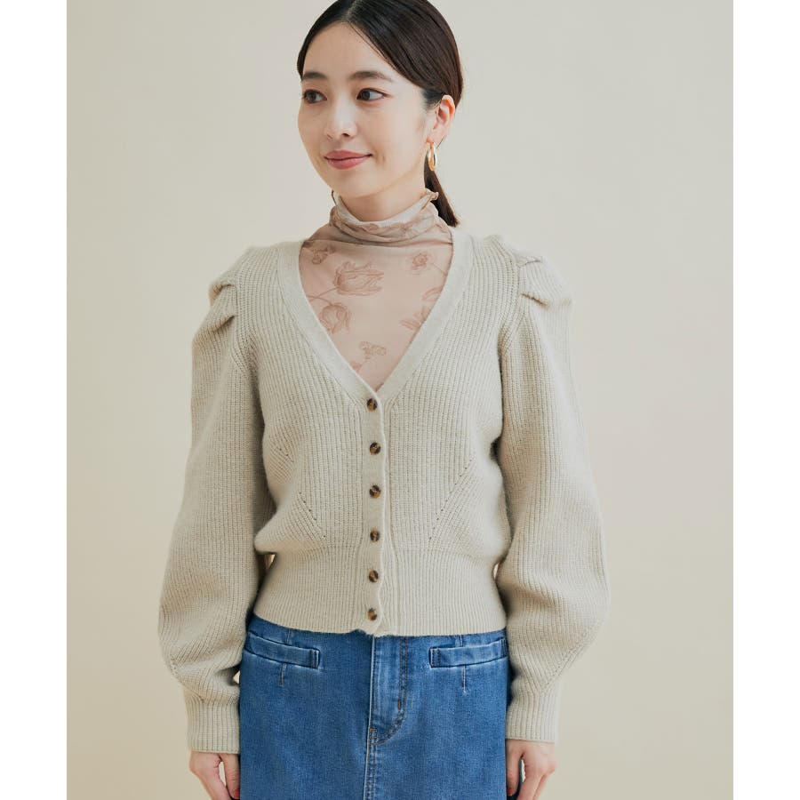 パワショルボリュームスリーブ片畦Vネックカーディガン