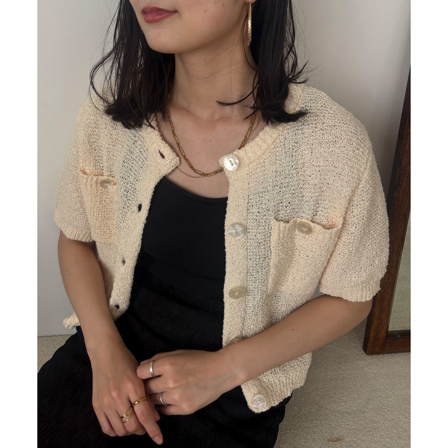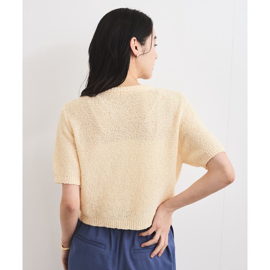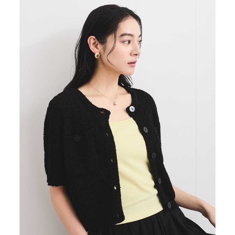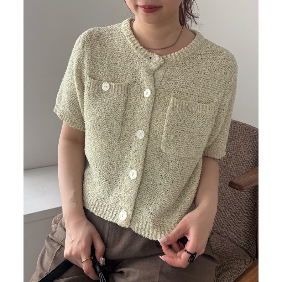 コンパクトなシルエットでどんなボトムにも合わせやすく、プルオーバーとしても着用可能なハーフスリーブカーディガン。