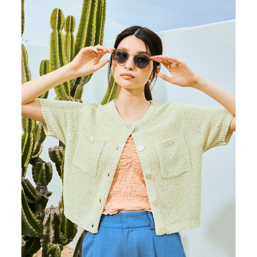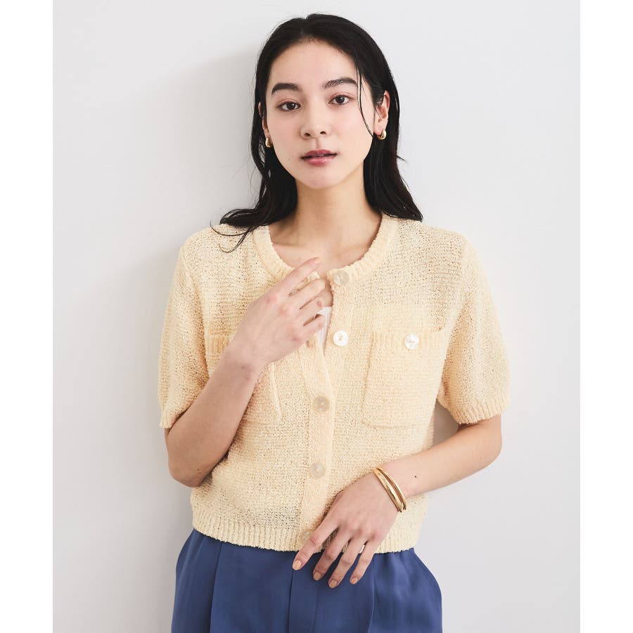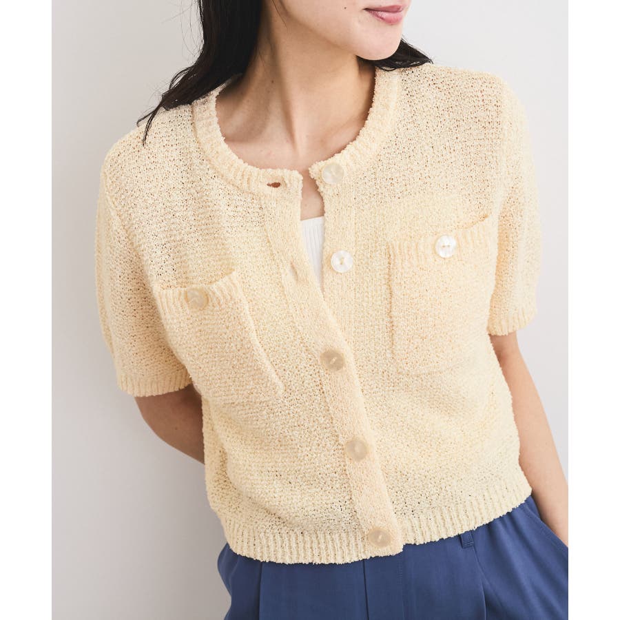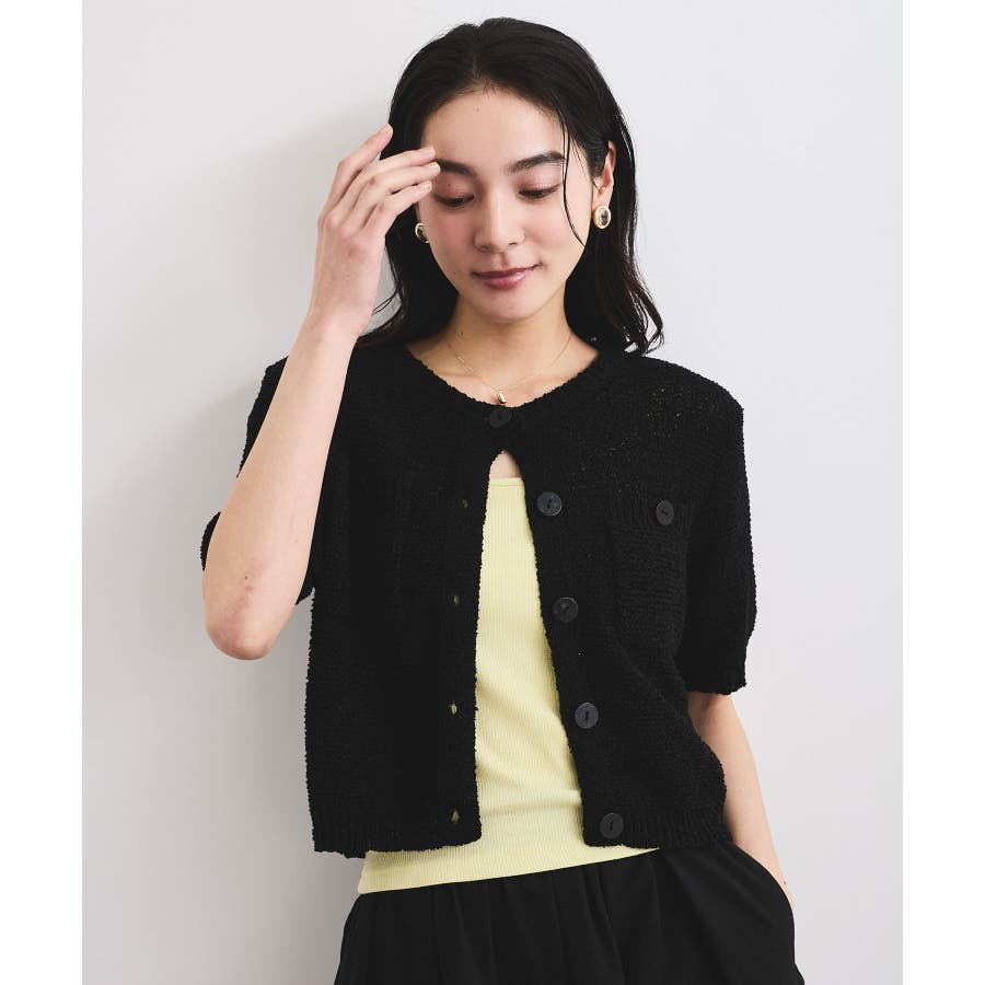 コンパクトなシルエットでどんなボトムにも合わせやすく、プルオーバーとしても着用可能なハーフスリーブカーディガン。