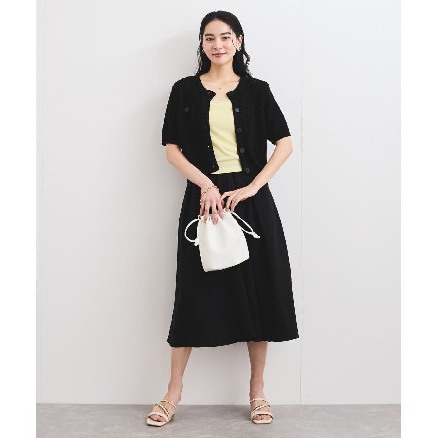 プルオーバーとしてワイドパンツやフレアスカートに合わせたり、ワンピースの上に羽織として合わせてもバランスが取りやすいカーディガン。