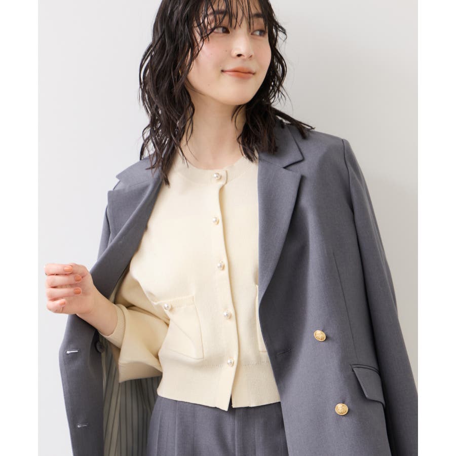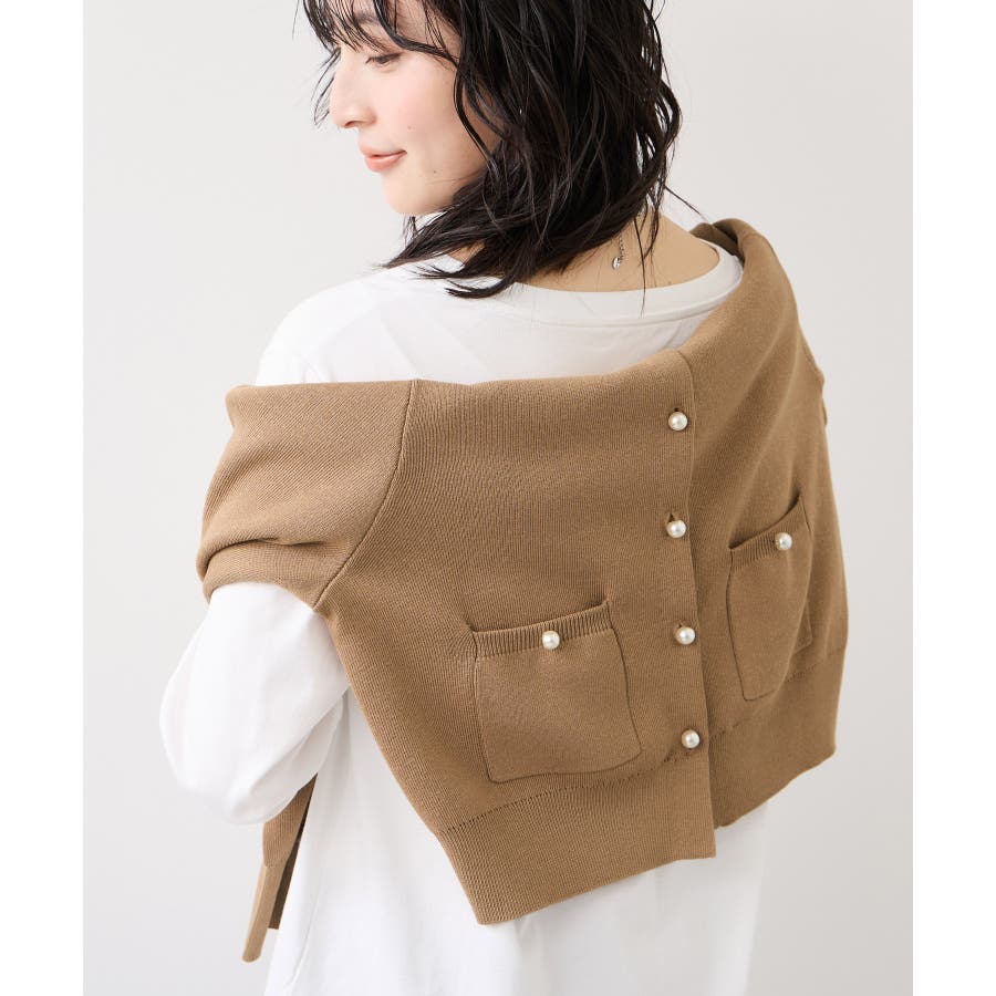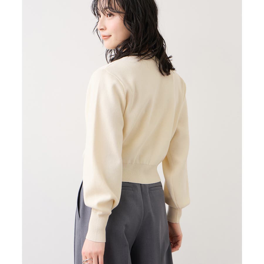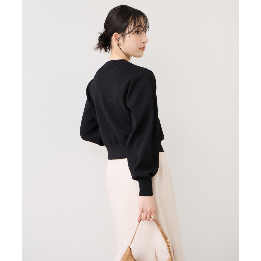 ボタンを止めてプルオーバーとして着用するのもおすすめ。前にポイントがあるので上からアウターを着ても華やかな印象になります。また羽織としても着用しやすいサイジングです。Tシャツの上に羽織るとカジュアルな印象になりデイリーに着用できます。