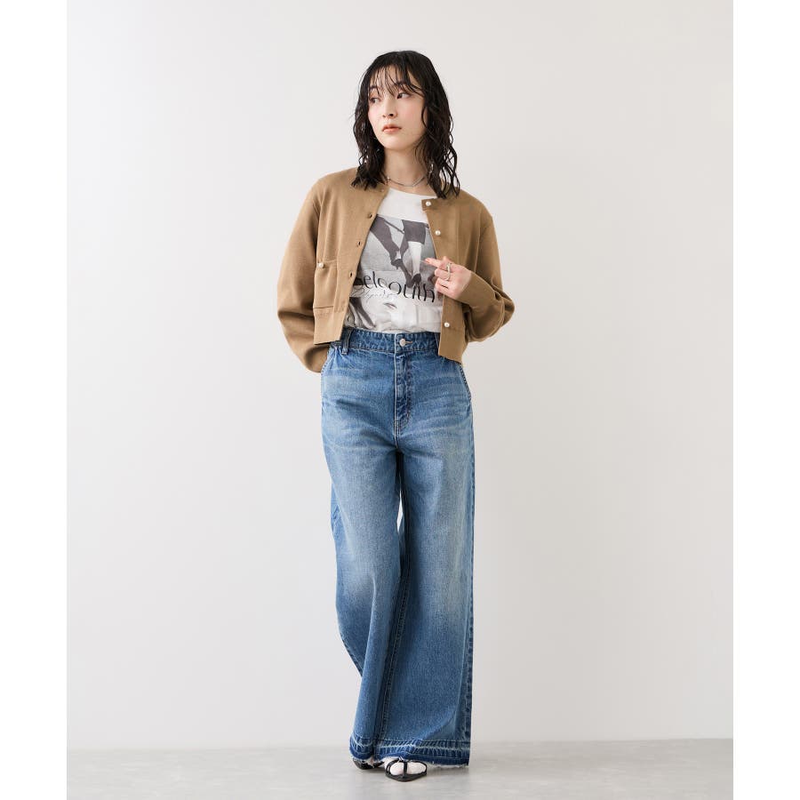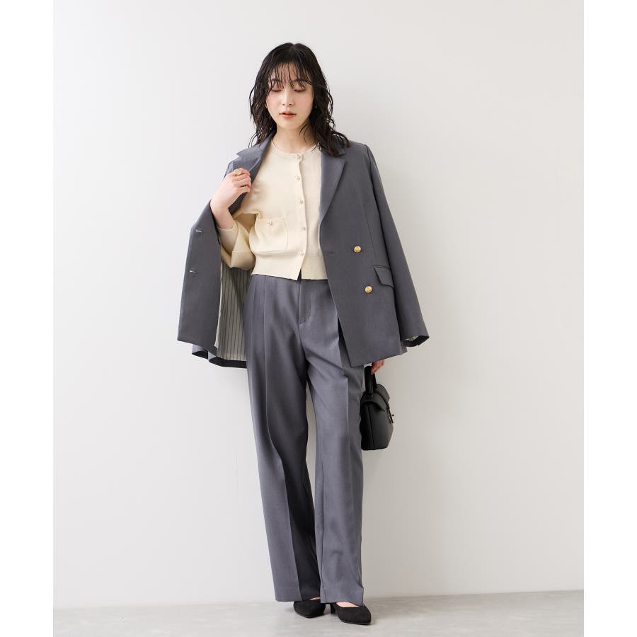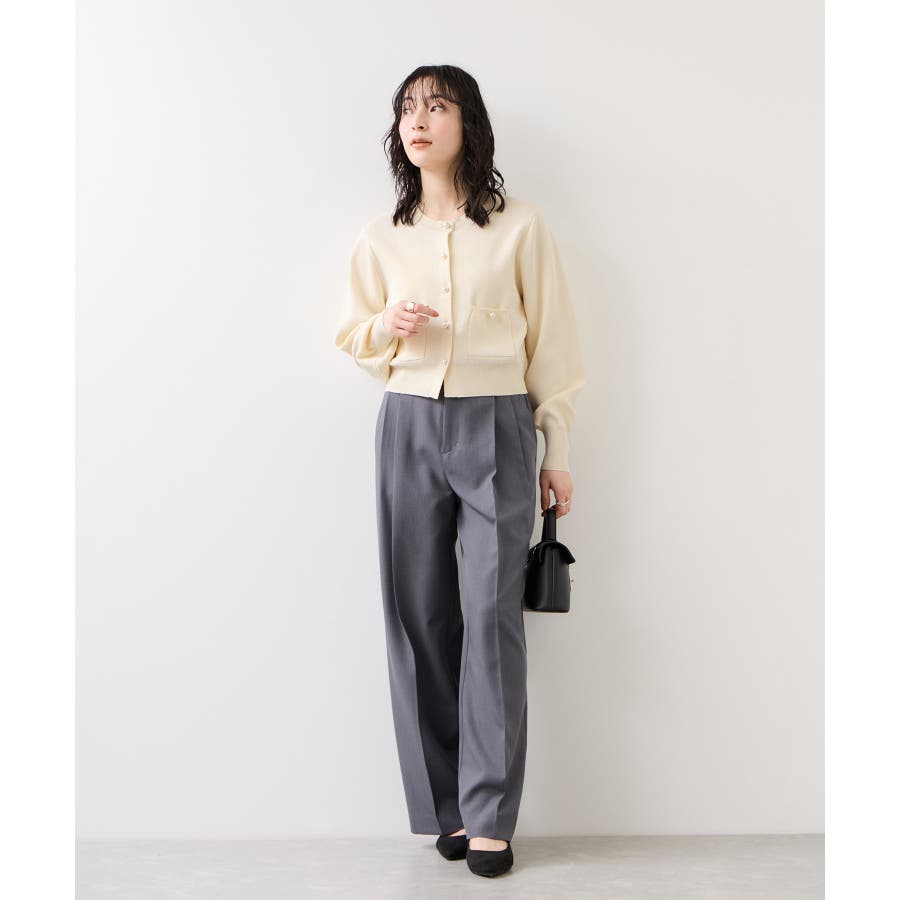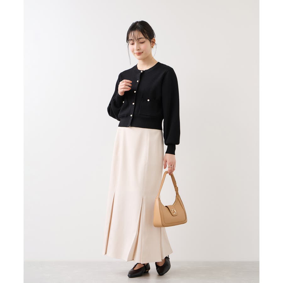 ボタンを止めてプルオーバーとして着用するのもおすすめ。前にポイントがあるので上からアウターを着ても華やかな印象になります。また羽織としても着用しやすいサイジングです。Tシャツの上に羽織るとカジュアルな印象になりデイリーに着用できます。