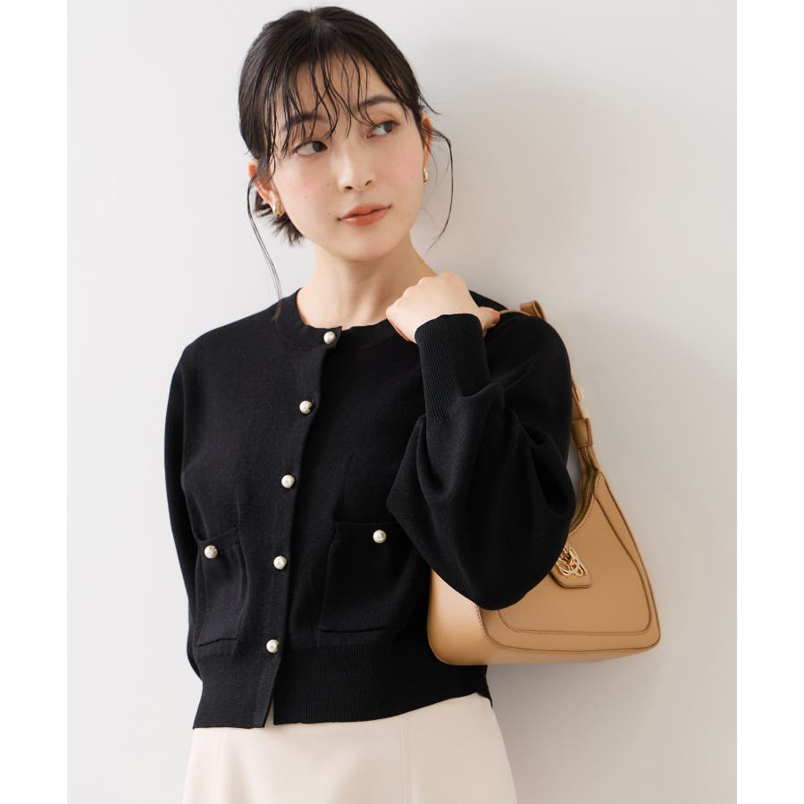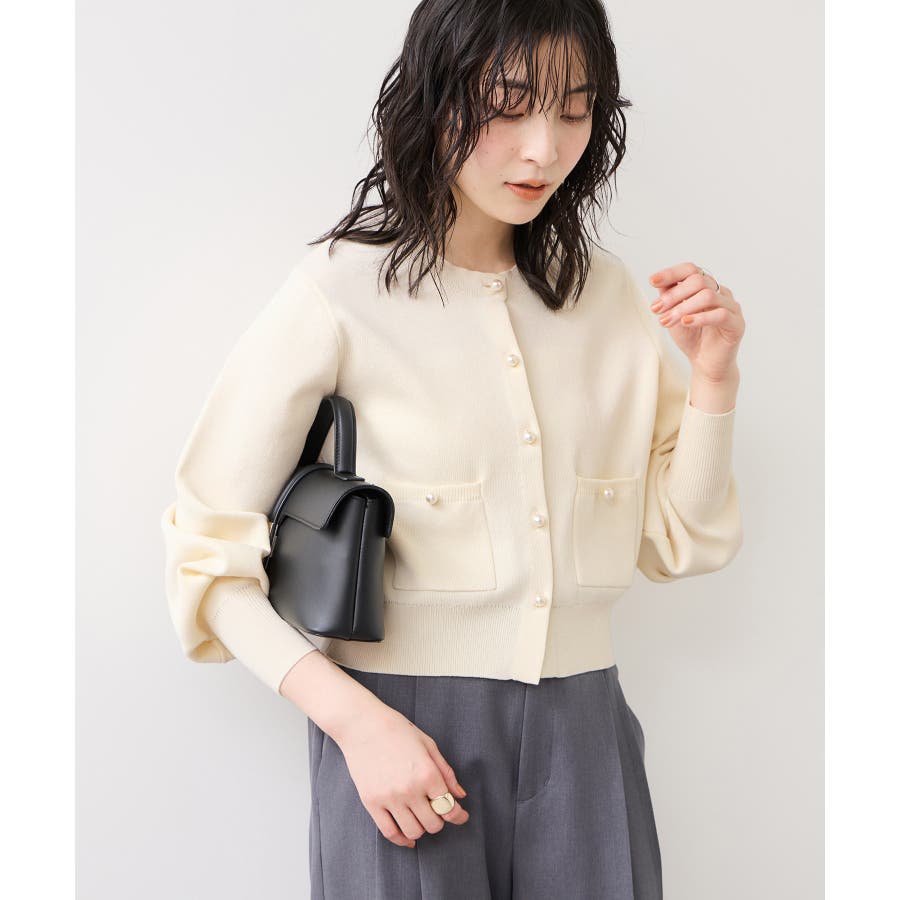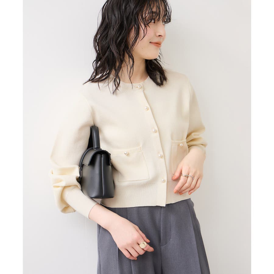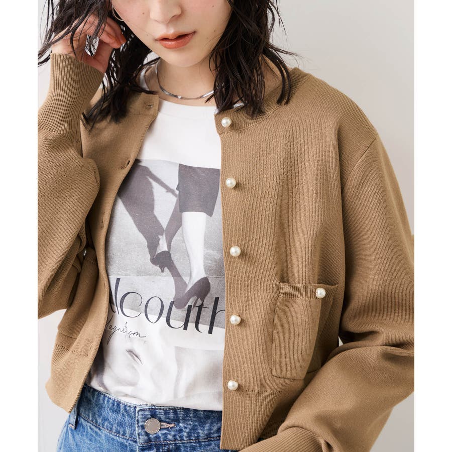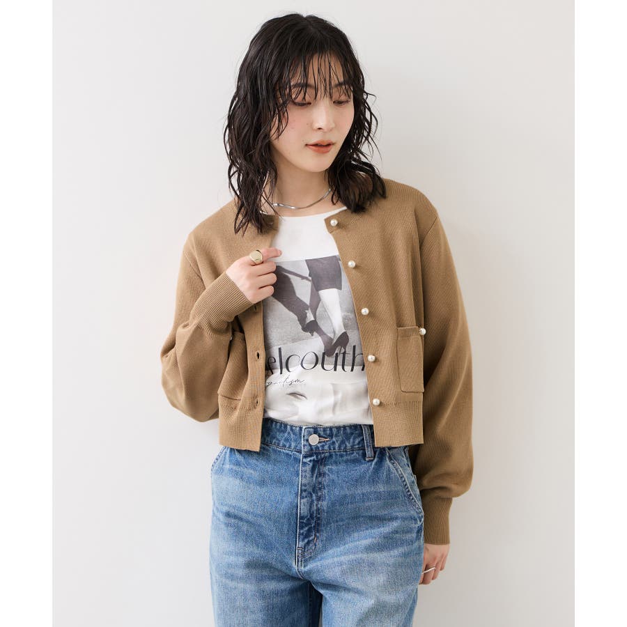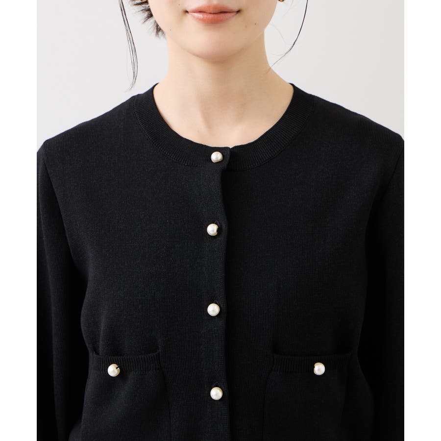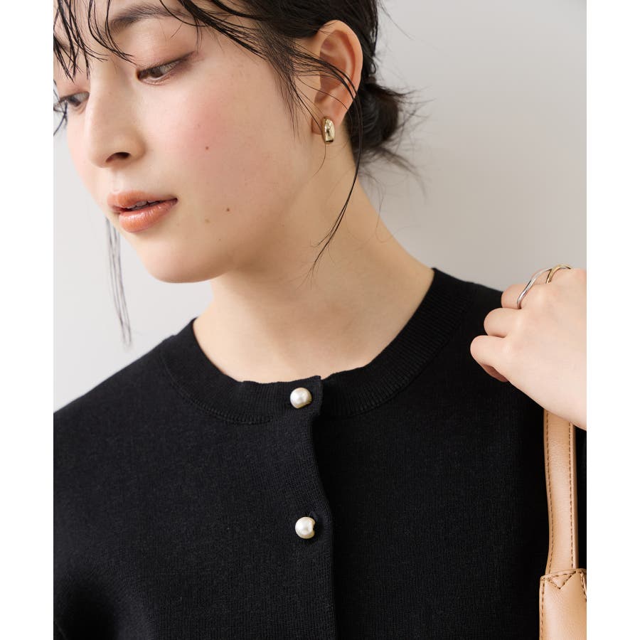 クルーネックのシンプルなデザインの中にパールをあしらいアクセントのある使いやすい1枚に仕上げています。