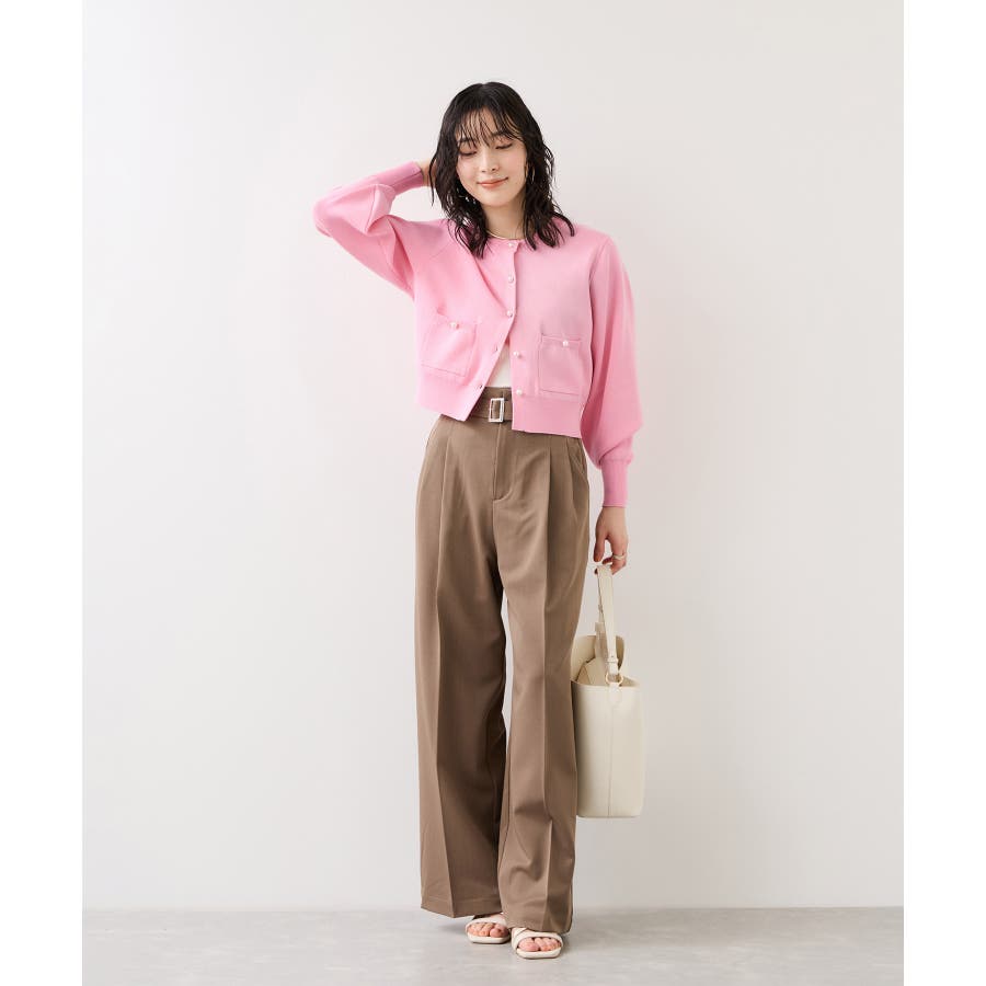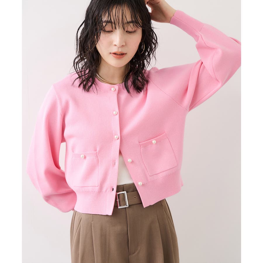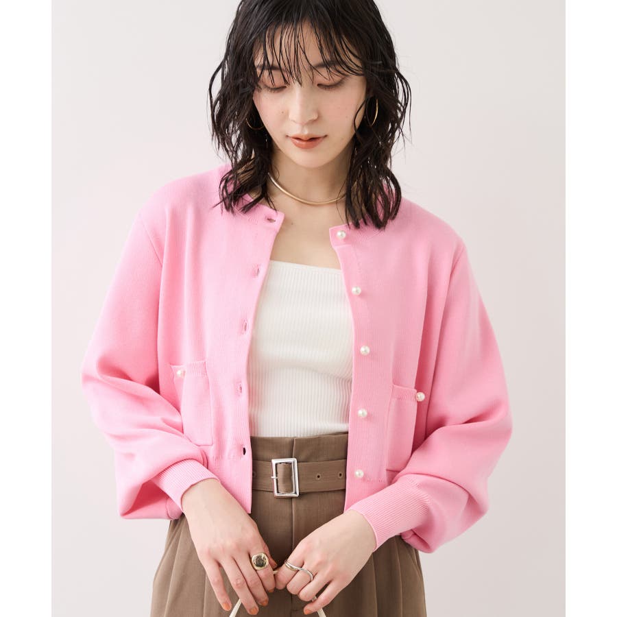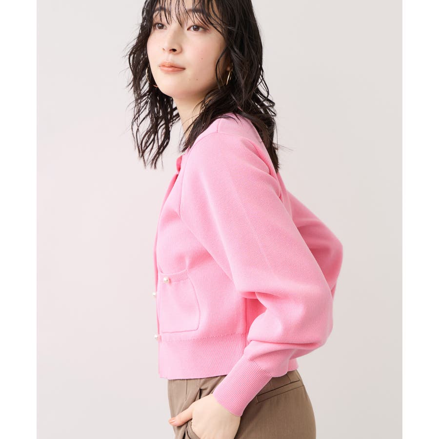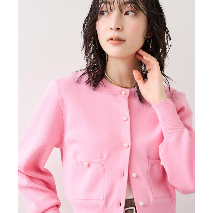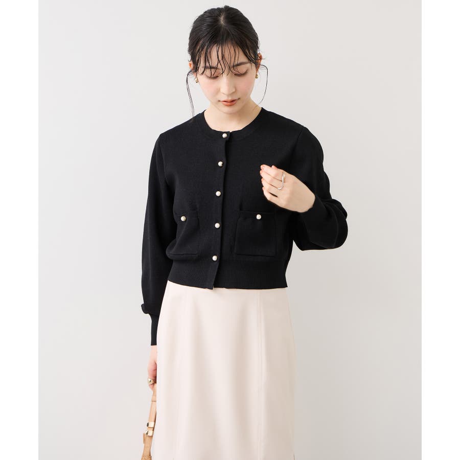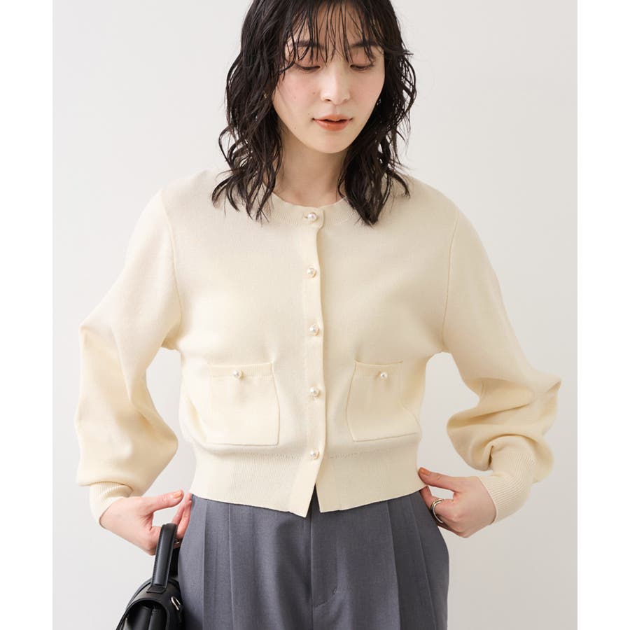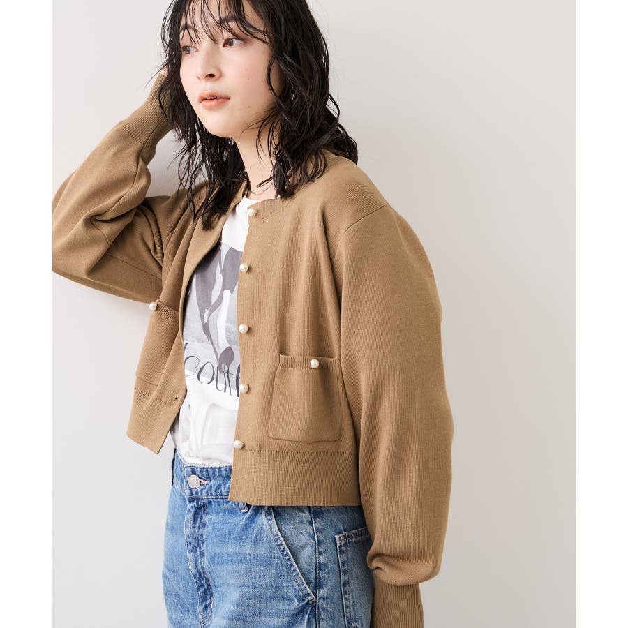 クルーネックのシンプルなデザインの中にパールをあしらいアクセントのある使いやすい1枚に仕上げています。