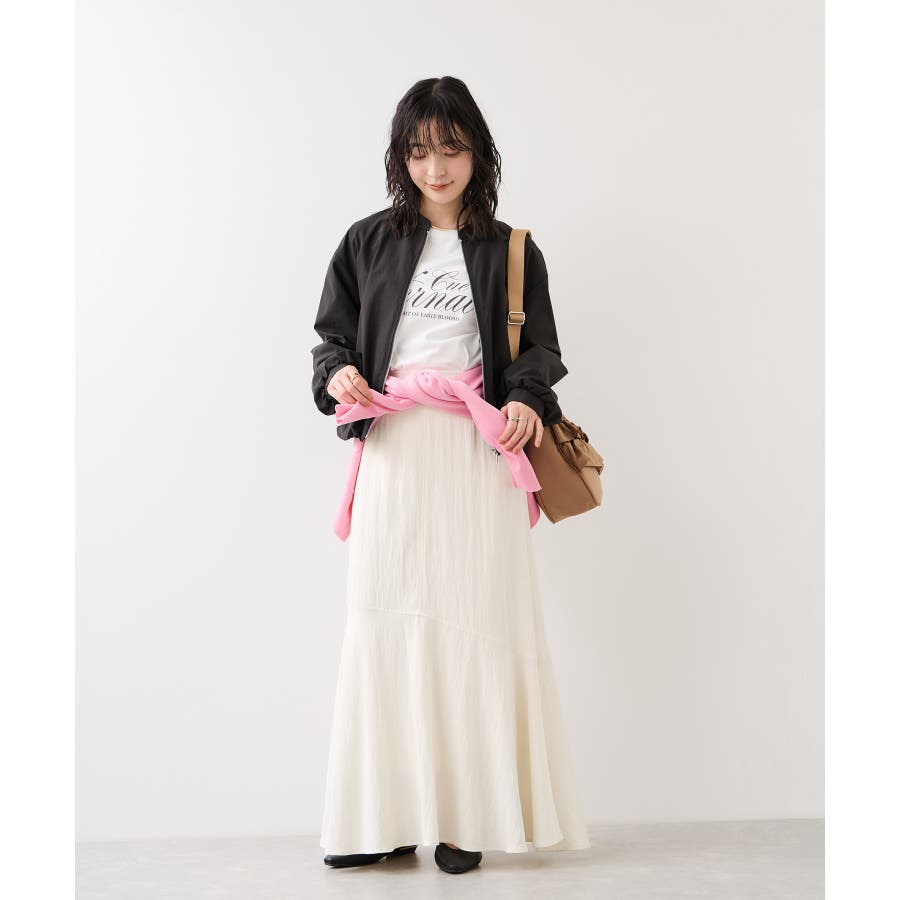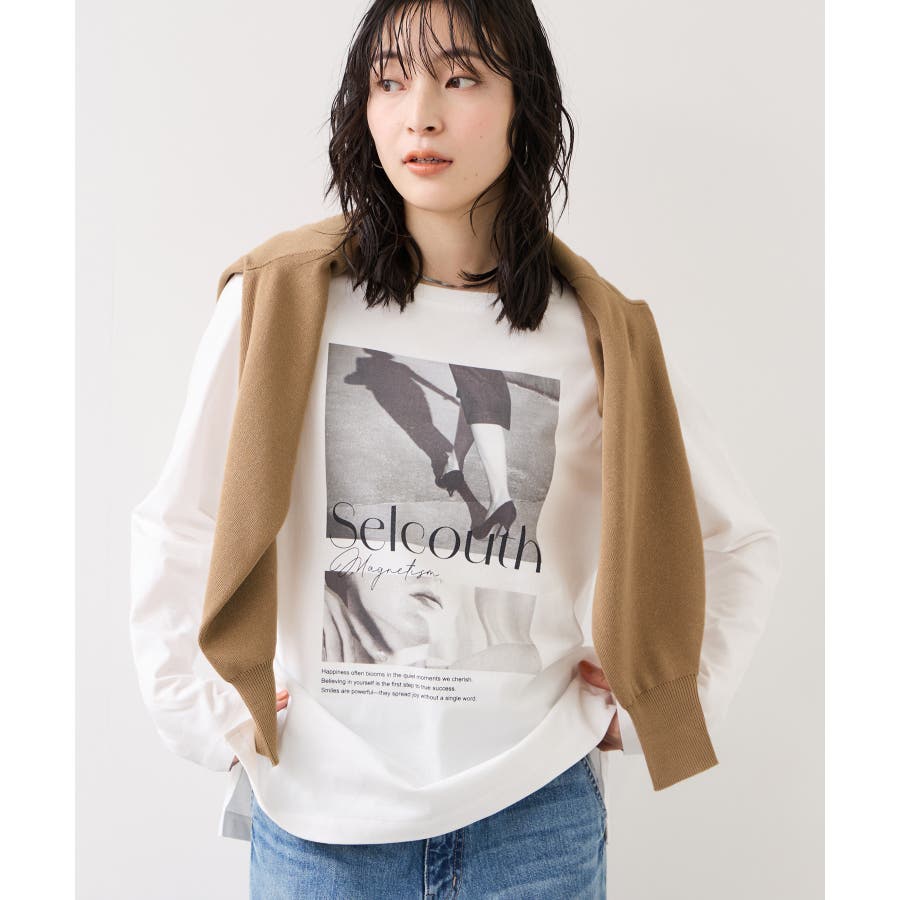 伸縮性がありながらも伸びにくく、体のラインを拾いすぎないため、Tシャツ感覚で着られたり、重ね着に使いやすかったり、きちんと感のあるきれいめな印象を与えます。