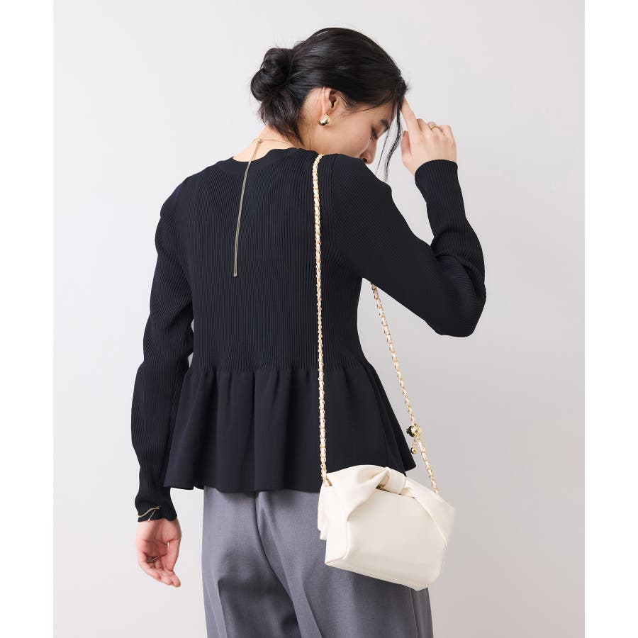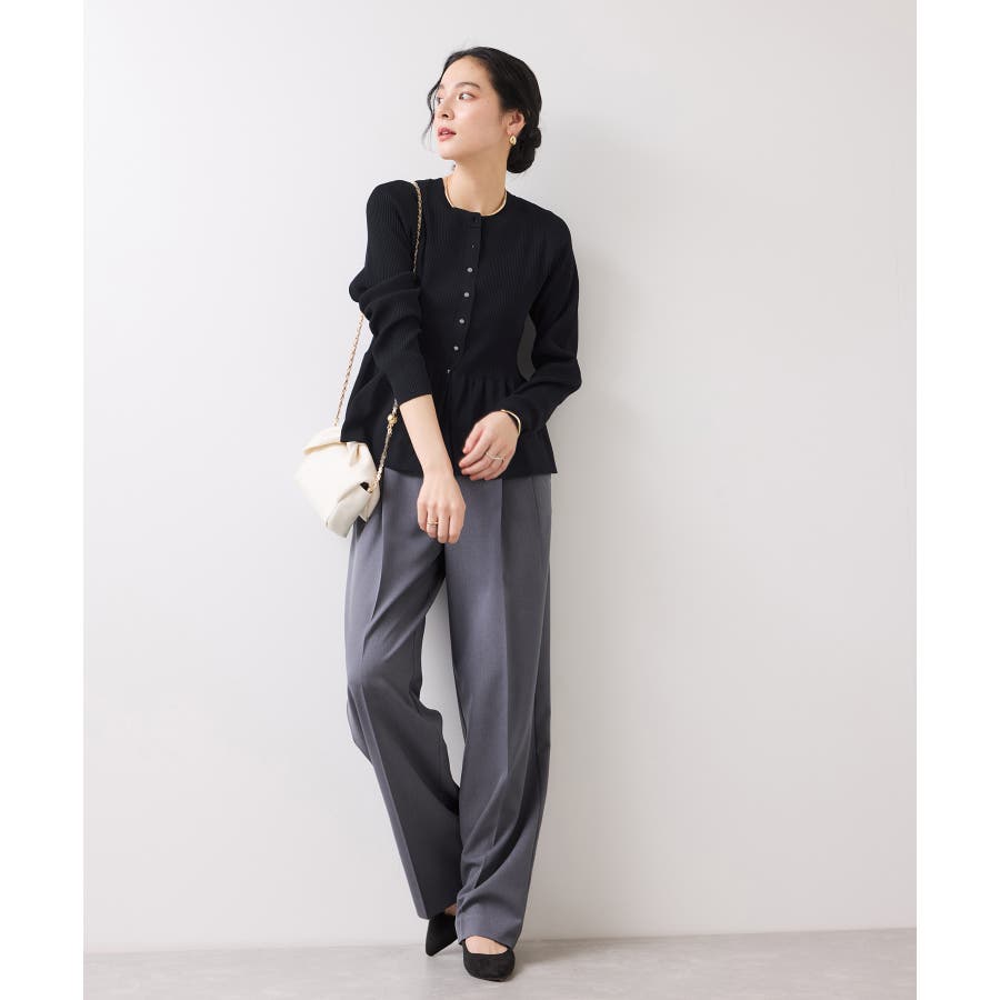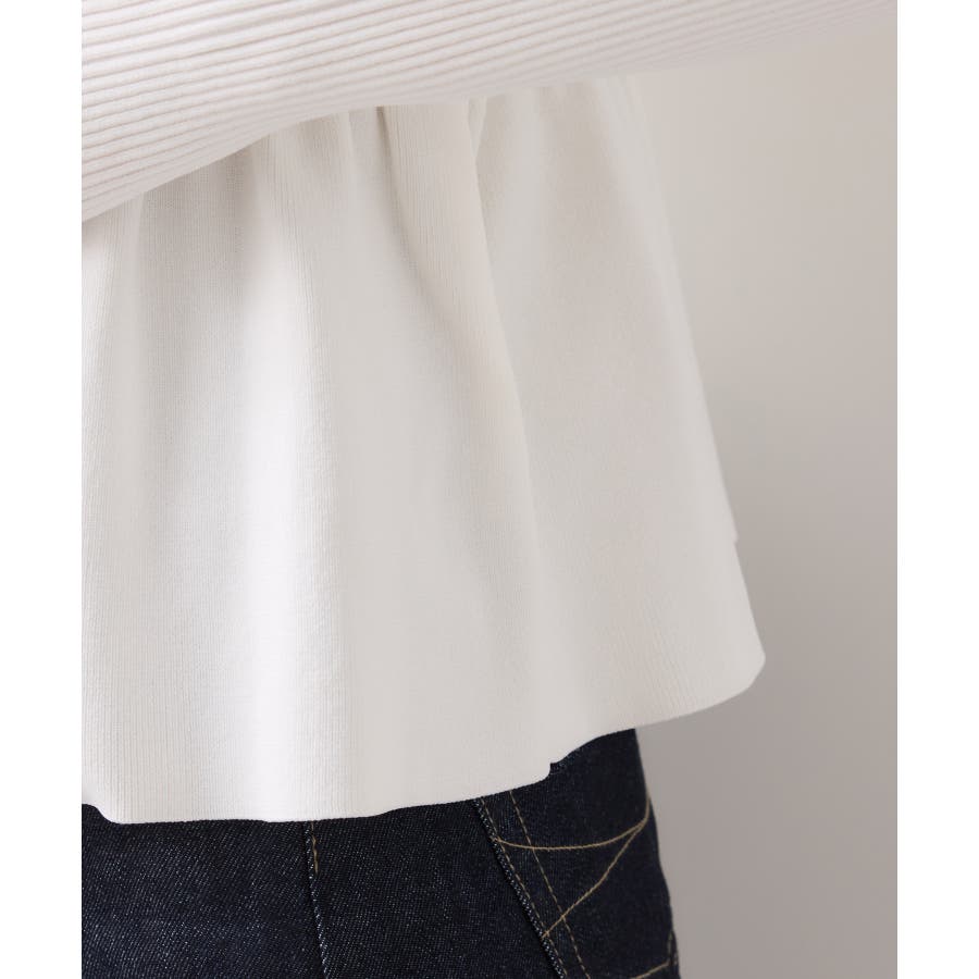 縦のラインを意識した身頃と程よいふくらみの裾ペプラムのコントラストで1枚で着映えします。