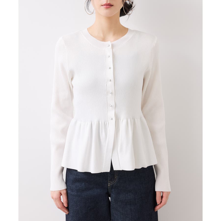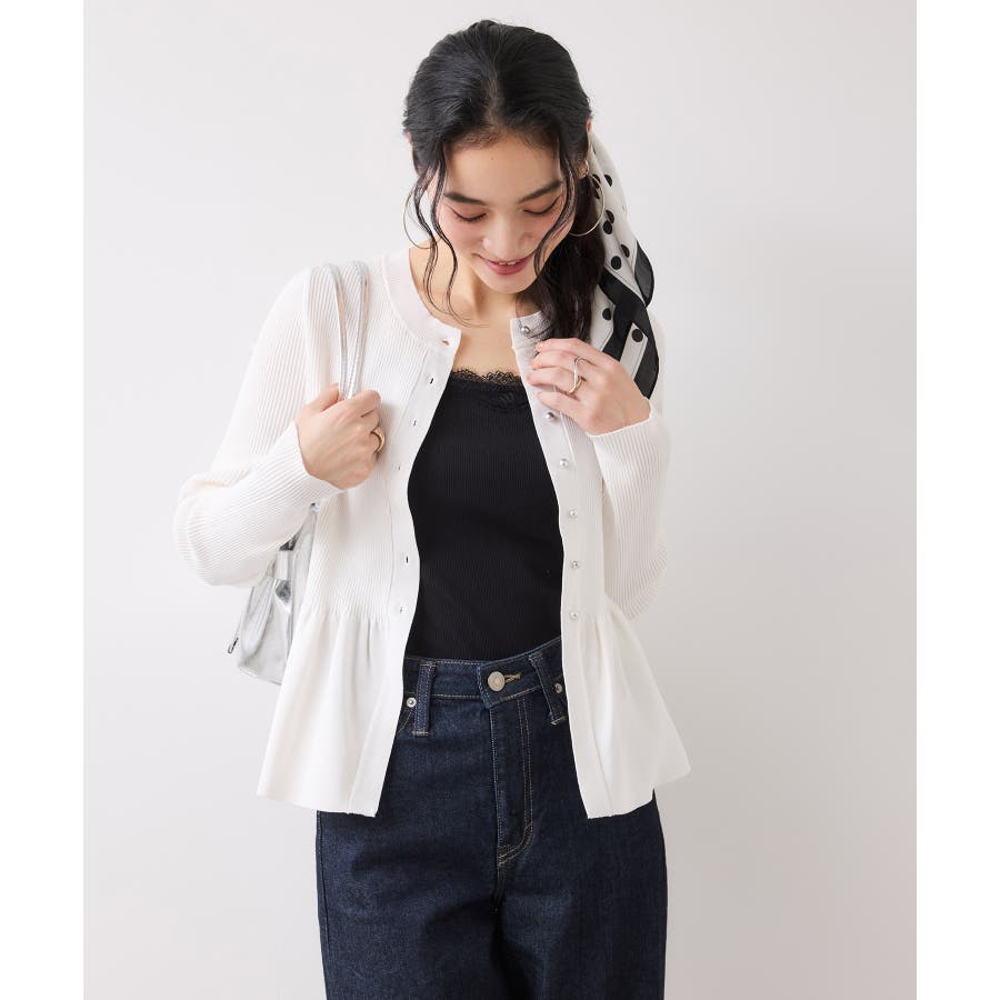 人気のぺプラム切替ニットが春夏素材で登場!一枚で着映え&美シルエットが叶うするペプラムニットカーディガン