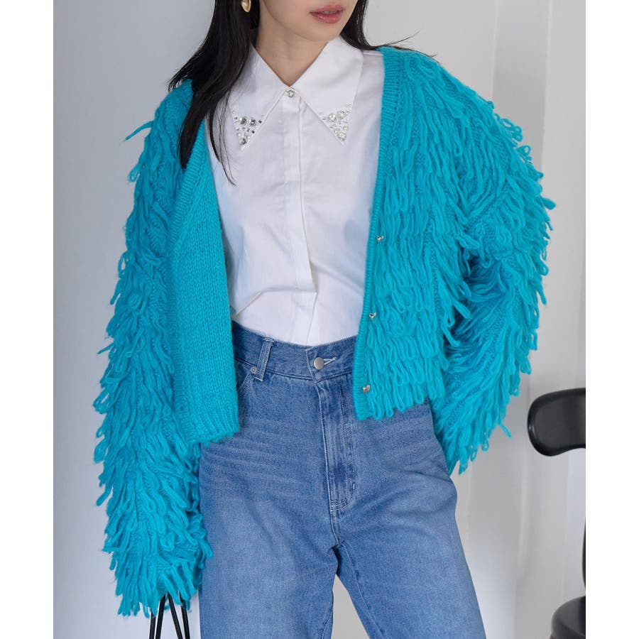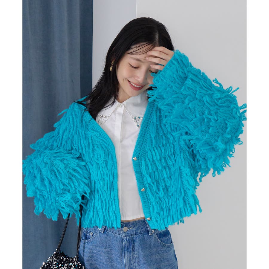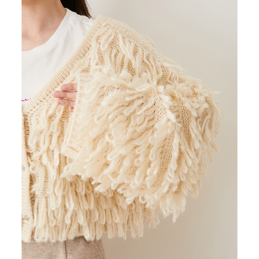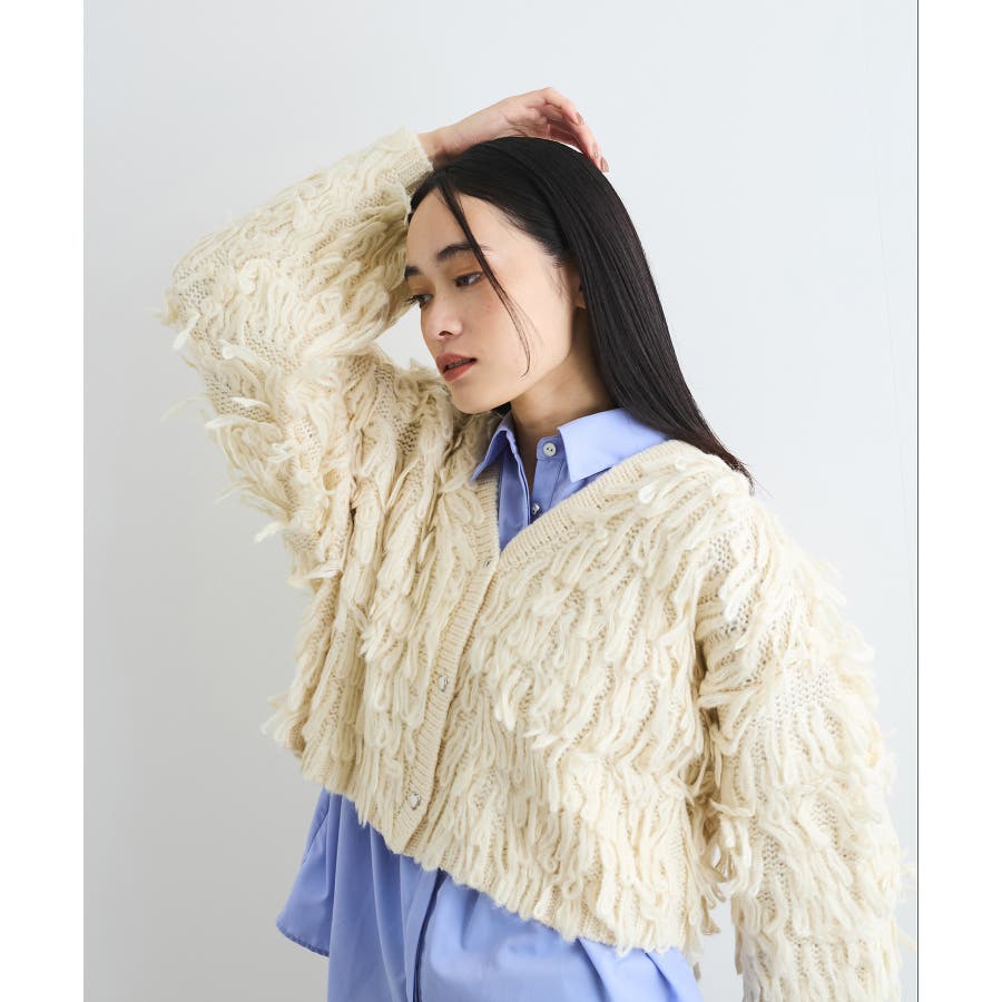 ◆2024 秋冬◆ 【デザイン・シルエット】 ループフリンジが特徴的なボリュームカーディガンです。