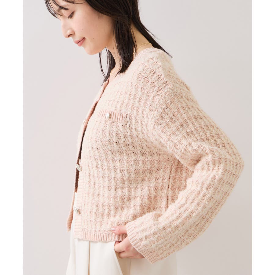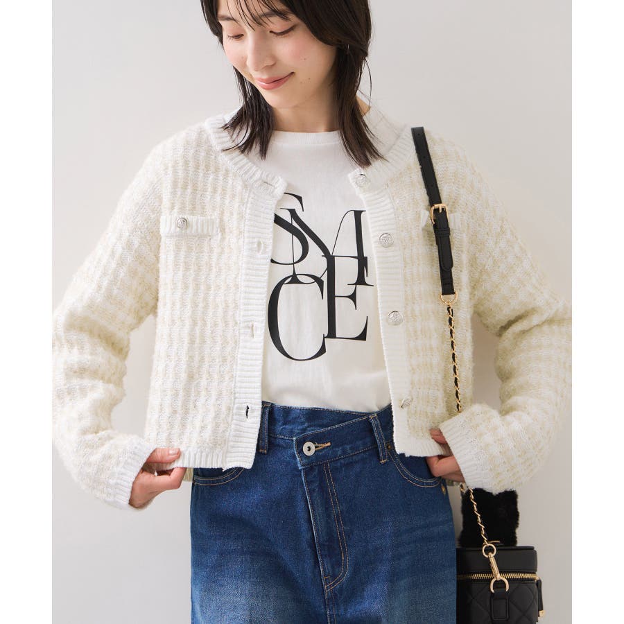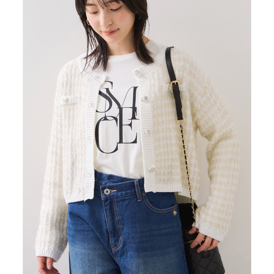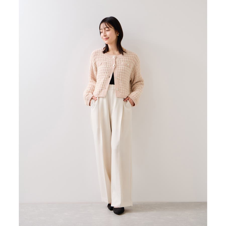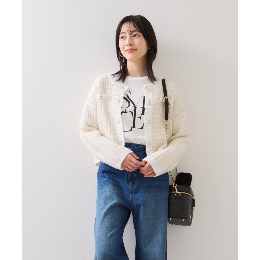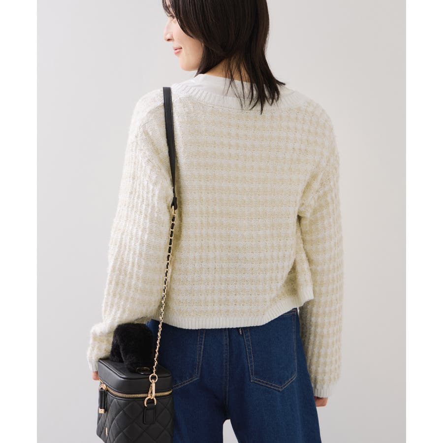 ・ファンシーな糸を織り交ぜツイード感を表見。程よくラメも入り華やかさもプラス。