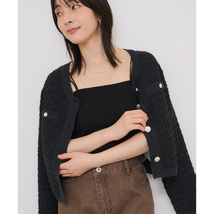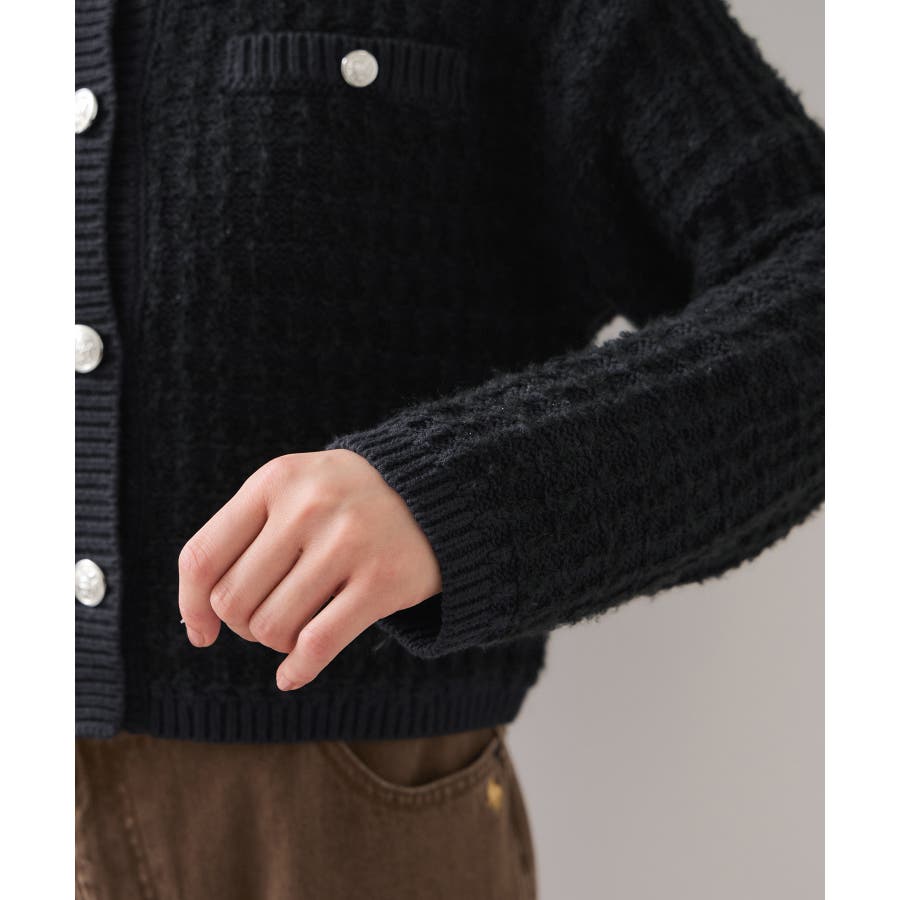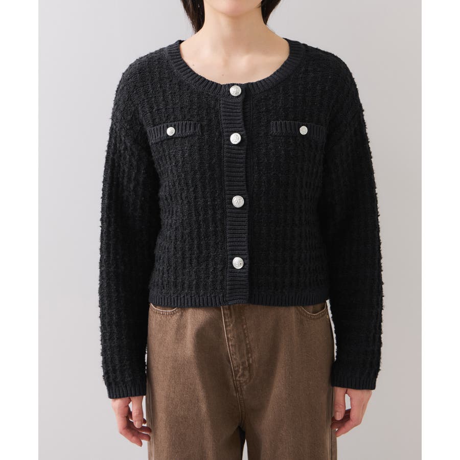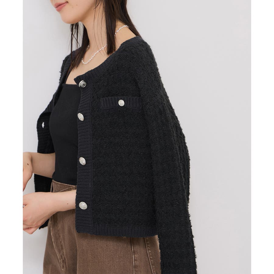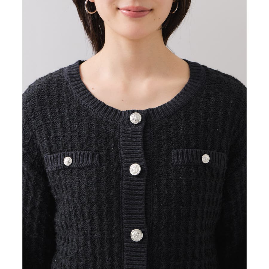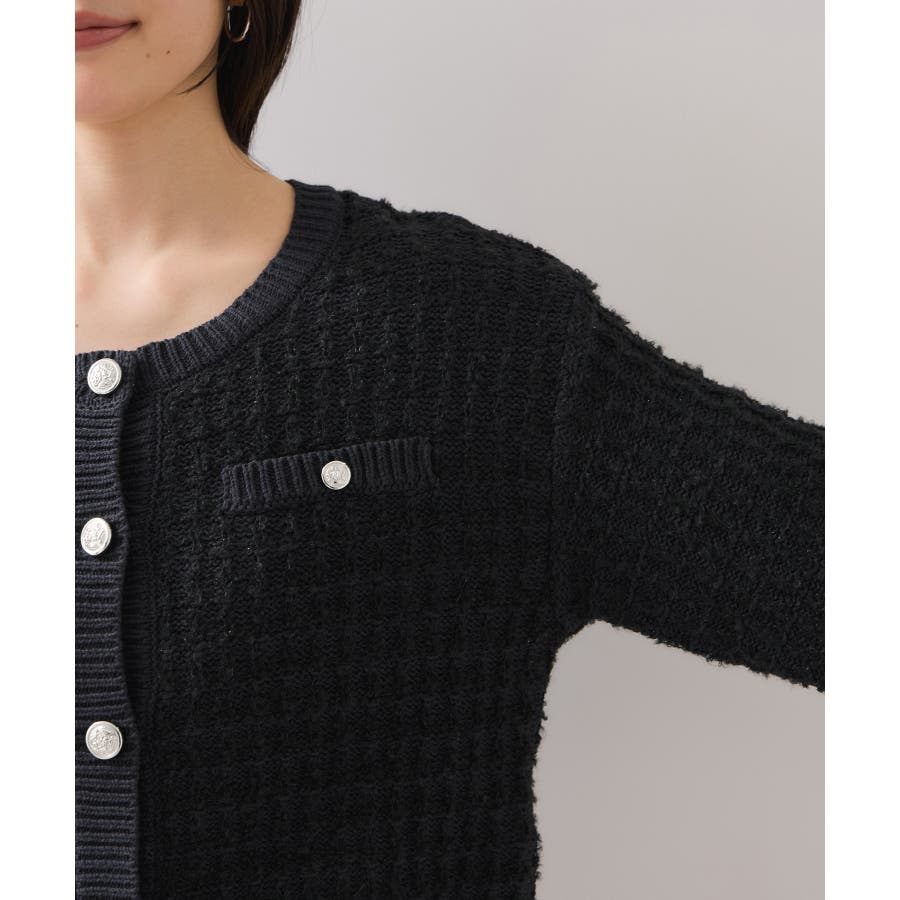 ・ファンシーな糸を織り交ぜツイード感を表見。程よくラメも入り華やかさもプラス。