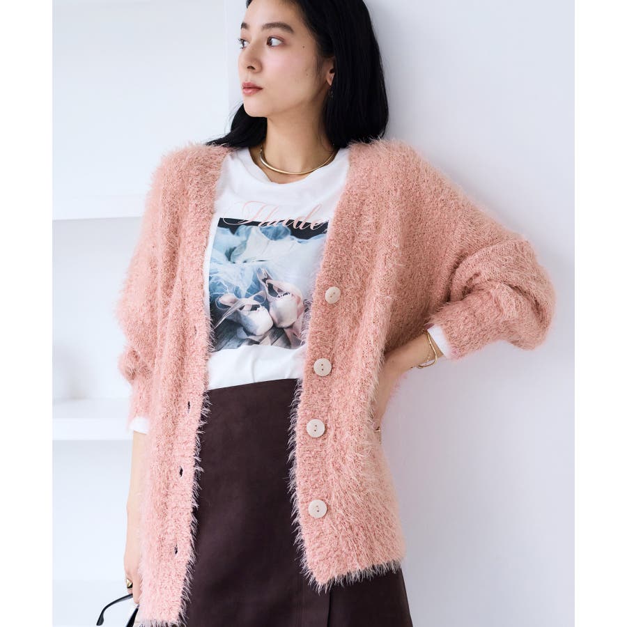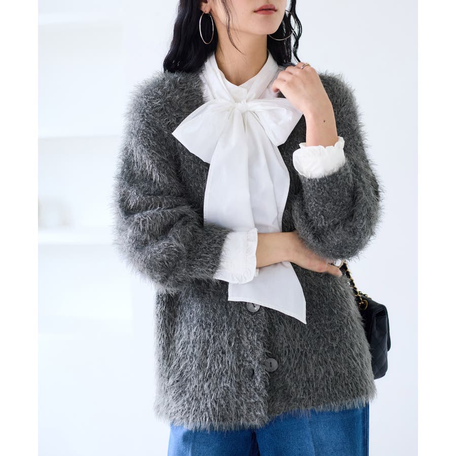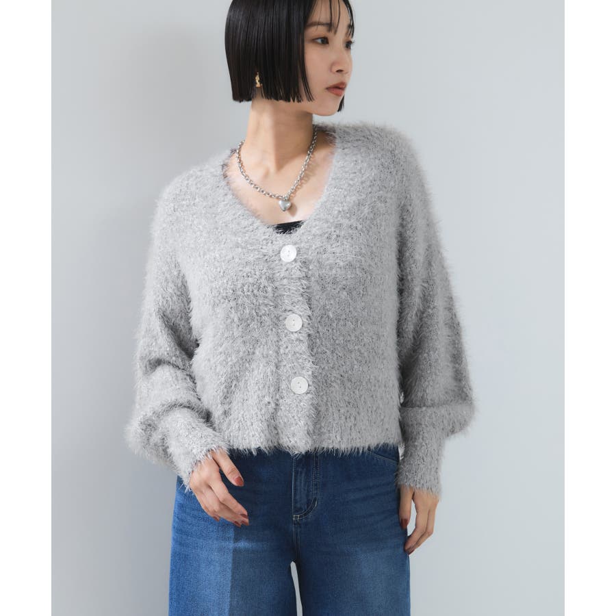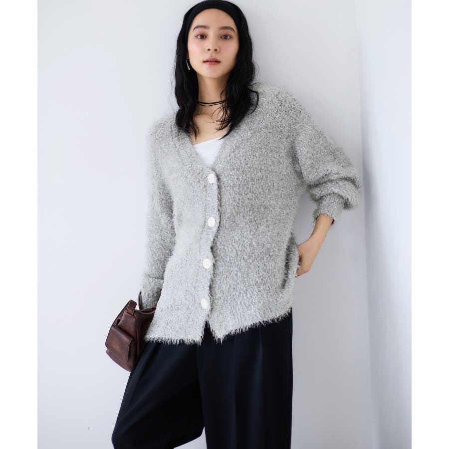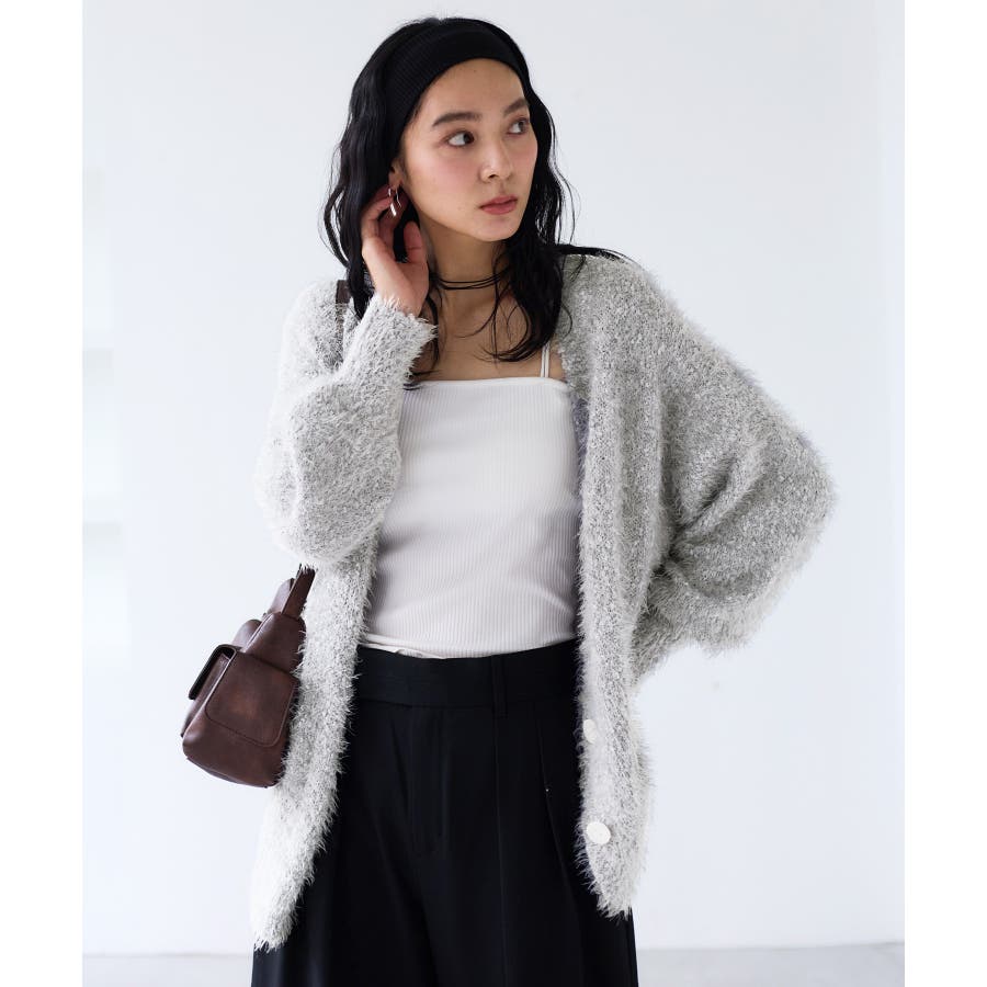 ポップコーンヤーンラメフェザーニットカーディガン/WEB限定FSサイズ