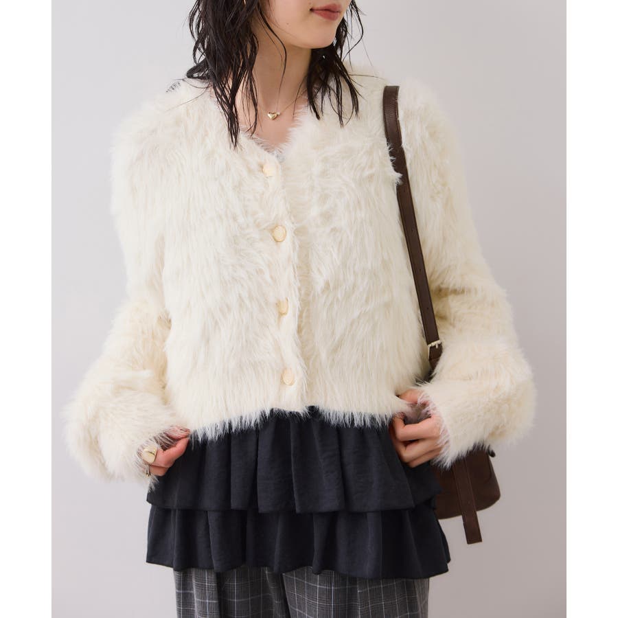 ・モフモフとした毛足が癒しにもなるニットカーディガン