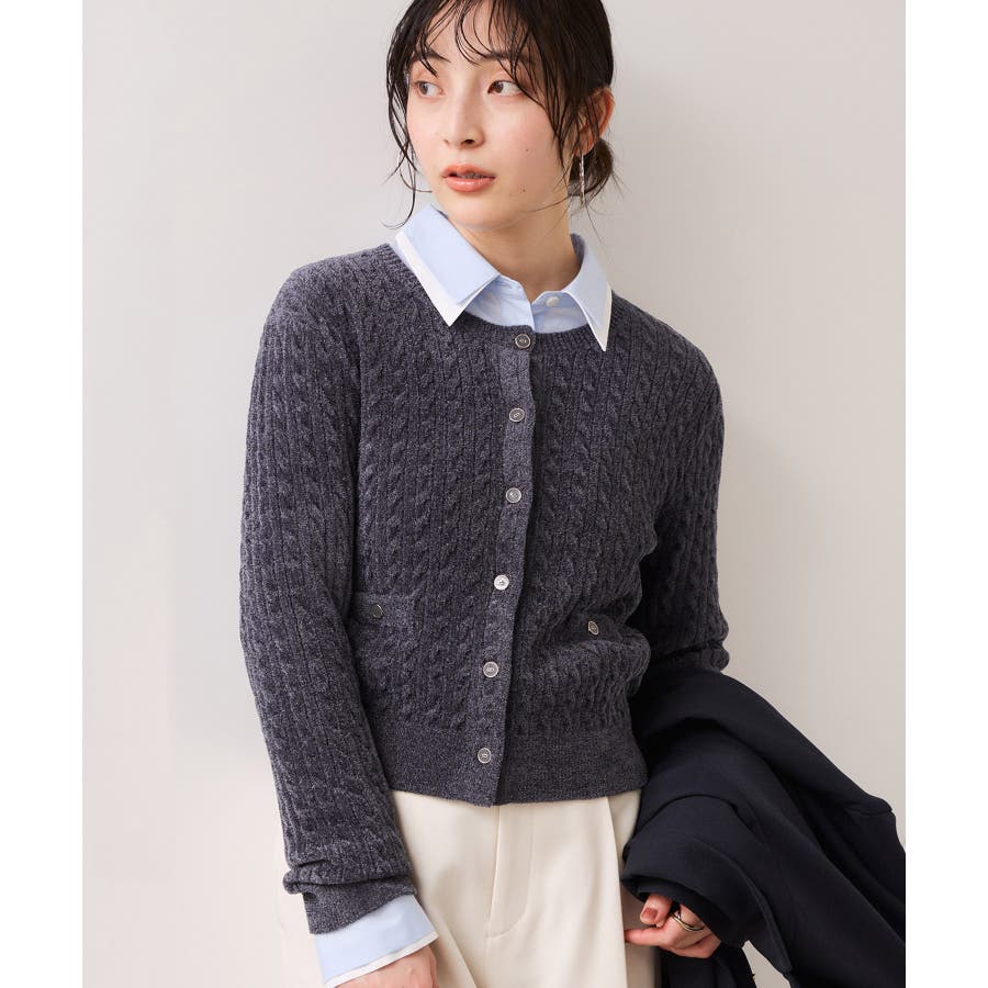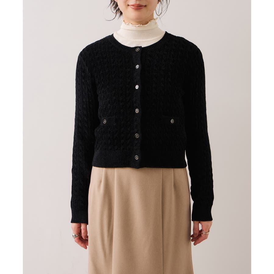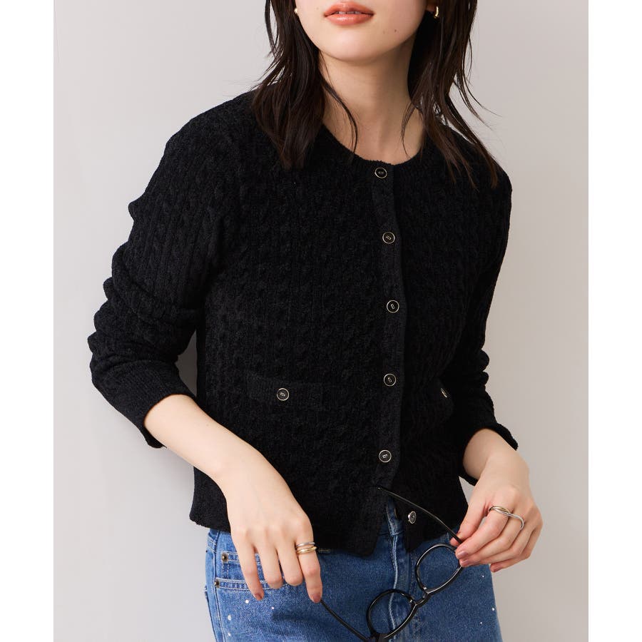 いつまでも触っていたくなるようなもちもちのモールニットで着心地の良いカーディガン。