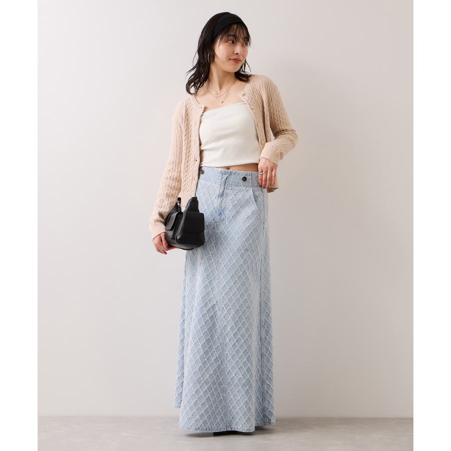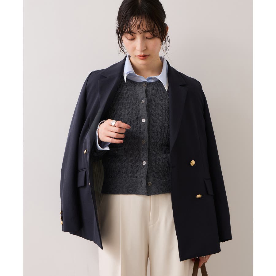 着丈もコンパクトなので、スカートもパンツも選ばずに着ていただけるデザイン。