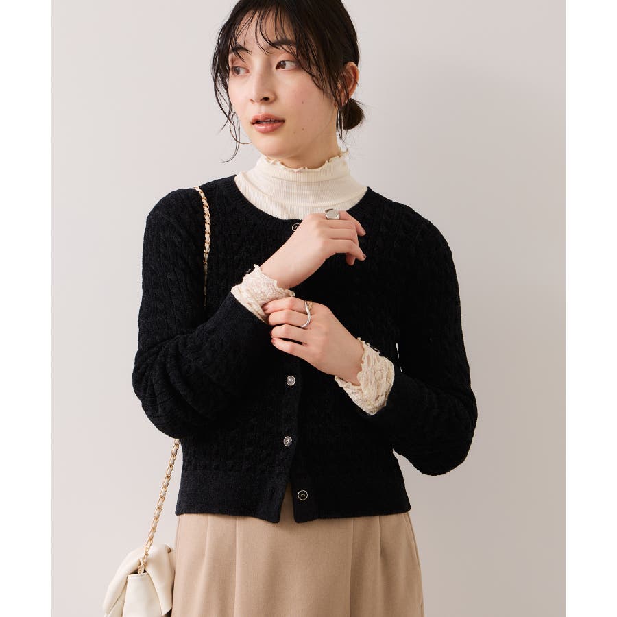 ・今季のトレンド素材のベロアタッチなモールニットは微光沢で柔らかい着心地が特徴