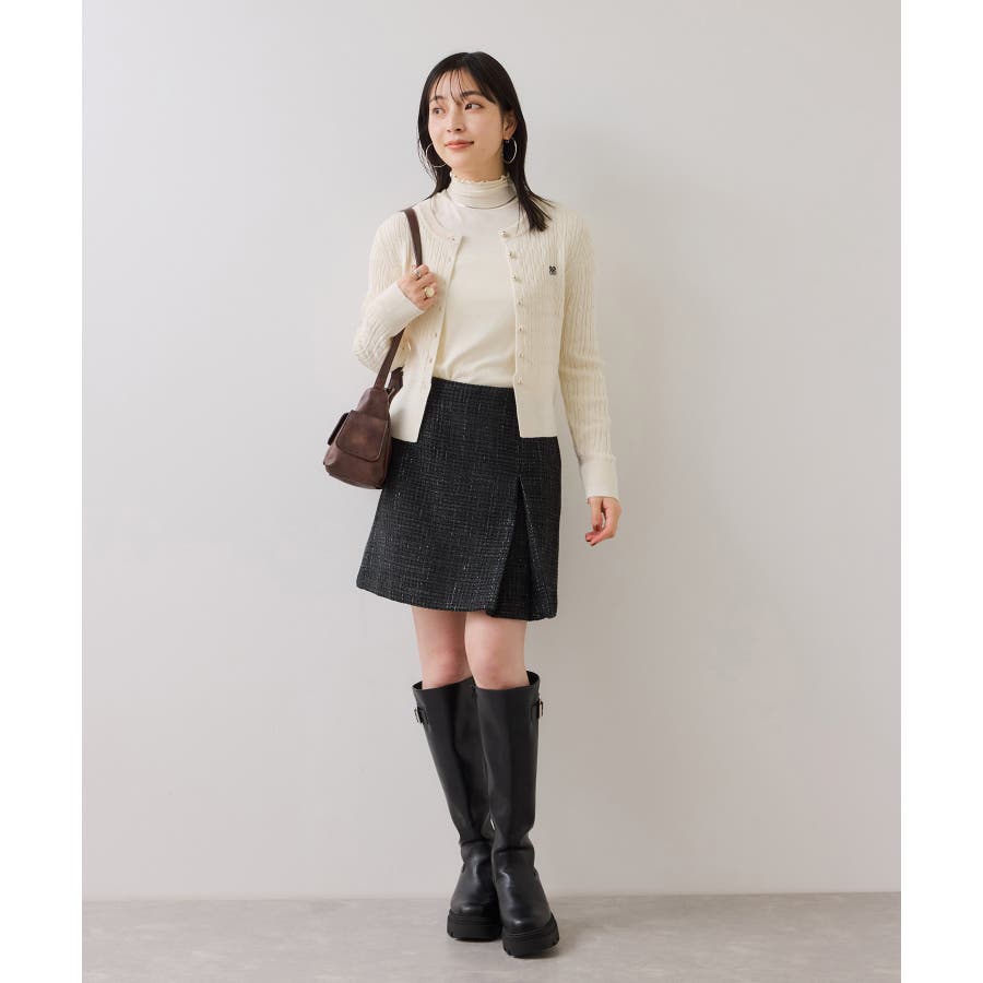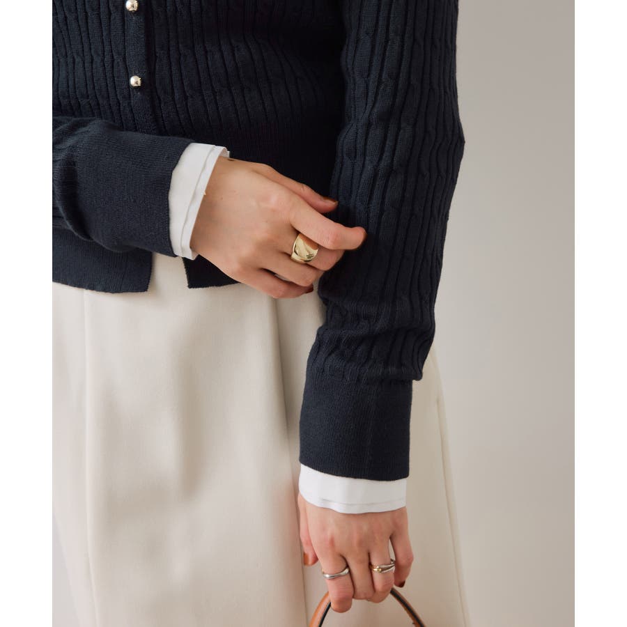 華奢でコンパクトなケーブル柄は、立体感があり高見えしてくれます。インナーを着込んでも、細見えするサイズ感にしているので、着ぶくれせずにレイヤードを楽しめます。