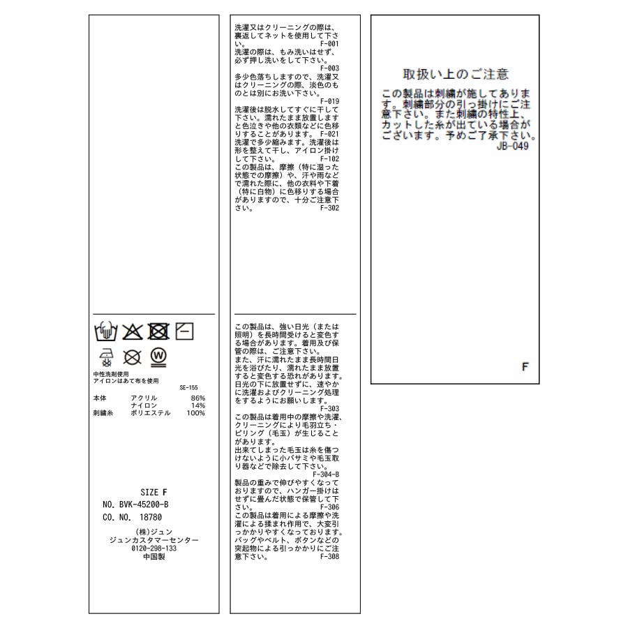 | 素材 | (本体) アクリル 86% ナイロン 14% (刺繍糸) ポリエステル 100% |
