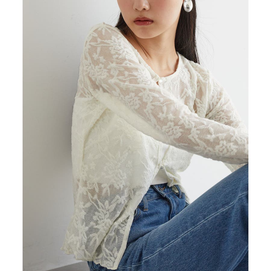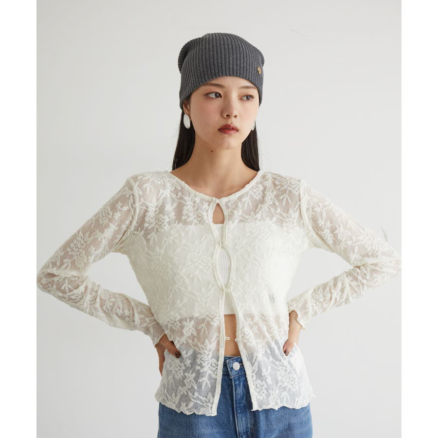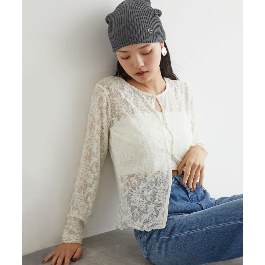 ◆2024-25秋冬◆ 【デザイン・シルエット】 コンパクトなサイズ感がポイントのカットソーカーディガン。 前後で着用頂ける2WAY仕様になっています。 ・前立て部分は丸く開くようなデザインになっており、ヌケ感を出しつつ華奢な雰囲気に。 ・レースのようなジャガードカットソーなので着心地の良さと見ための華やかさに今年らしさが詰め込まれています。 ・前後で着用頂ける2WAY仕様。 【素材】 着心地の良い総柄のジャガード生地。 気軽に洗濯機洗いができるのも嬉しいポイント! 【カラー】 汎用性のあるブラックとオフホワイトの2色展開。 【おすすめのスタイリング】 着方はインナーにキャミソールとレイヤードして、前を留めてプルオーバーのように着用がおすすめ! 女っぽいデザインのトップスにはカジュアルなボトムが相性◎ ----------------------------- 裏地:なし 光沢感:なし 透け感:あり 伸縮性:あり ボタン:あり(開閉可) 生地の厚さ:薄手 季節:春、晩夏、秋 ----------------------------- 【モデル着用サイズ】 全色モデル身長:163cm、着用サイズ:F ※画像の商品はサンプルです。 実際の商品と仕様、加工、サイズが若干異なる場合がございます。 ※画像によっては実際の色味と異なる場合があります。正しい色味は生地アップ画像をご確認ください。