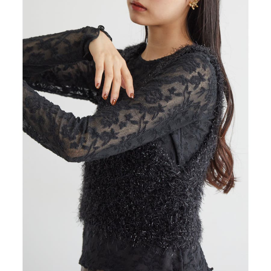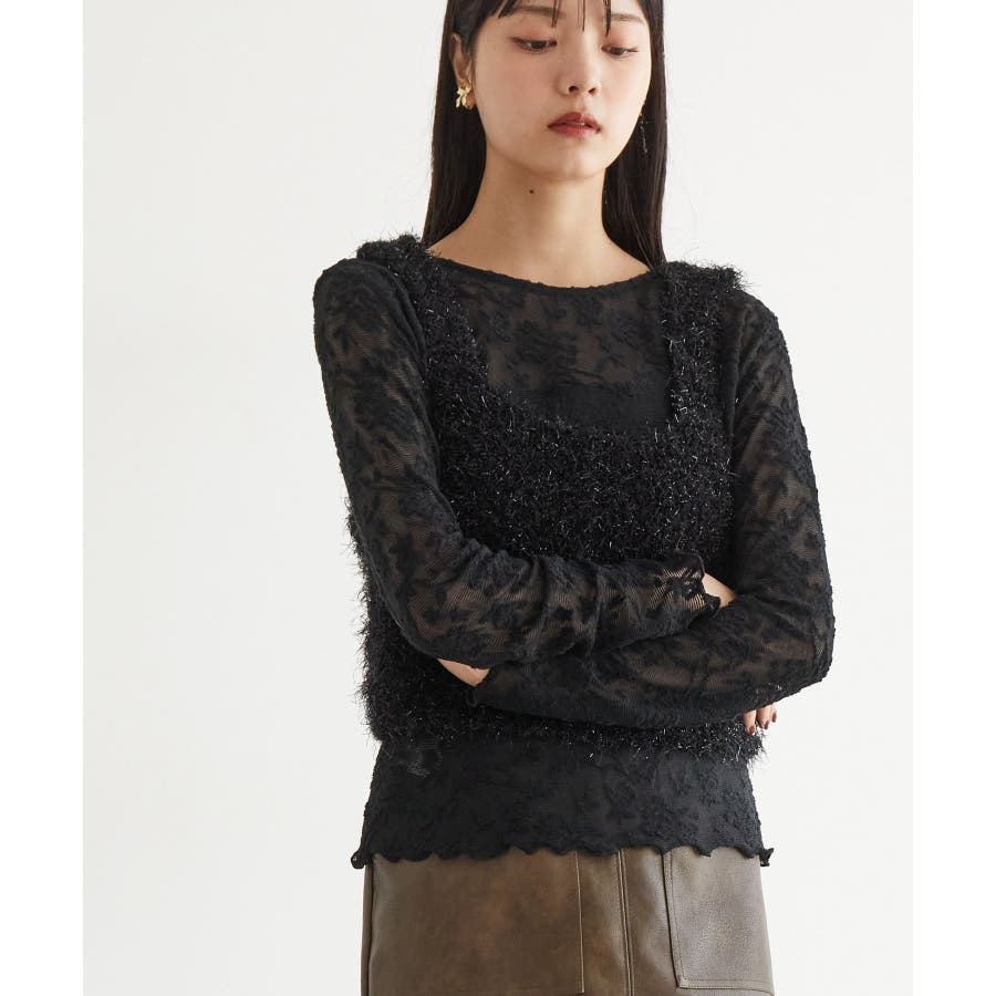 ふわふわのフリンジジャガード素材が高見えするカーディガン。