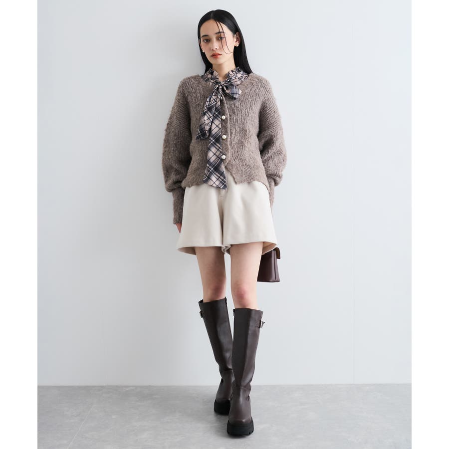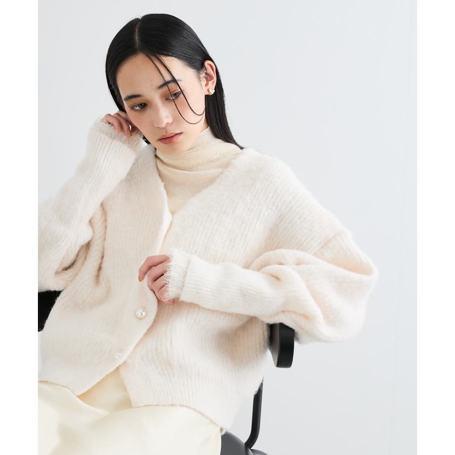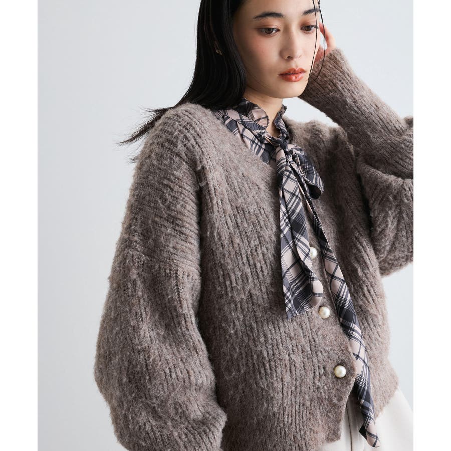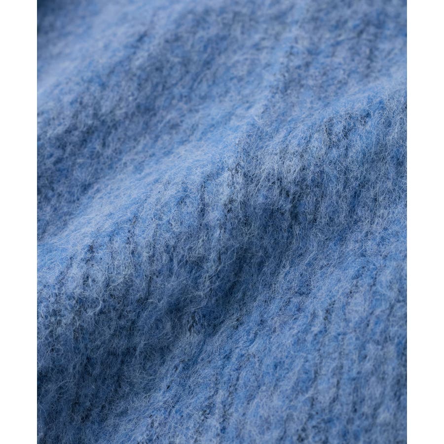 ウール混で柔らかく膨らみがある糸を使用。起毛をかけてさらに暖かみのある印象に。