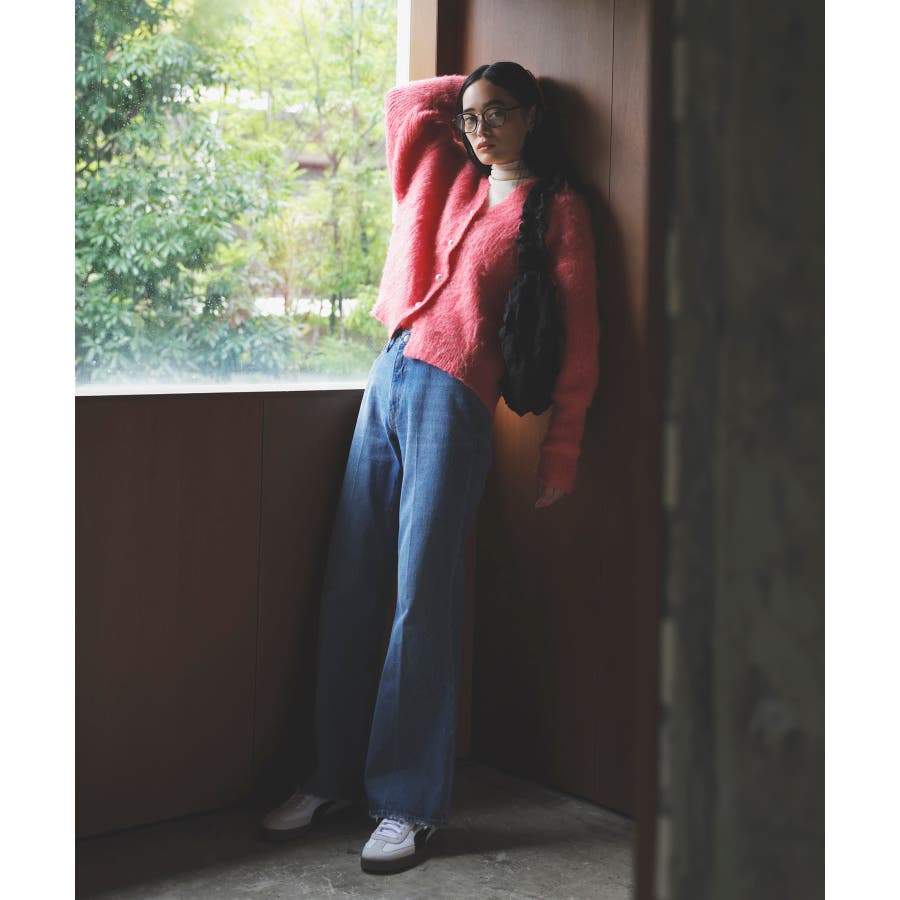 丈感はウエストに掛かるくらいの長さなのでデニムにはもちろんキレイ目のワイドシルエットのボトムスにもピッタリ。