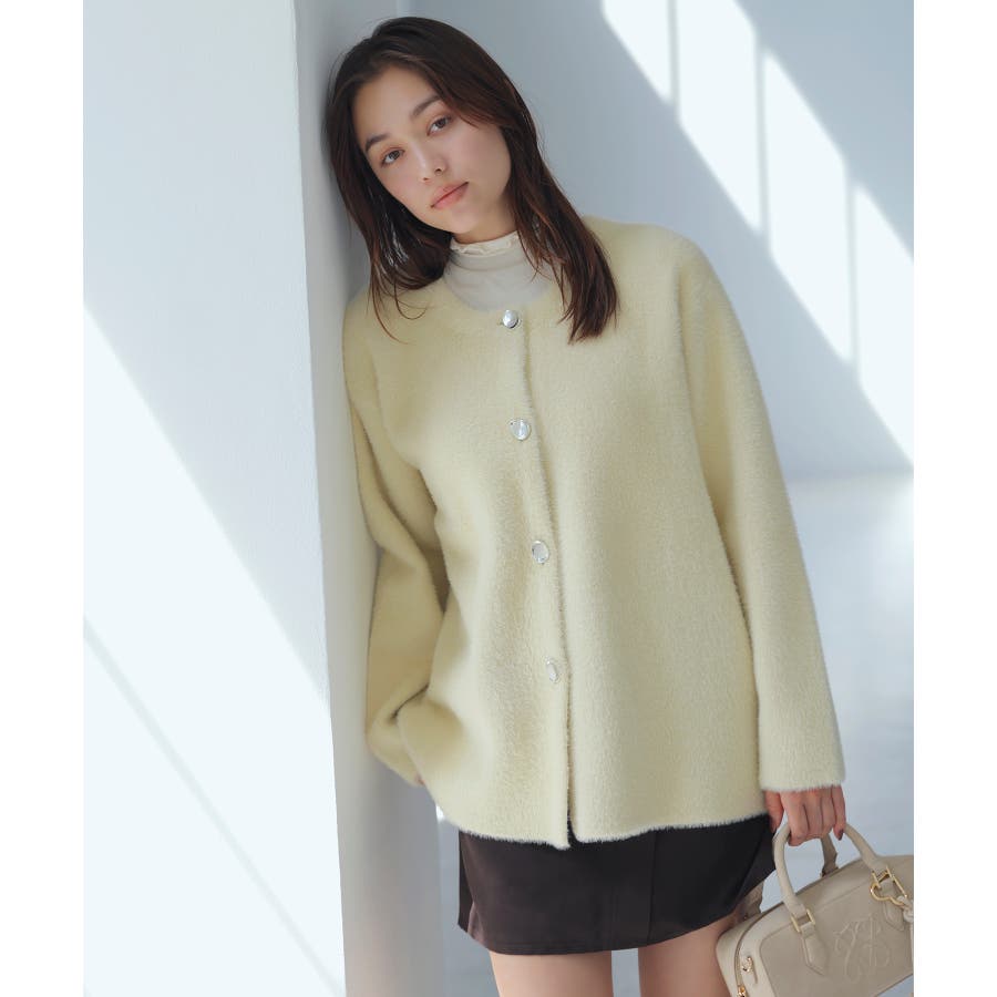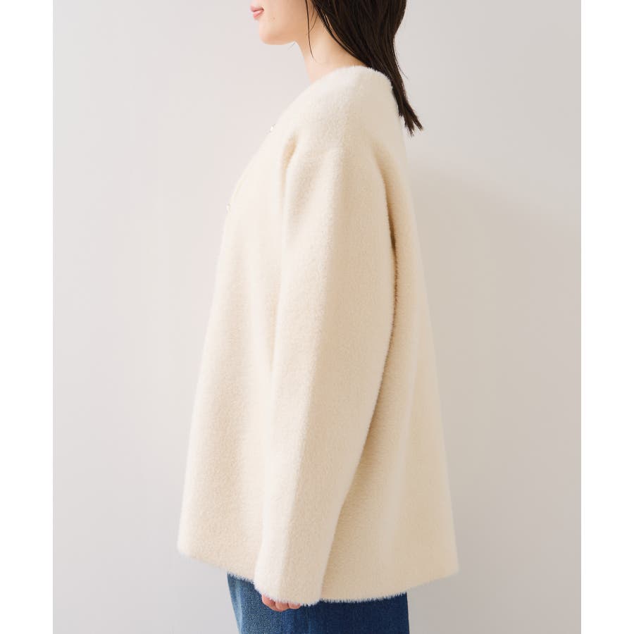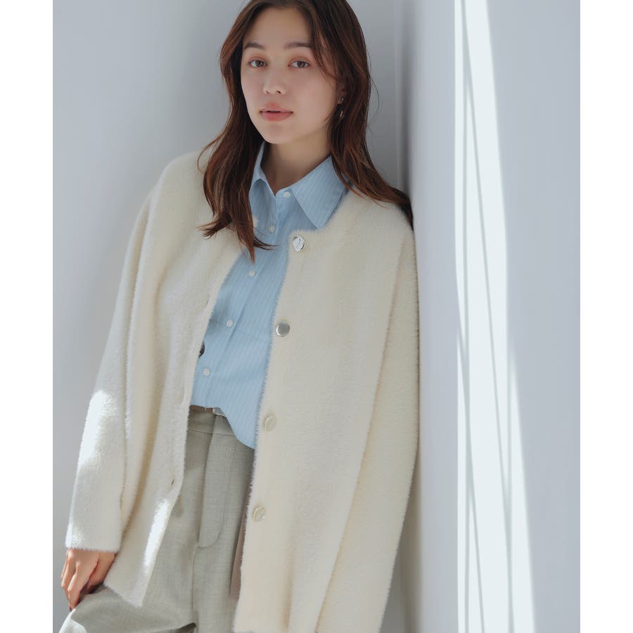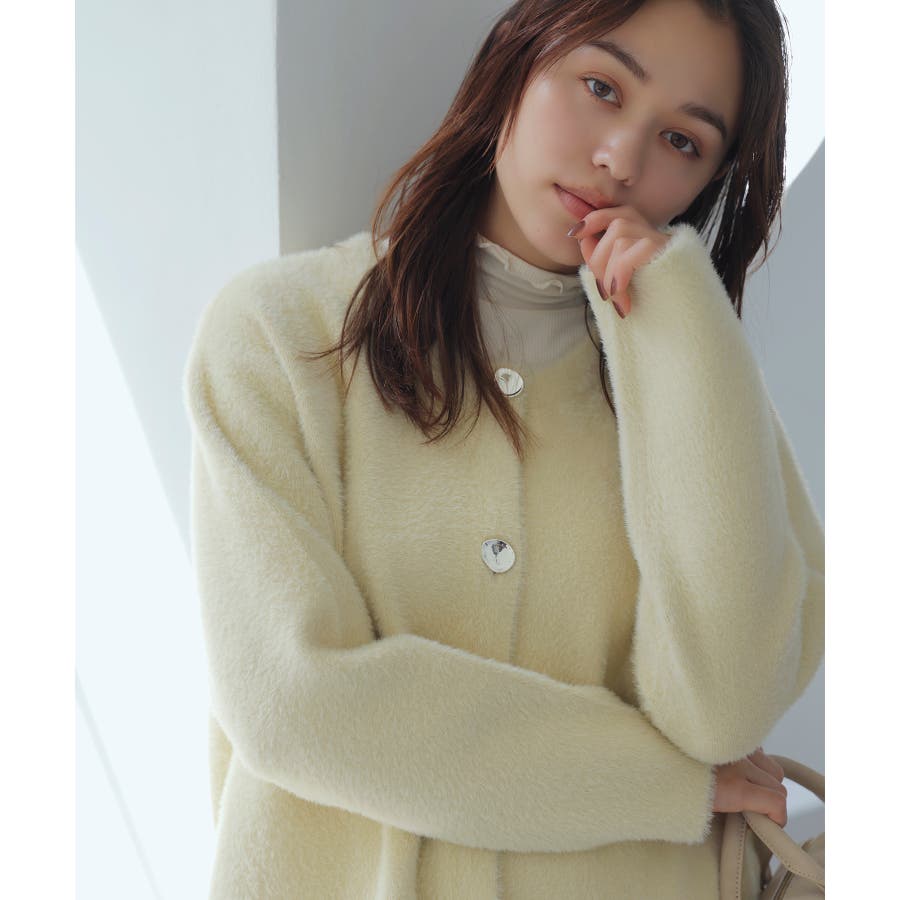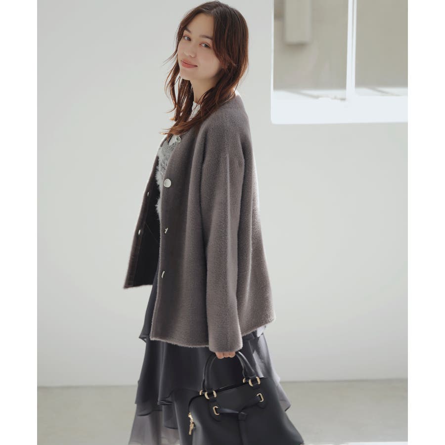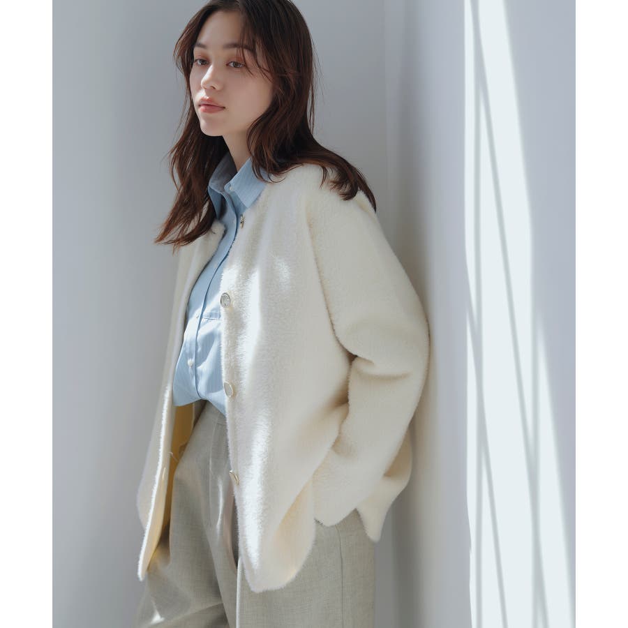 カーディガンよりも暖かみがあり、ジャケットのようなきちんと感を持ち合わせた一枚。ノーカラーデザインなので、首周りがすっきりと見えレイヤードも楽しめます。