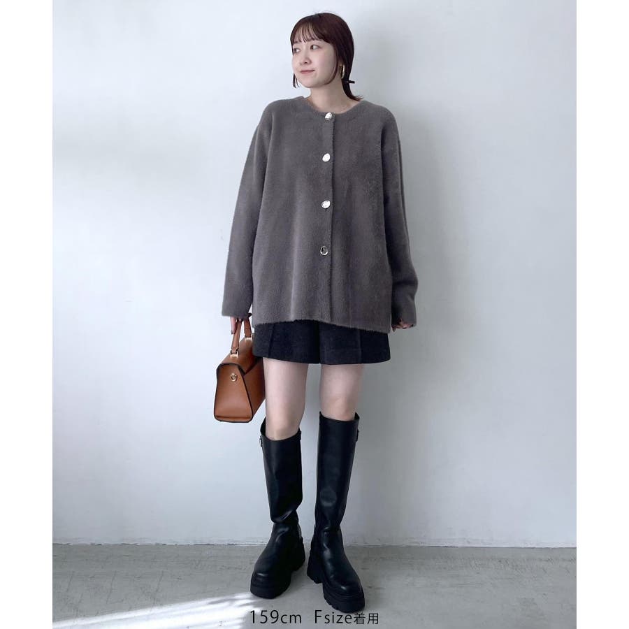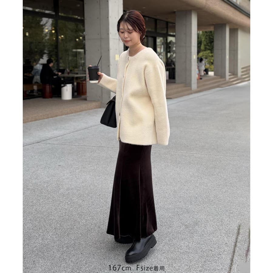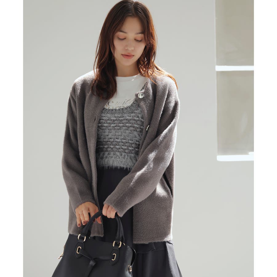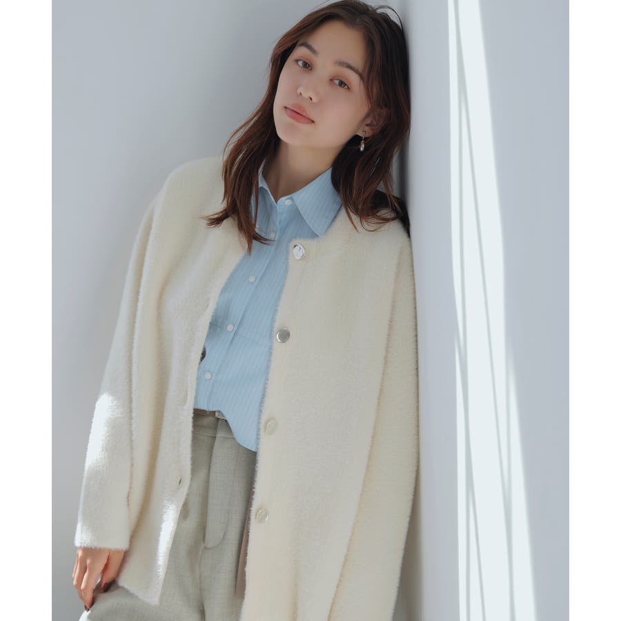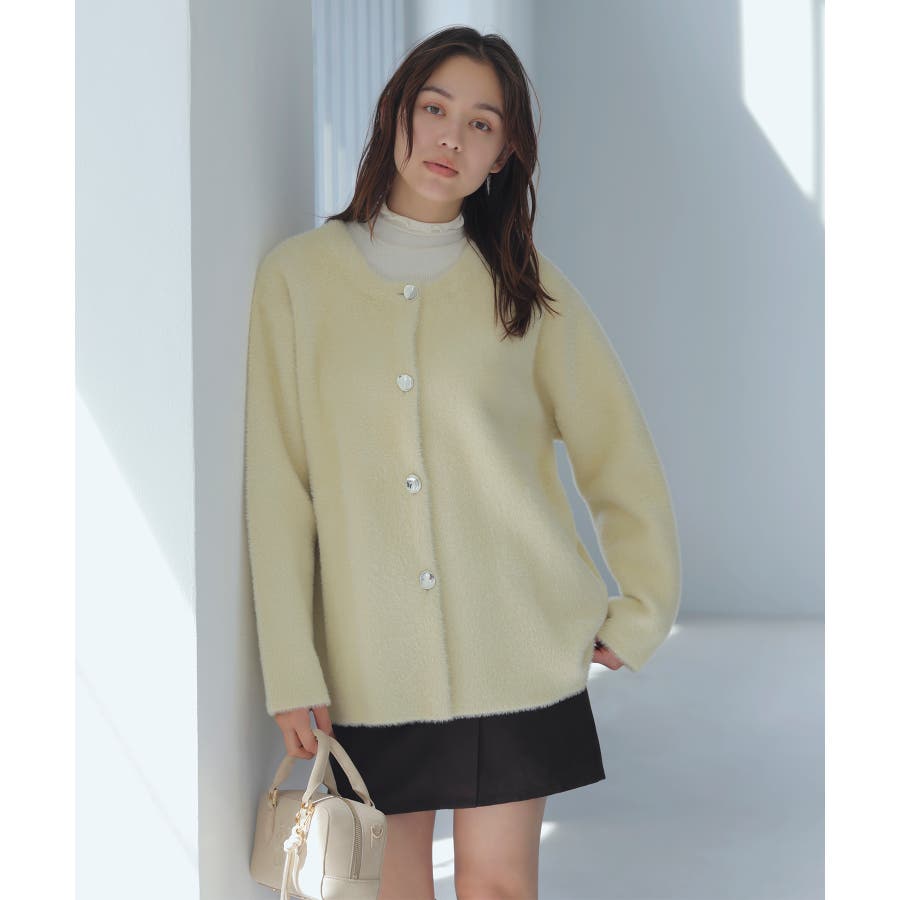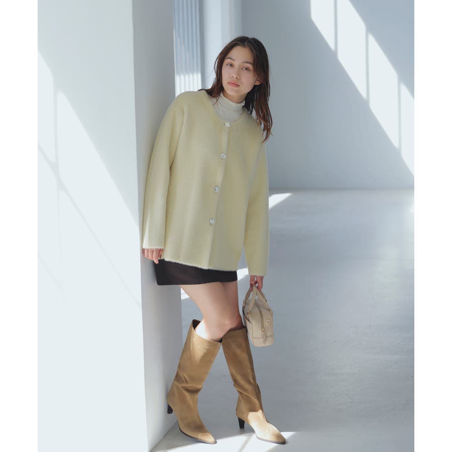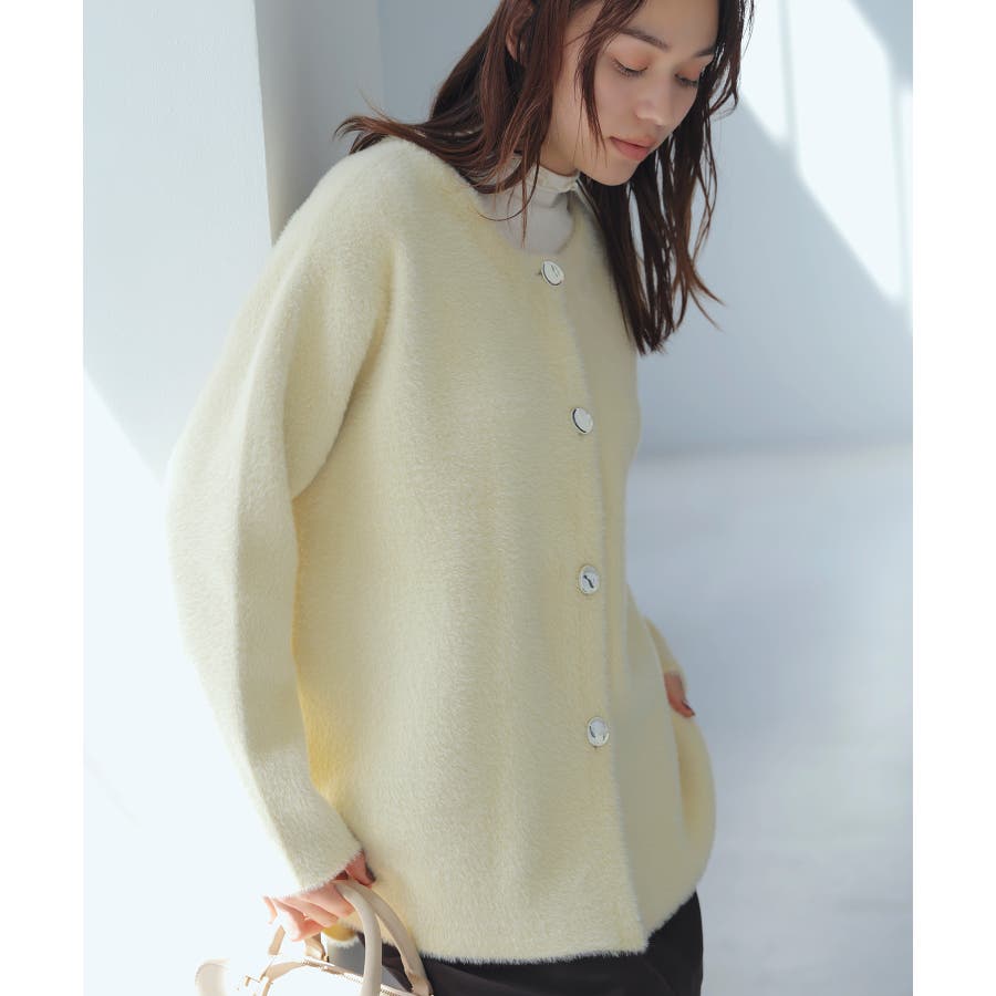 カーディガンよりも暖かみがあり、ジャケットのようなきちんと感を持ち合わせた一枚。ノーカラーデザインなので、首周りがすっきりと見えレイヤードも楽しめます。
