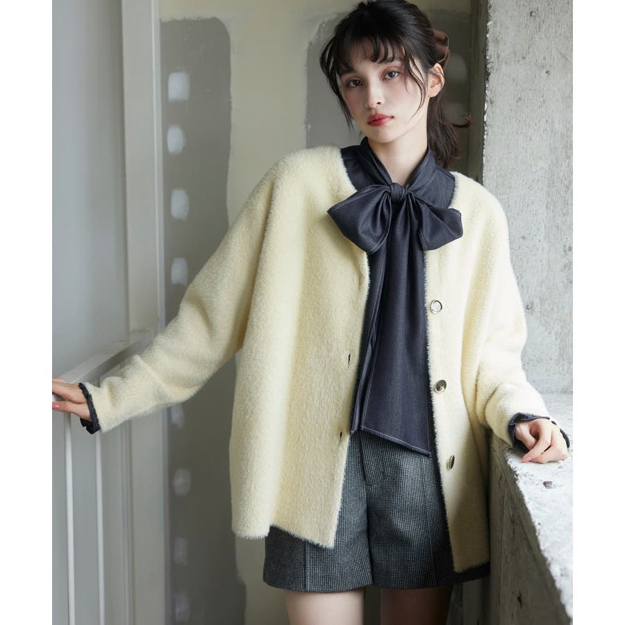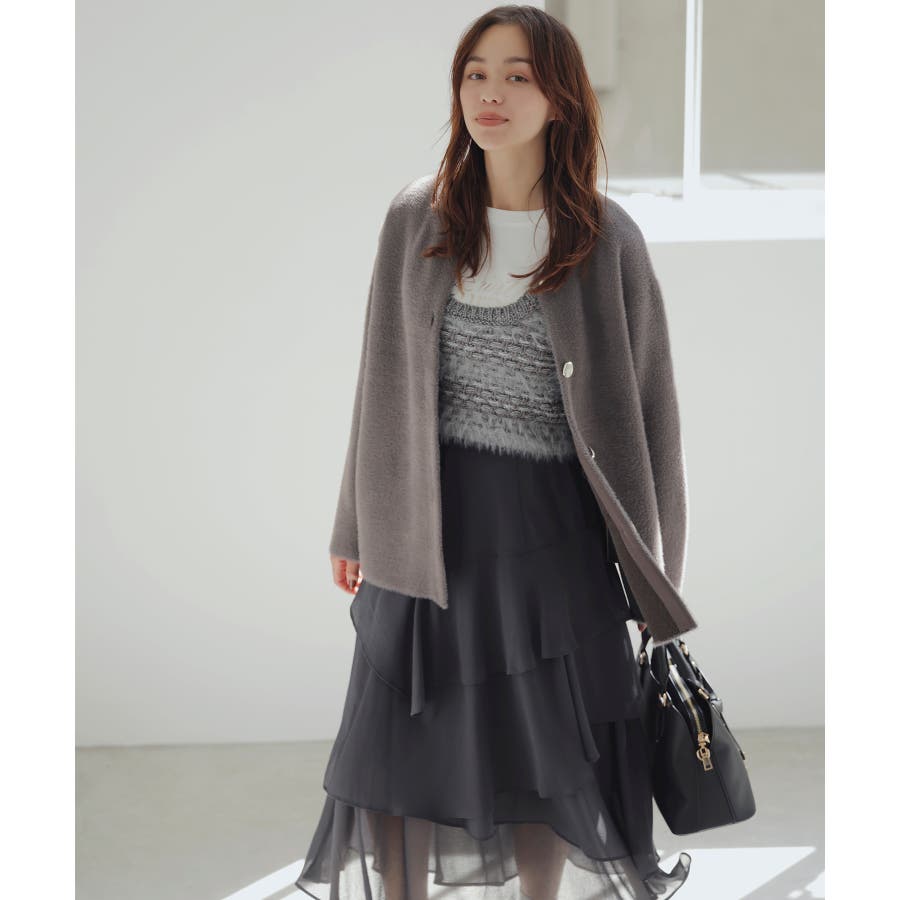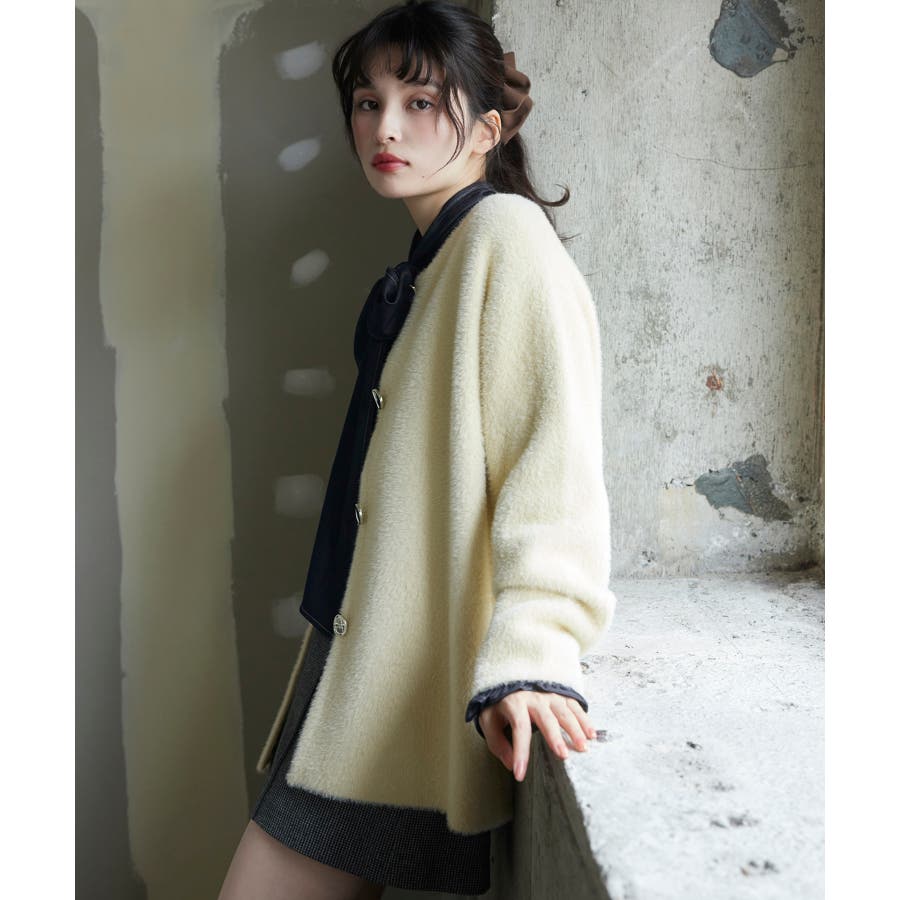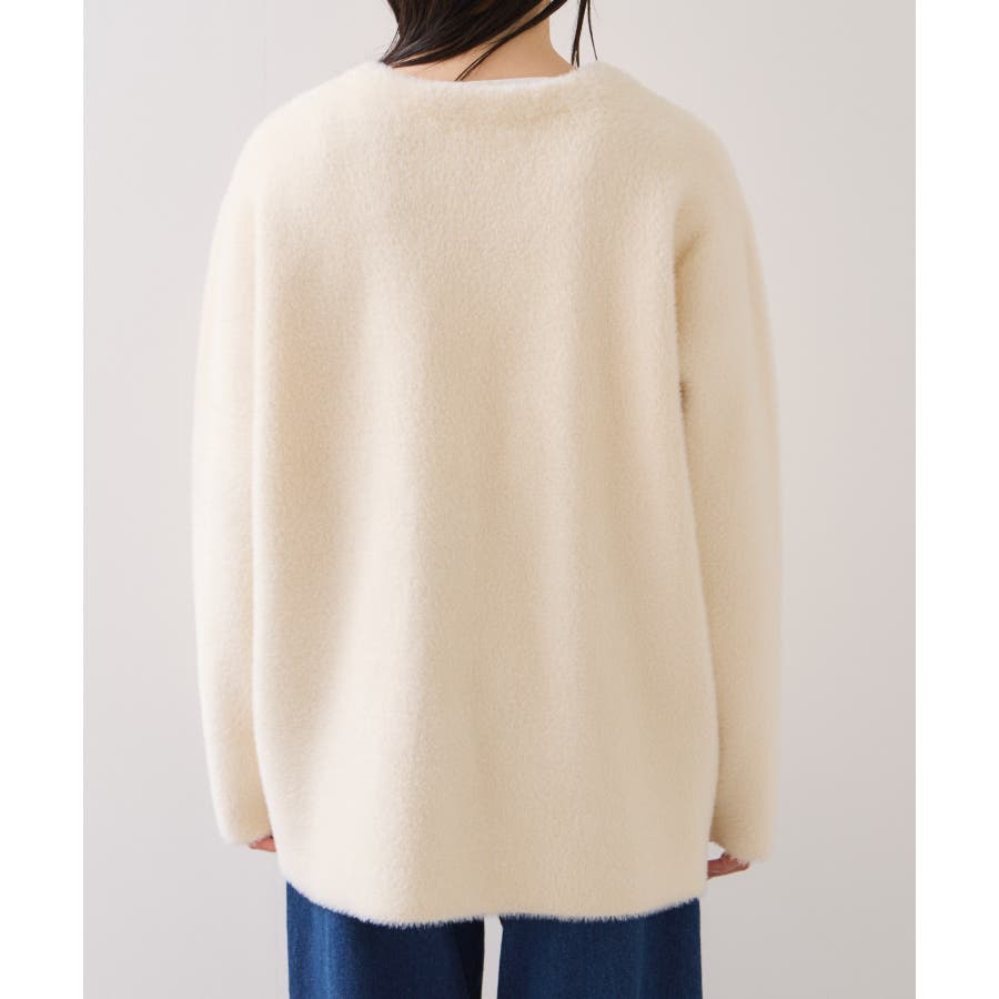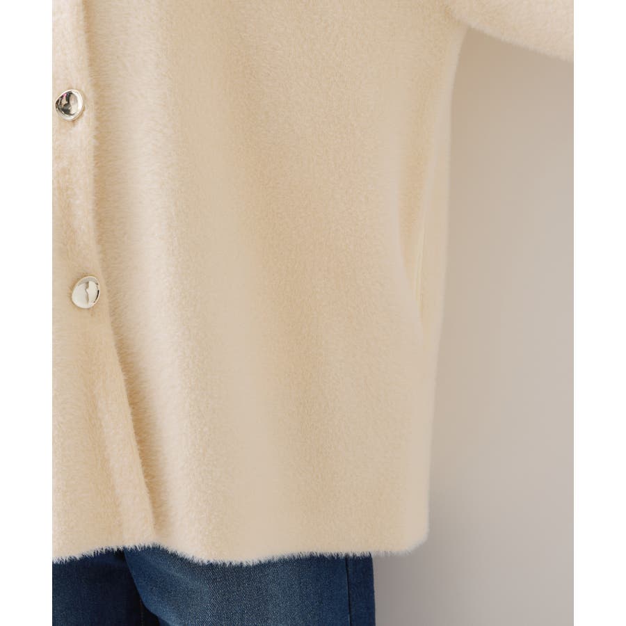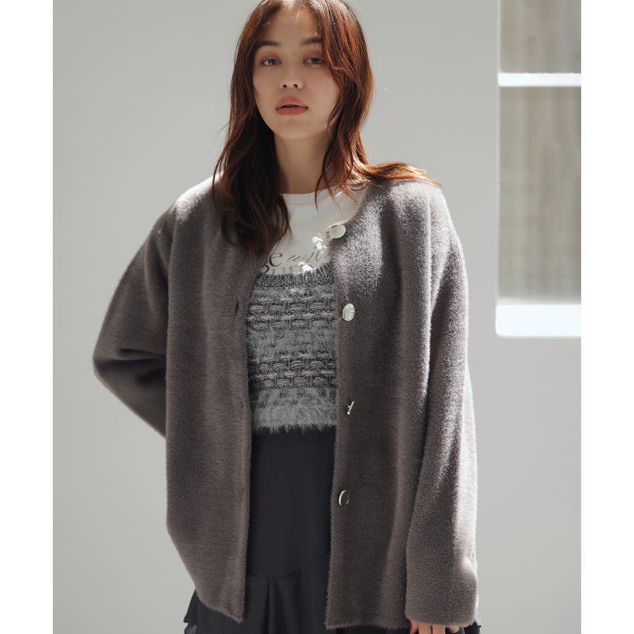 カーディガンよりも暖かみがあり、ジャケットのようなきちんと感を持ち合わせた一枚。ノーカラーデザインなので、首周りがすっきりと見えレイヤードも楽しめます。