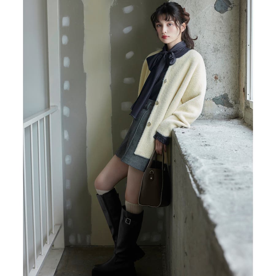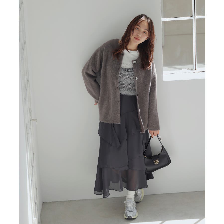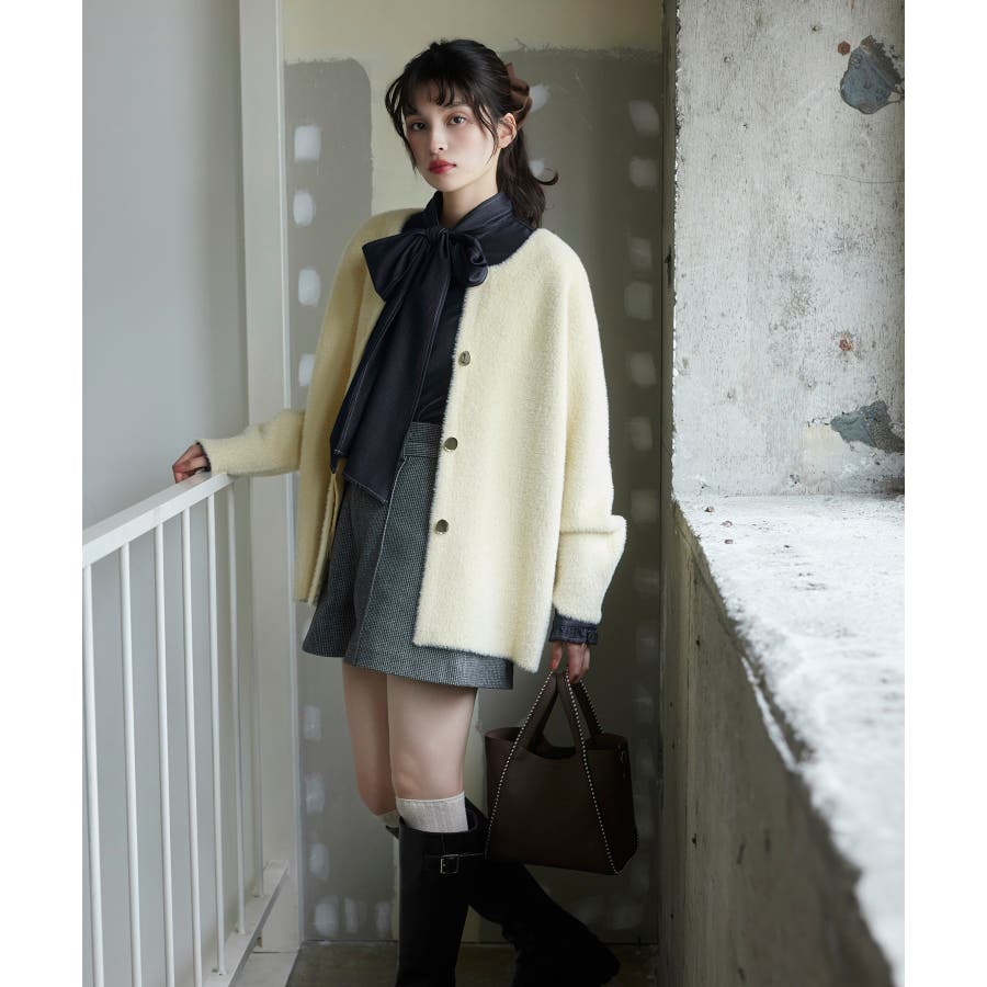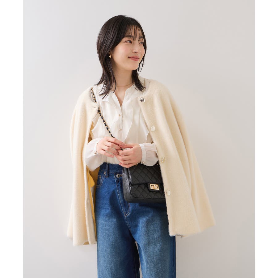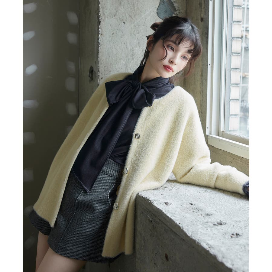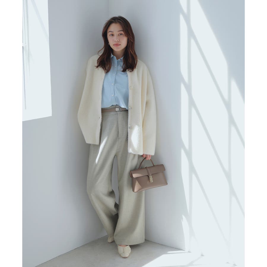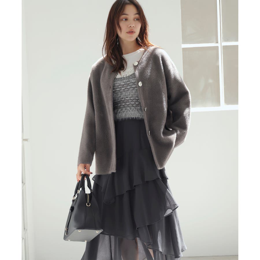 カーディガンよりも暖かみがあり、ジャケットのようなきちんと感を持ち合わせた一枚。ノーカラーデザインなので、首周りがすっきりと見えレイヤードも楽しめます。