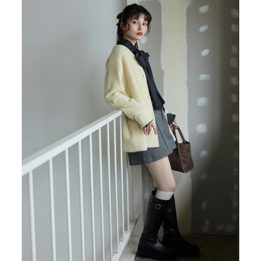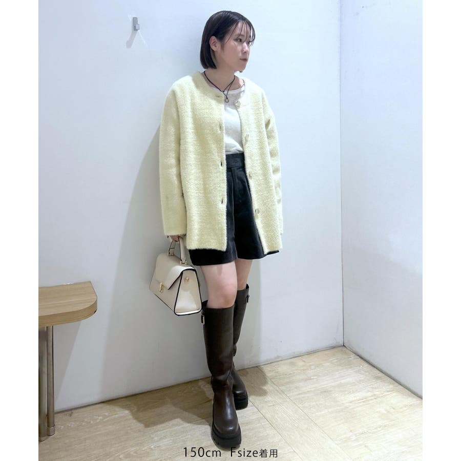 お尻がすっぽりと隠れる安心感のあると丈感に、程よくゆとりのある身幅。チクチク感が無く、もっちりとした素材です。ある程度肉厚なニットなので秋口の軽羽織として最適なカーディガン。冬にはコートインとしても◎たまごイエローの優しい色味はイエベさんにお勧めです。
