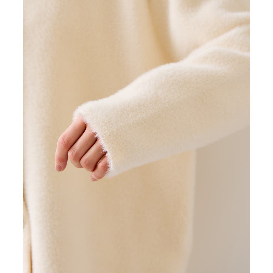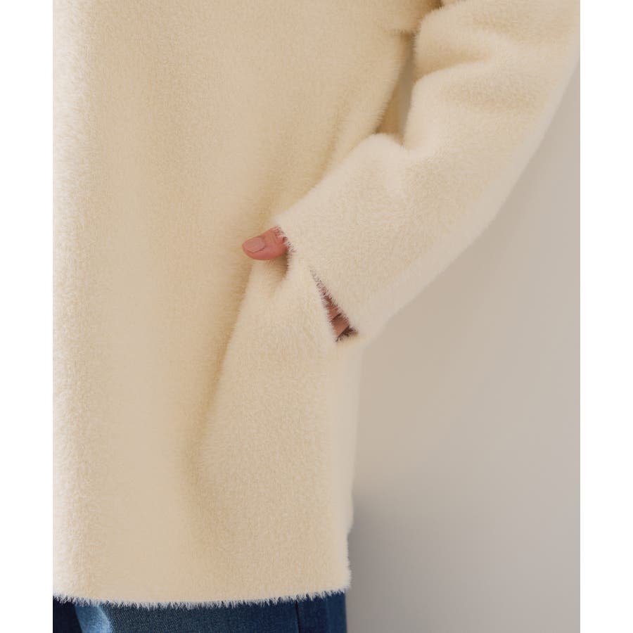 表地は程よい起毛感のニット、裏地は肌当たりのよい素材を使用したニットコートです。