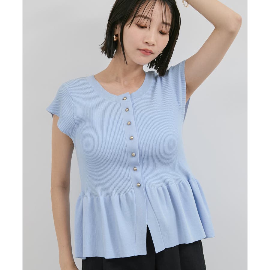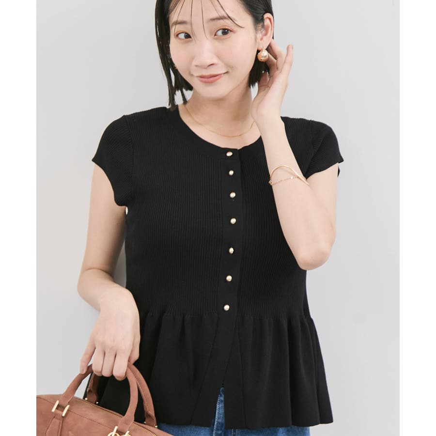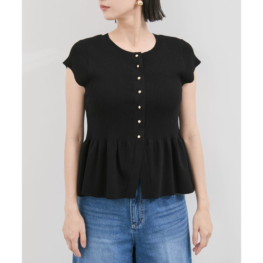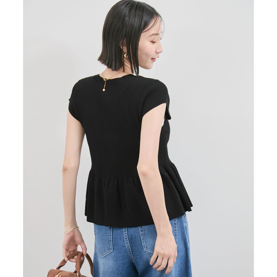 【アンチピリング/洗える】美SMARTショートスリーブペプラムニット